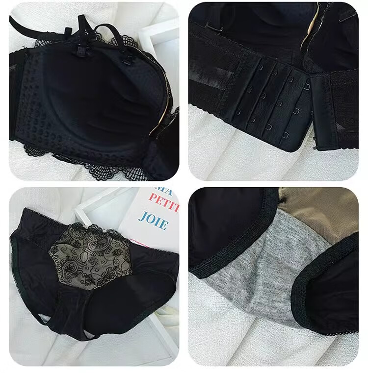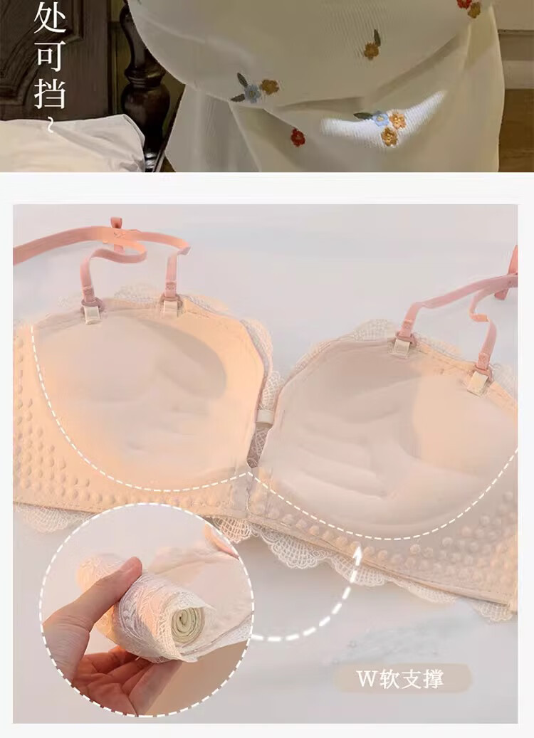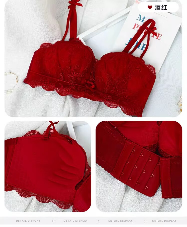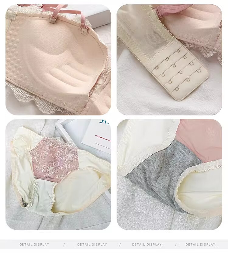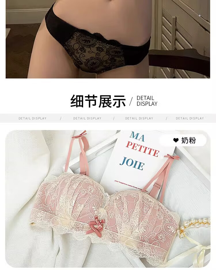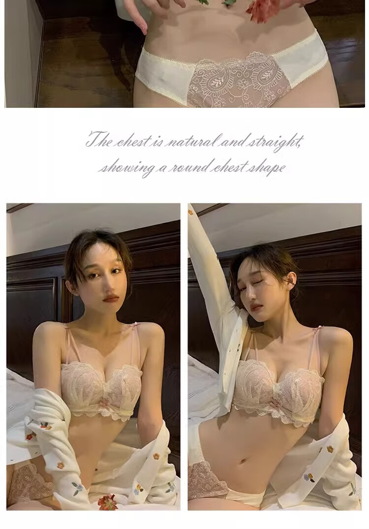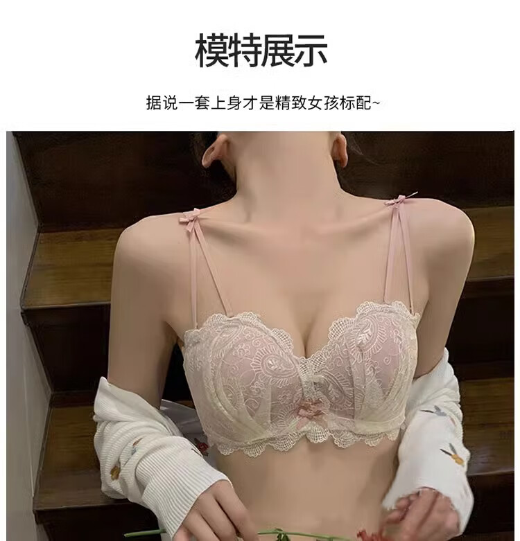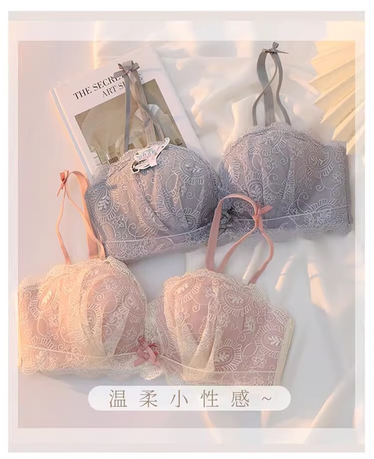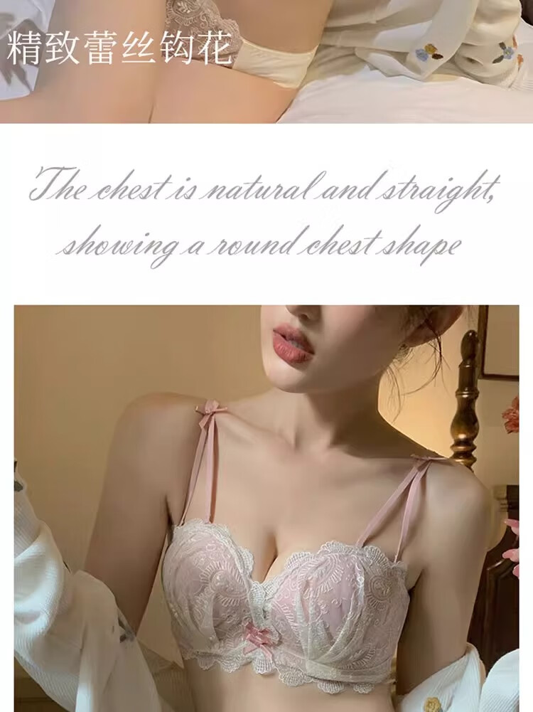 Yunshun underwear set, small breast push-up underwear, sexy pure desire, sweet lace girl push-up bra set, cream sweet peach bra set 36/80AB