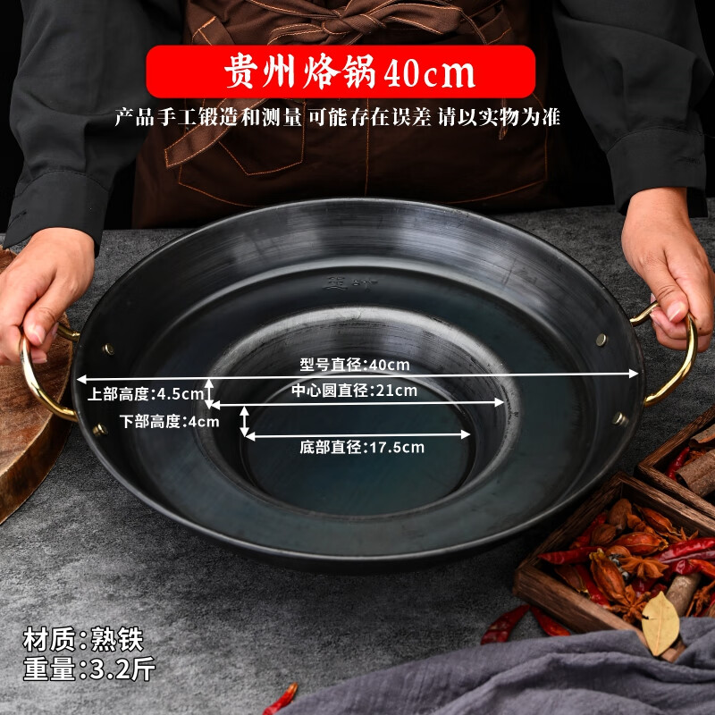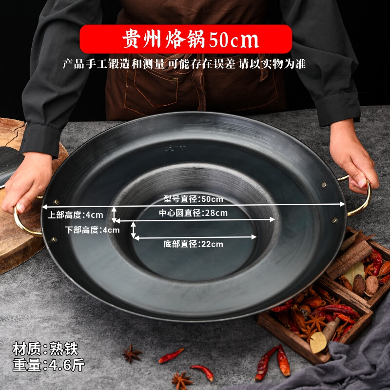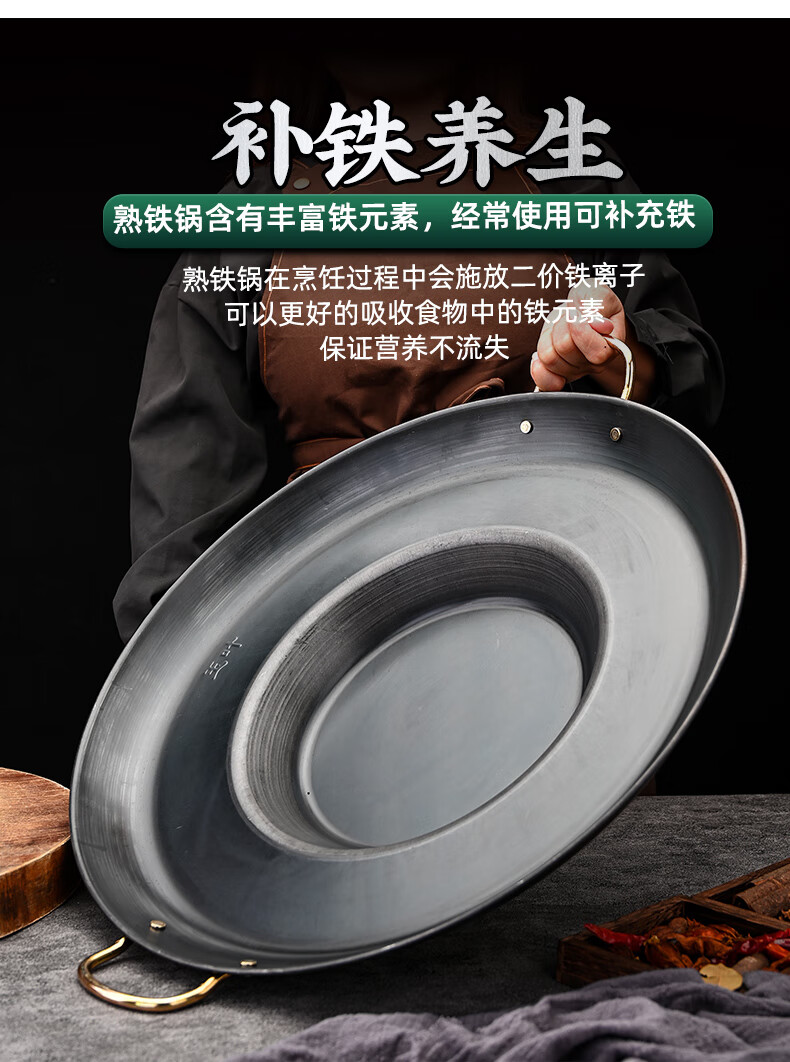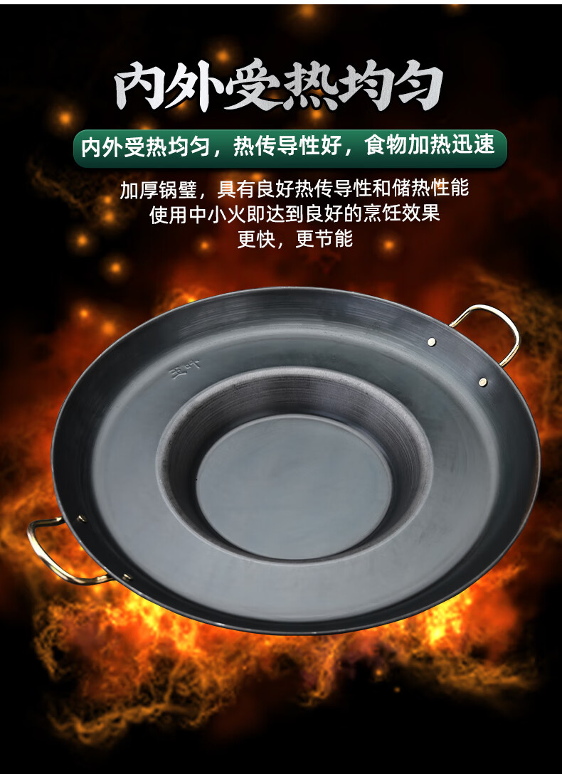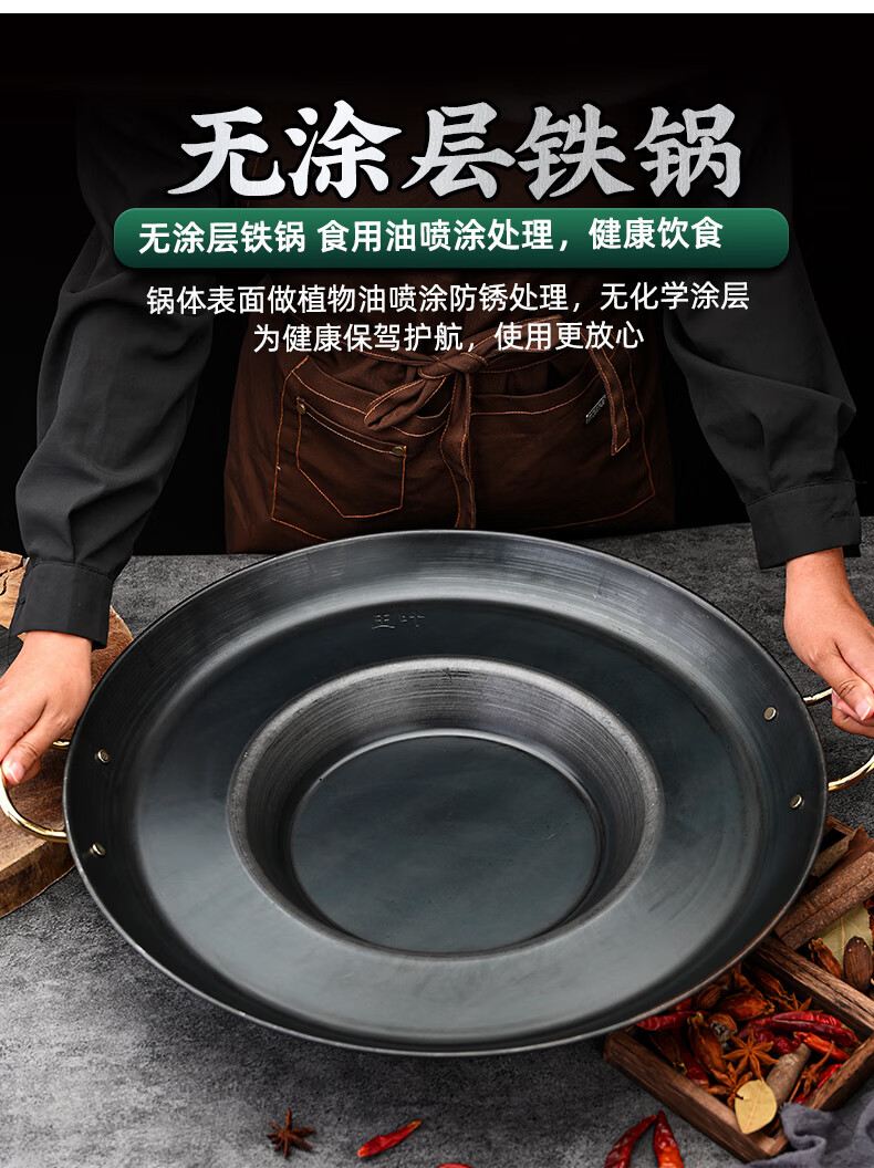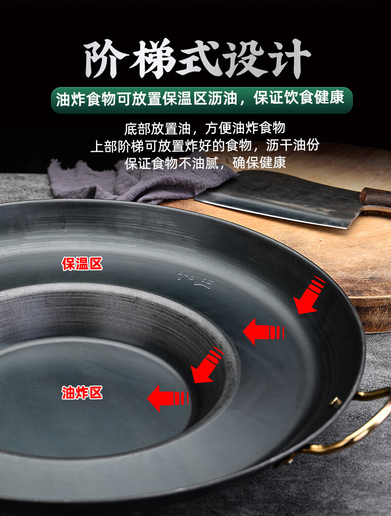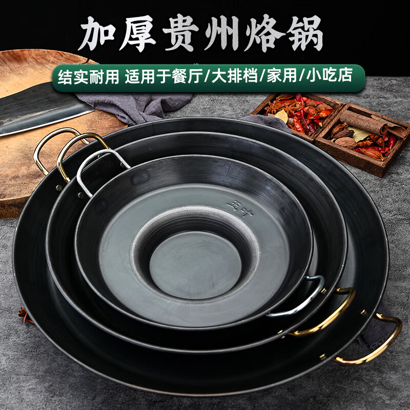 Kang Jingting Guizhou household and commercial barbecue all-in-one dedicated hutch fried potato pan uncoated non-stick frying pan deep fryer concave bottom diameter suitable for 4-6 induction cooker 45cm