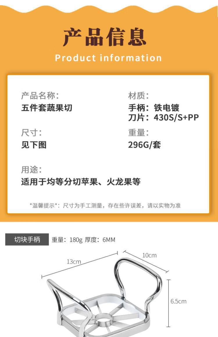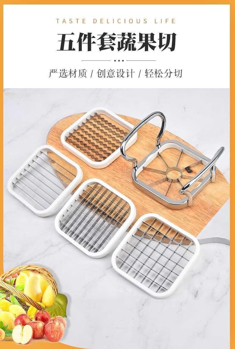 Enshousu household slicer, apple slicer, fries slicer, potato slicer, wolf tooth slicer, radish slicer, cucumber slicer, 5-piece stainless steel cutter set