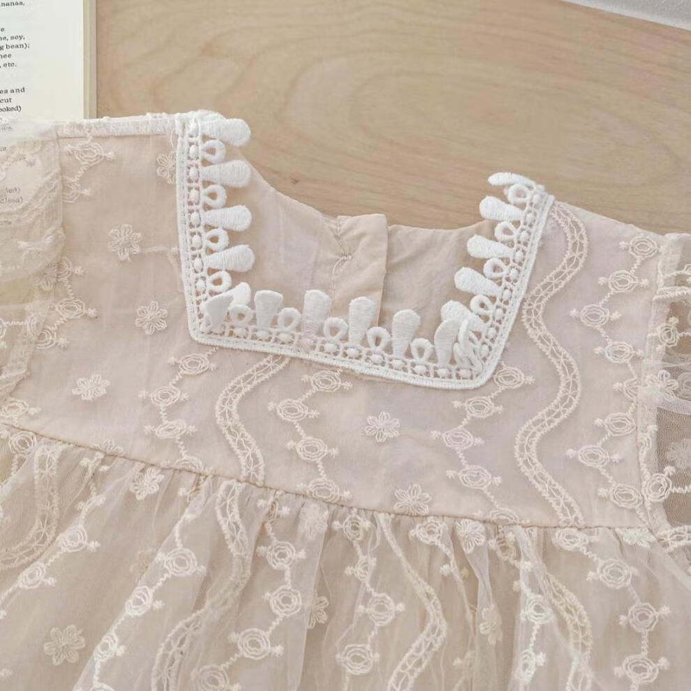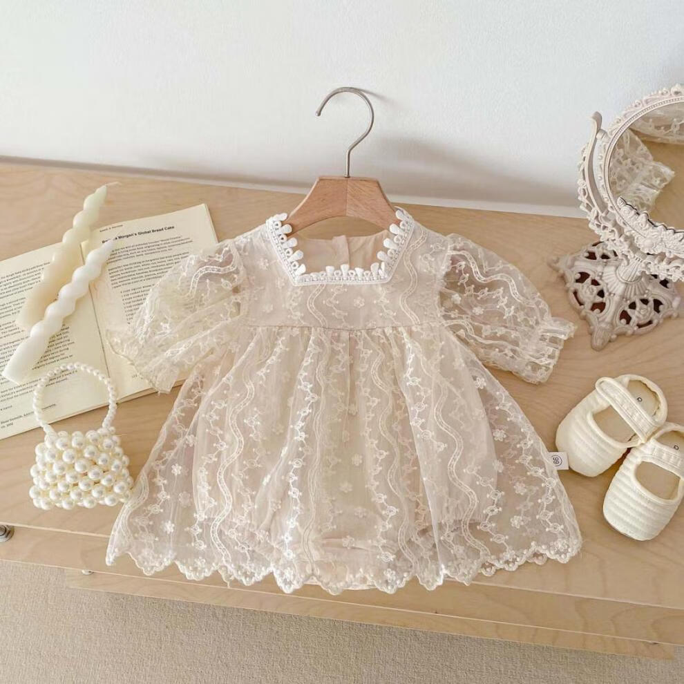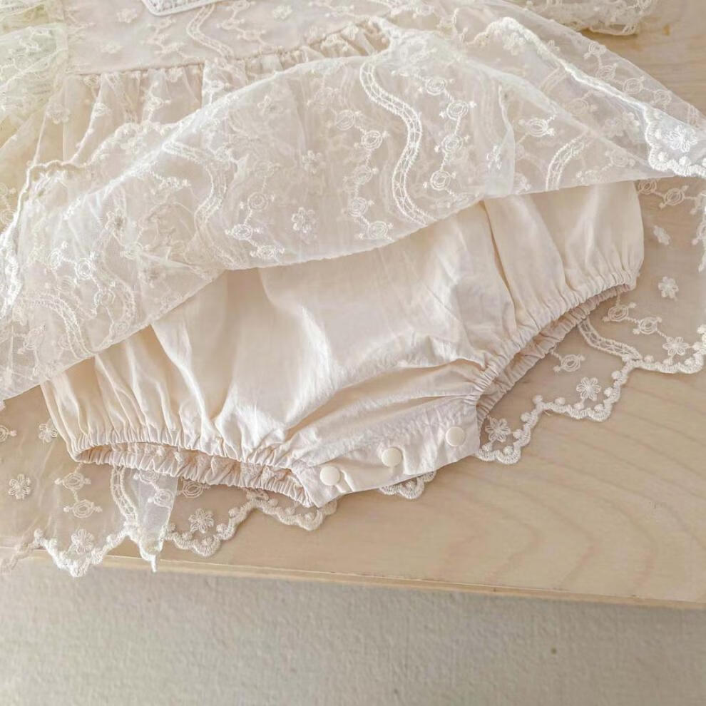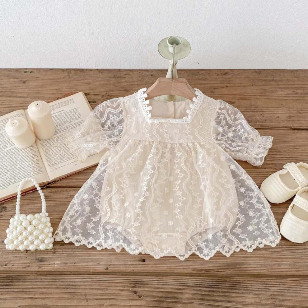 Bon Eve baby summer clothes lace halterneck ins Korean version princess puff sleeves rompers for baby girls one year old full skirt main picture 66