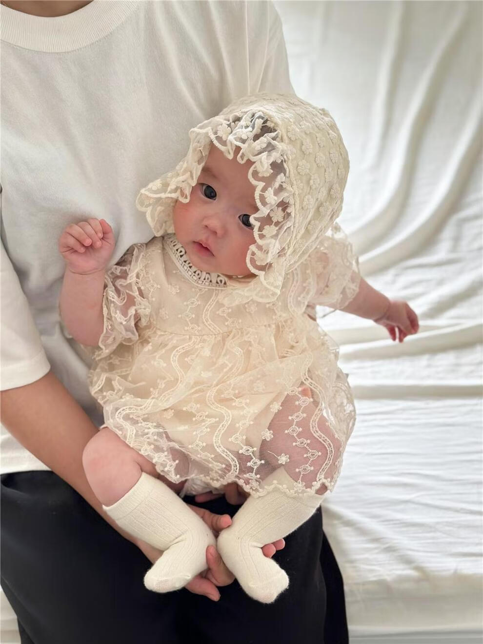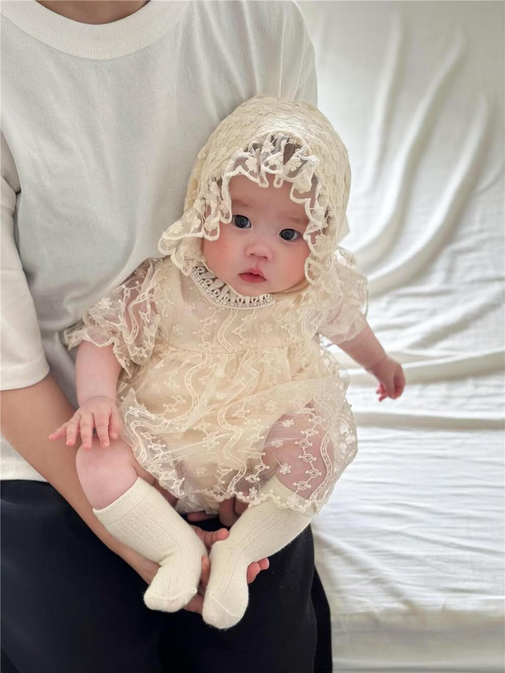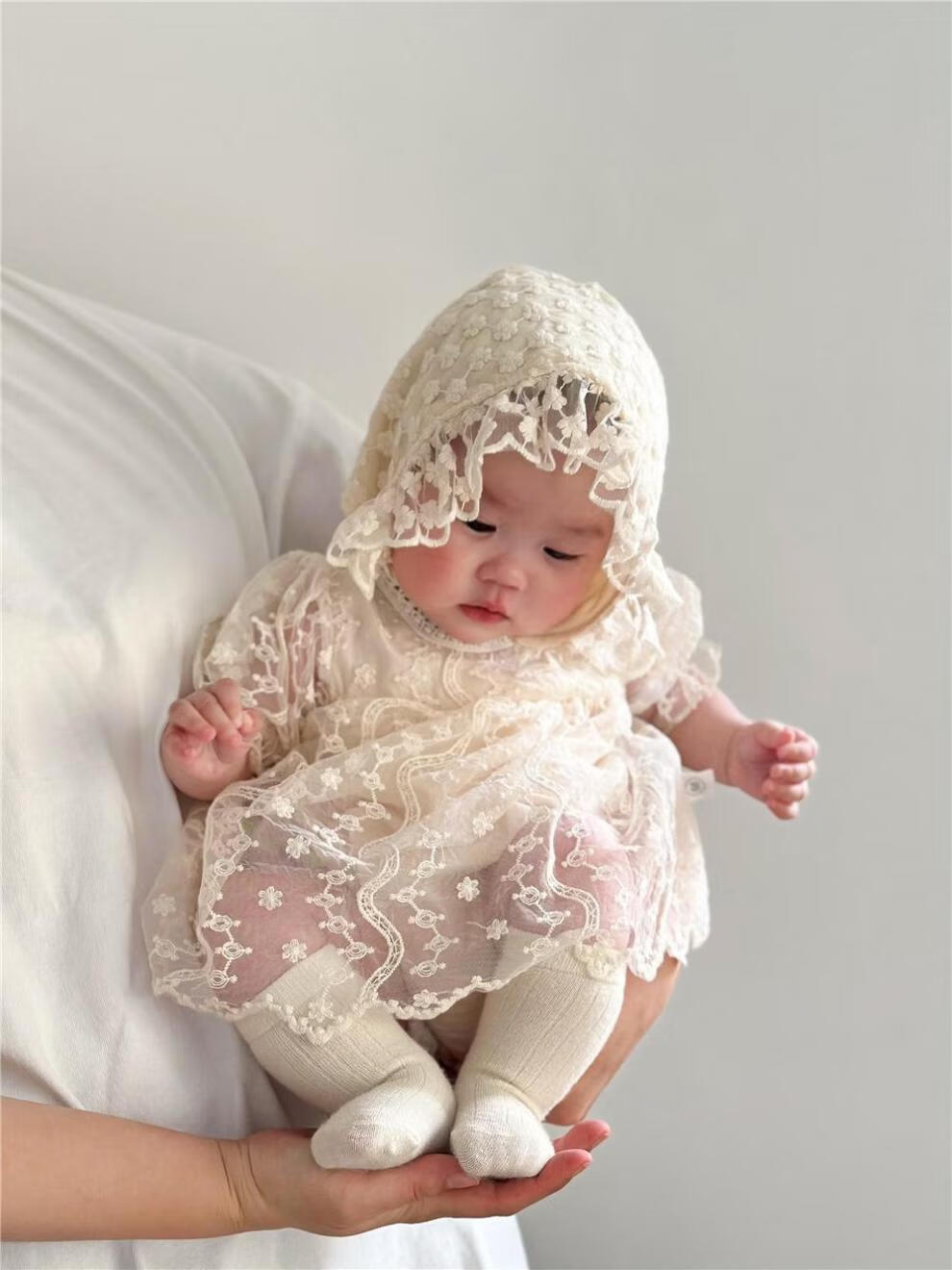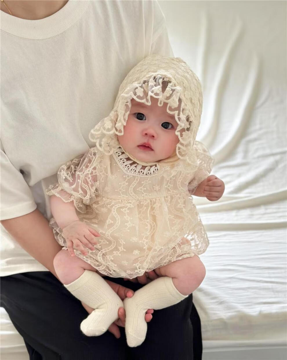 Bon Eve baby summer clothes lace halterneck ins Korean version princess puff sleeves rompers for baby girls one year old full skirt main picture 66