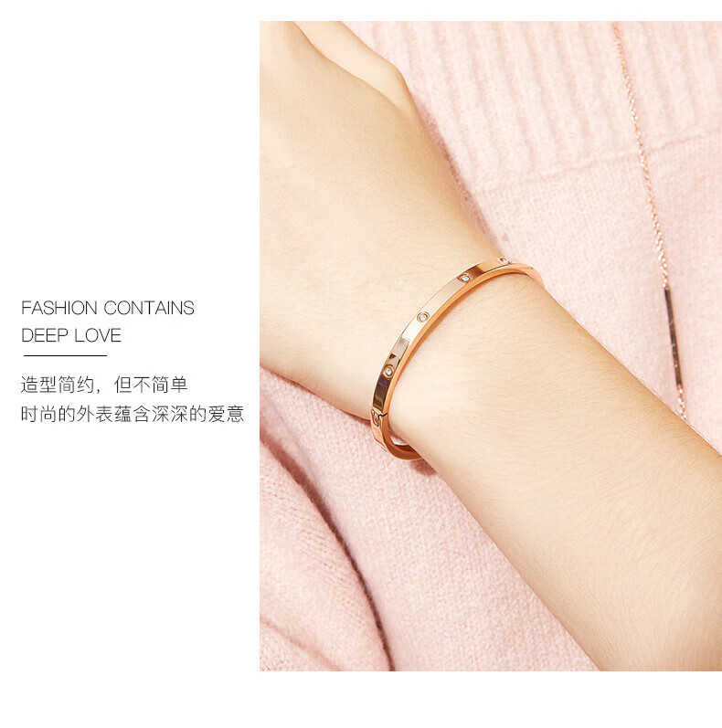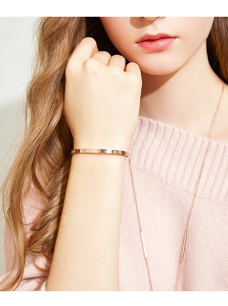Oval rose gold bracelet bracelet full of stars narrow version new buckle bracelet for female couple light full diamond rose gold (circle mouth about 60mm)