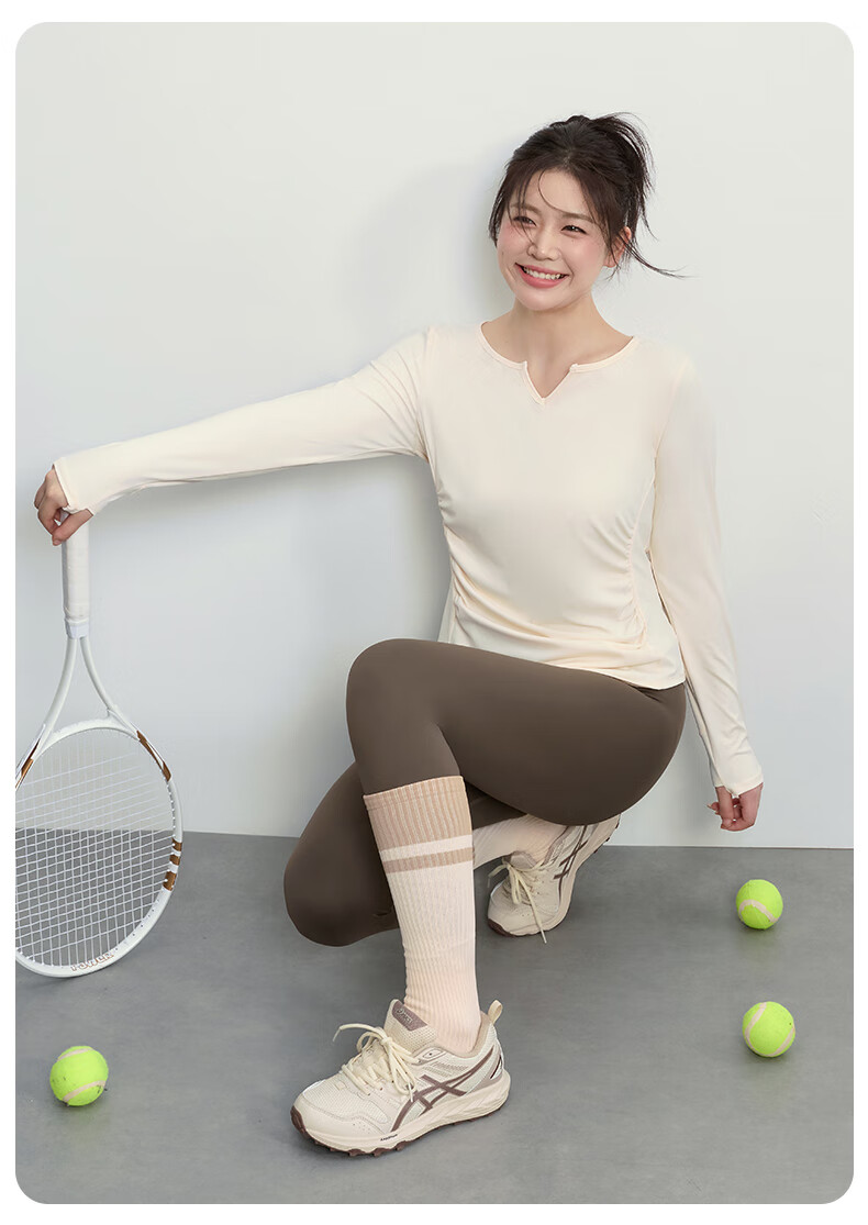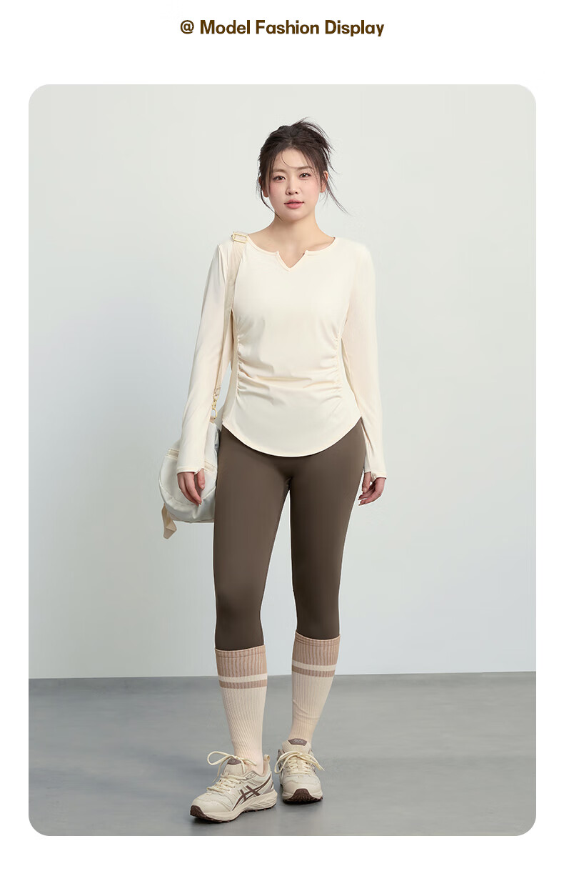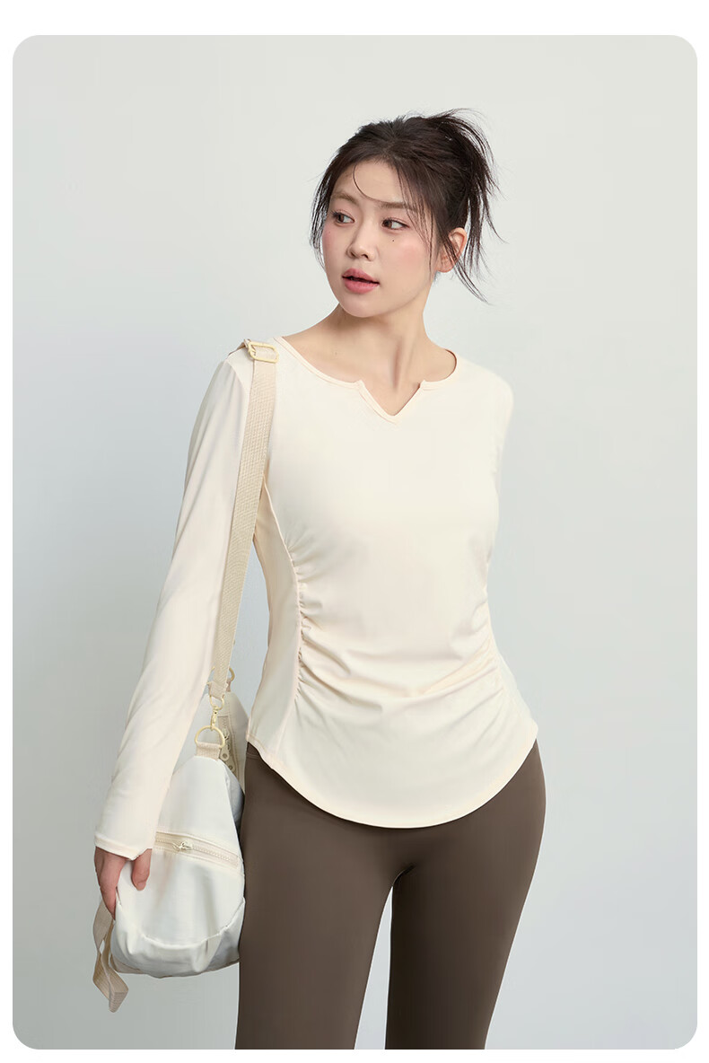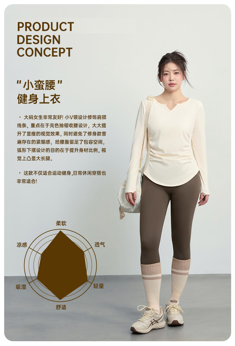 Chicnear large size yoga clothes women's tops sports fitness clothes quick-drying clothes t-shirt fat girl fat mm Pilates breast apricot skin-nude feeling slim and slim 2XL recommended 141-155Jin Jin equals 0.5 kg