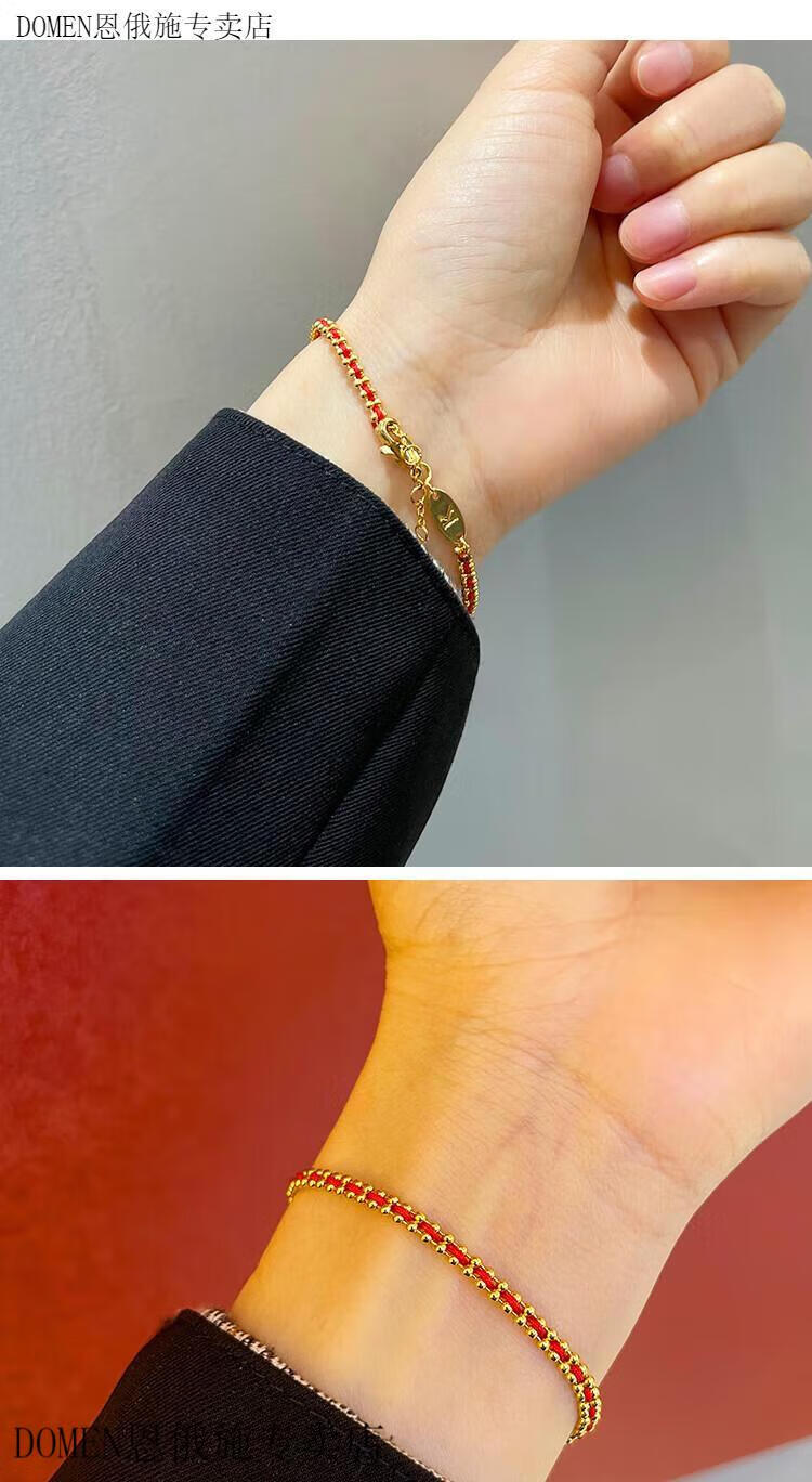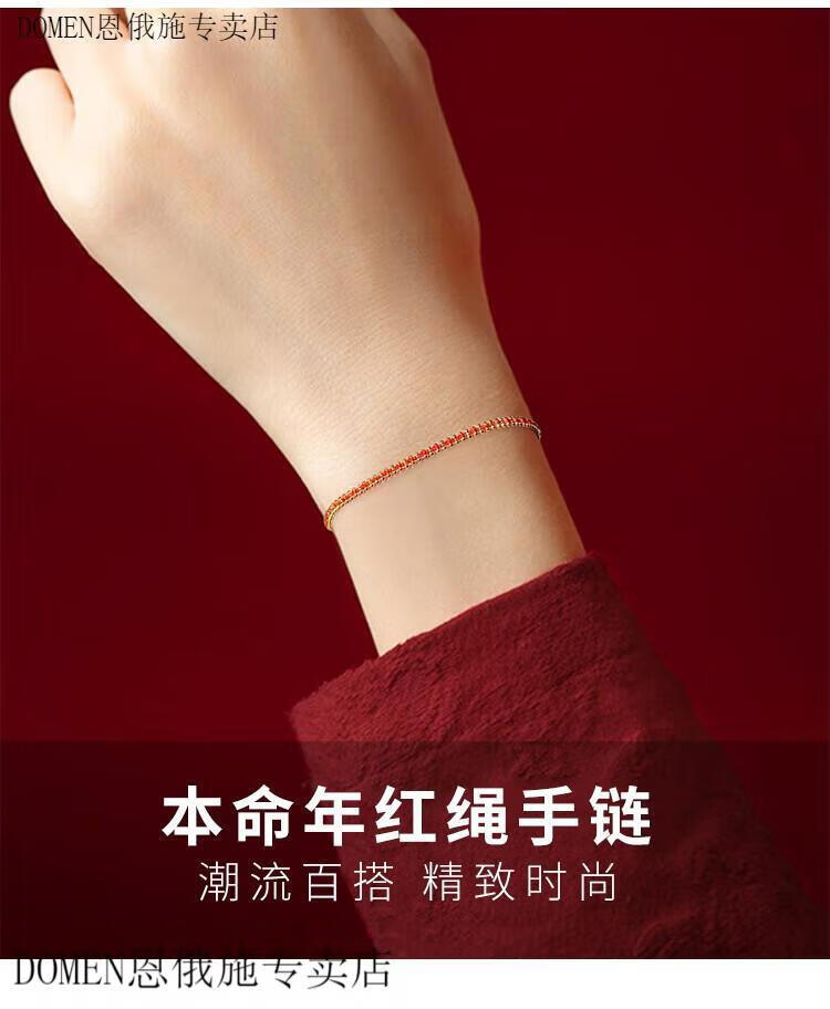 DOMEN old phoenix gold store model zodiac year red rope bracelet for women, good luck, light luxury plated 18k gold, non-fading, versatile gift, gold - zodiac year red rope bracelet, non-fading, 16-18cm, recommended 90-120 Jin Jin is equal to about 0.5 kg