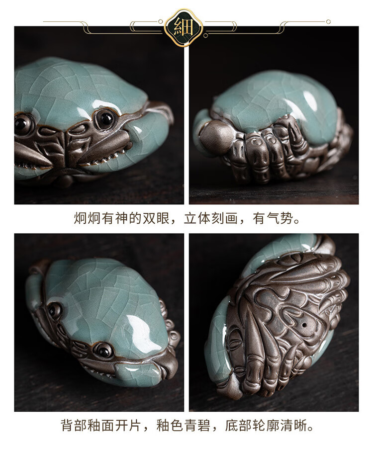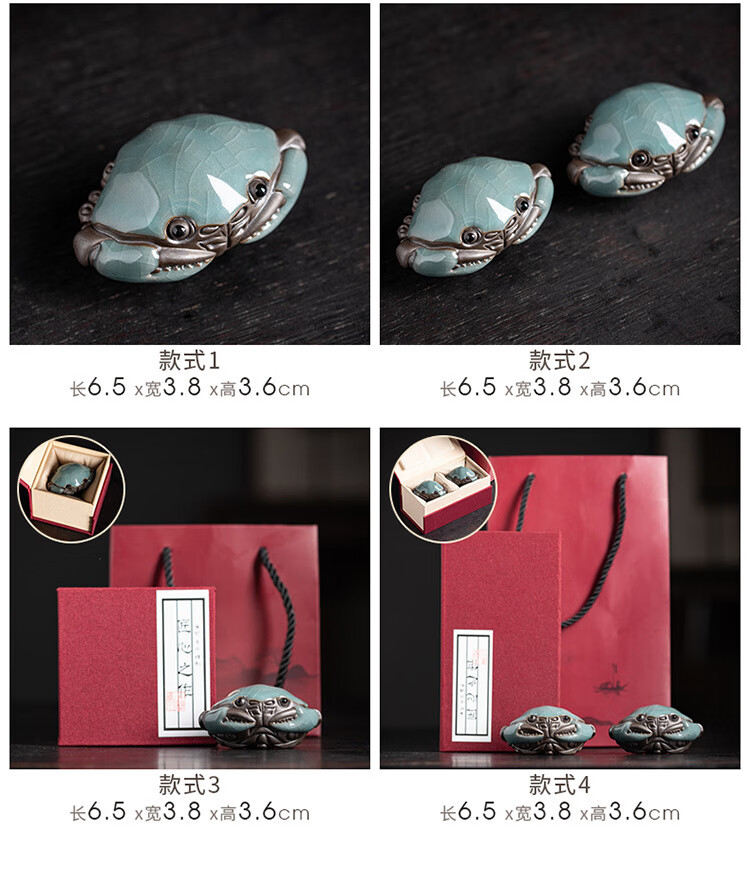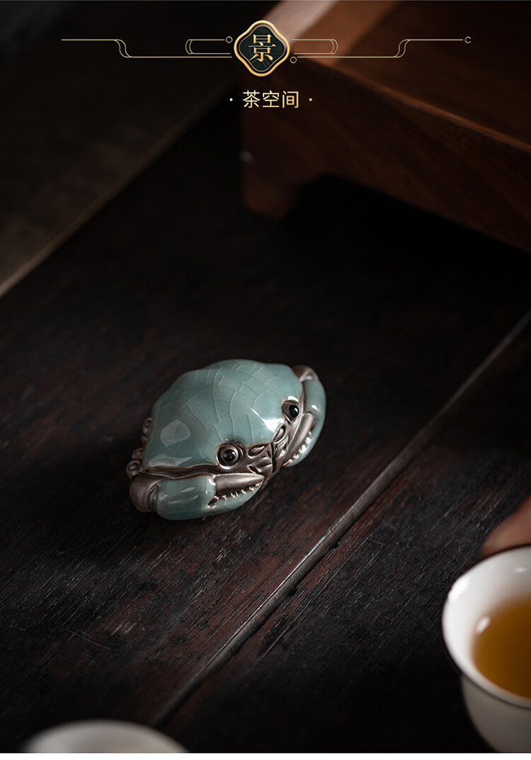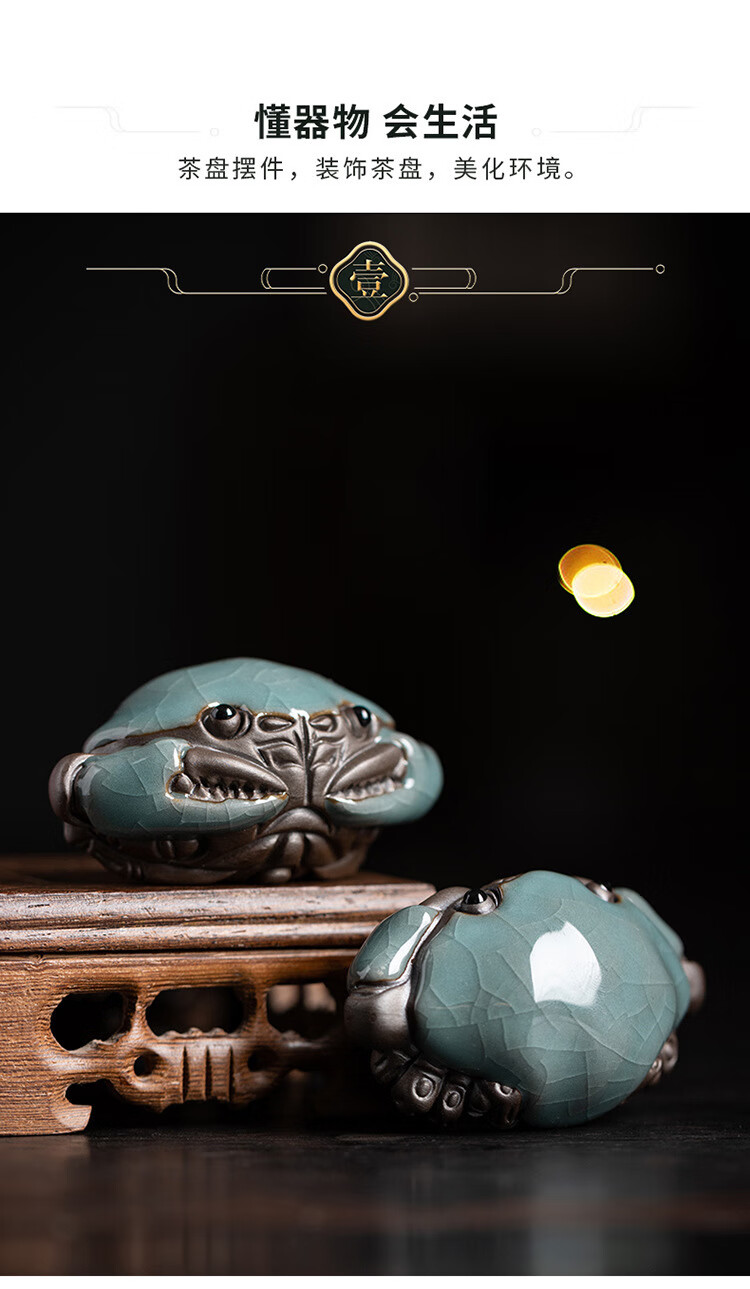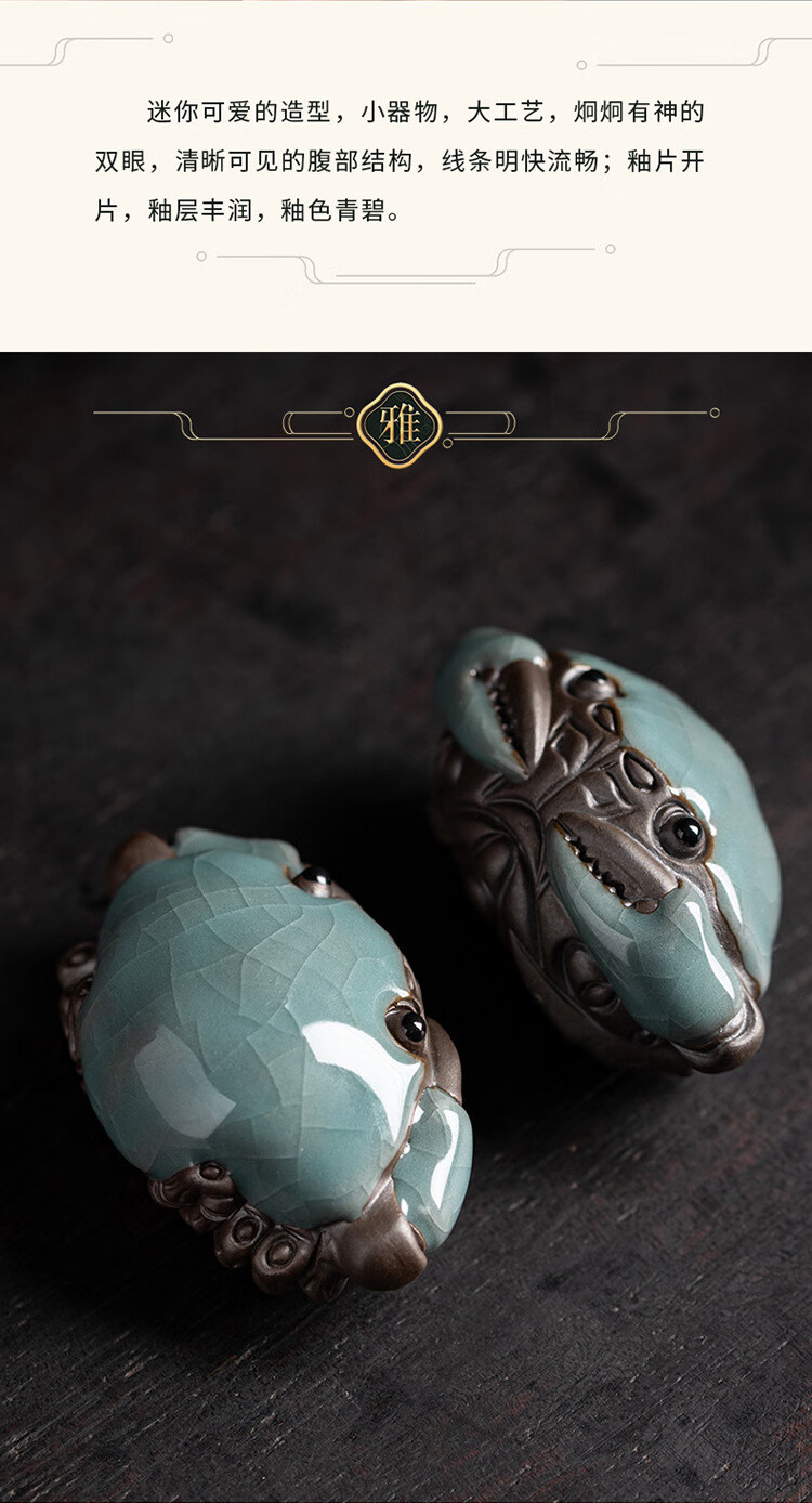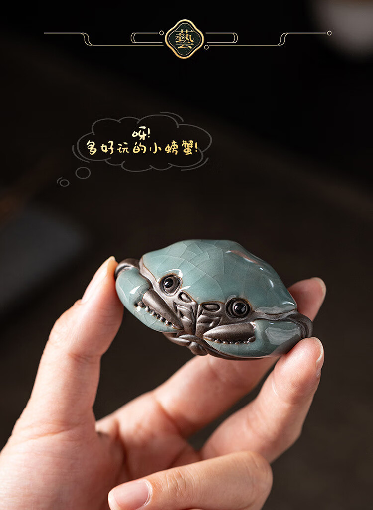 Enshousu ceramic small crab tea pet ornaments Ge Kiln handmade crabs can be raised and played with for tea and creative tea table and tea table decorations Fujiatianxia-Little Crabs-Simple decoration