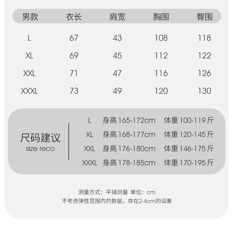 China (cm) 165 / 88-90 170 / 96-98 175 / 108-110 180 / 118-122 185 / 126-130