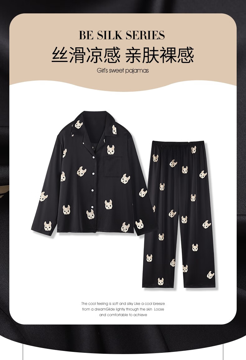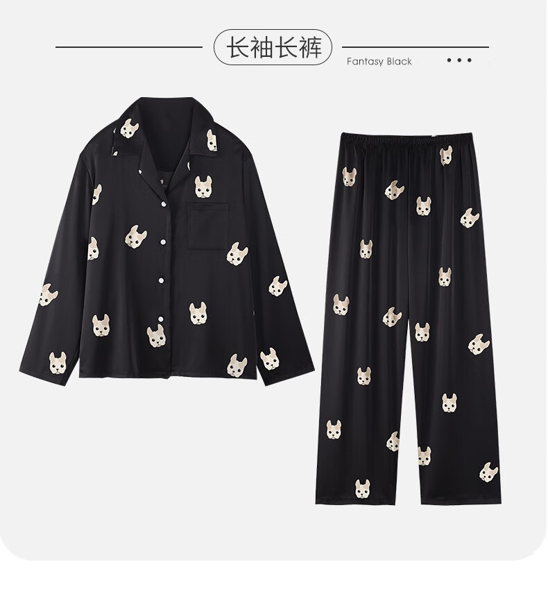 Hanziduo Zhou Shen Bailu Same Style Pajamas for Men and Women Summer Ice Silk Long Sleeve Spring and Autumn Couple Simulated Silk Puppy Celebrity Home Clothes 103 Men's 3XL