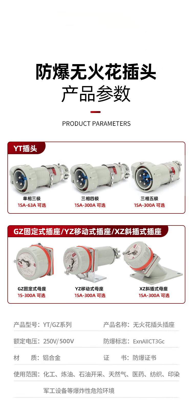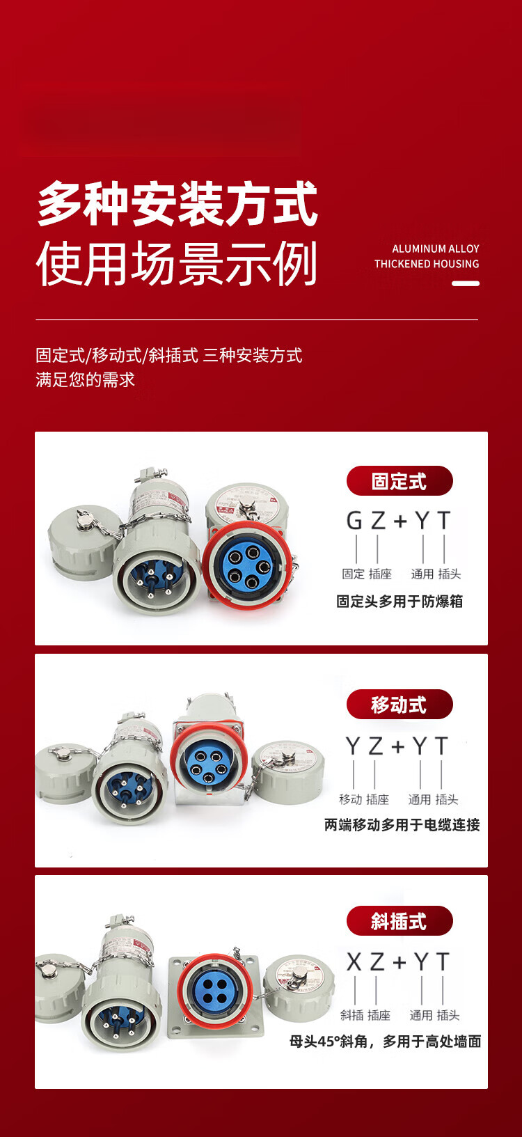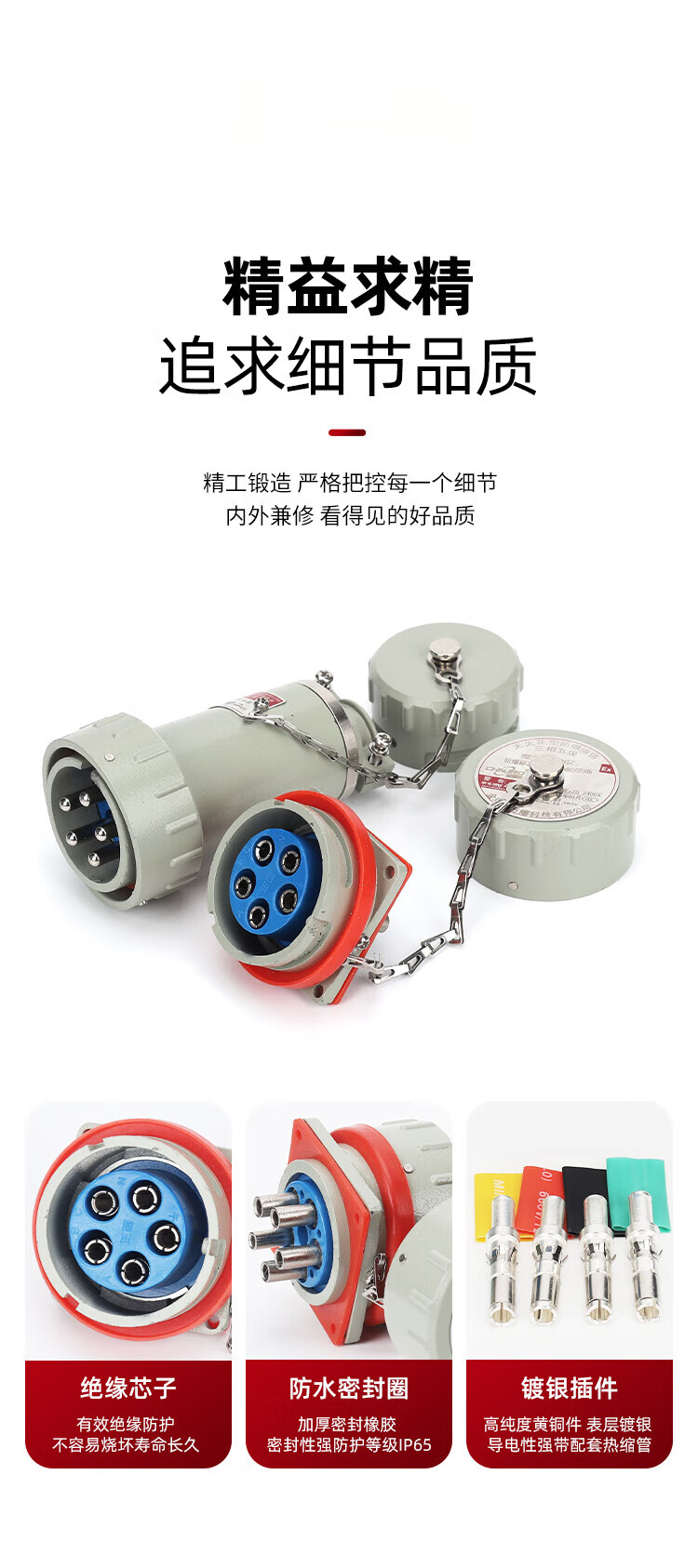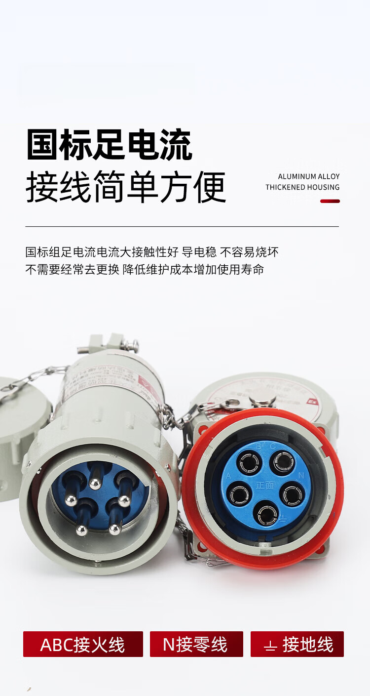 Spark-free explosion-proof aviation plug and socket 220V single-phase three-four-pole industrial connector pin 380V plug YT with pin 15A/16A three-phase five-pole-5 core