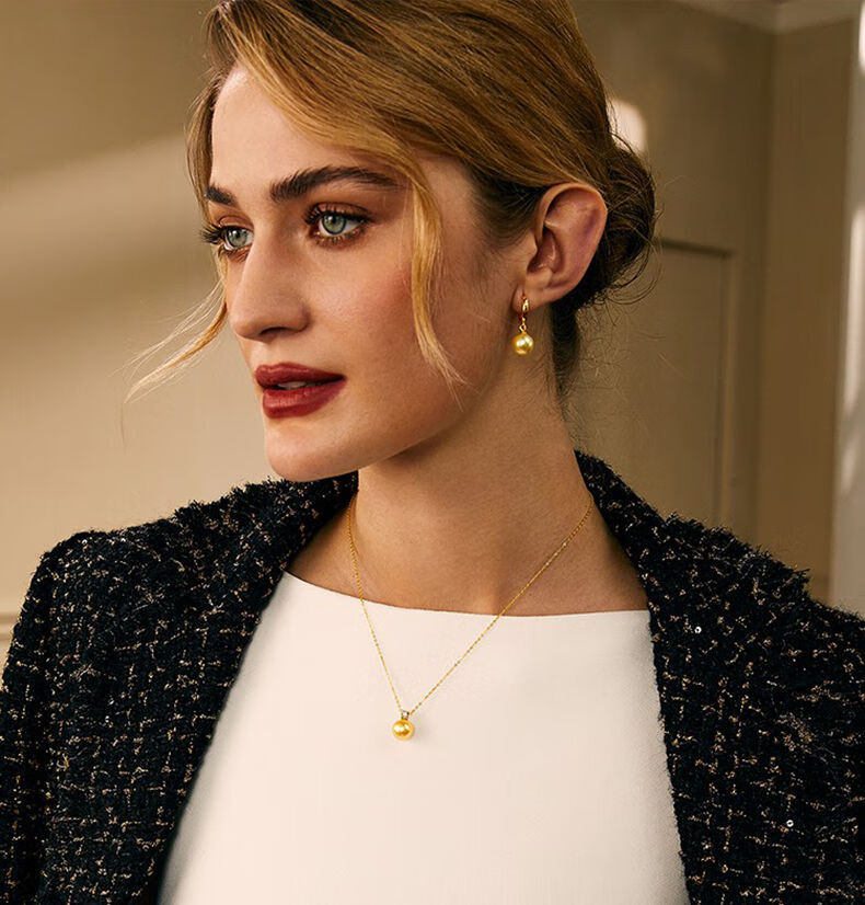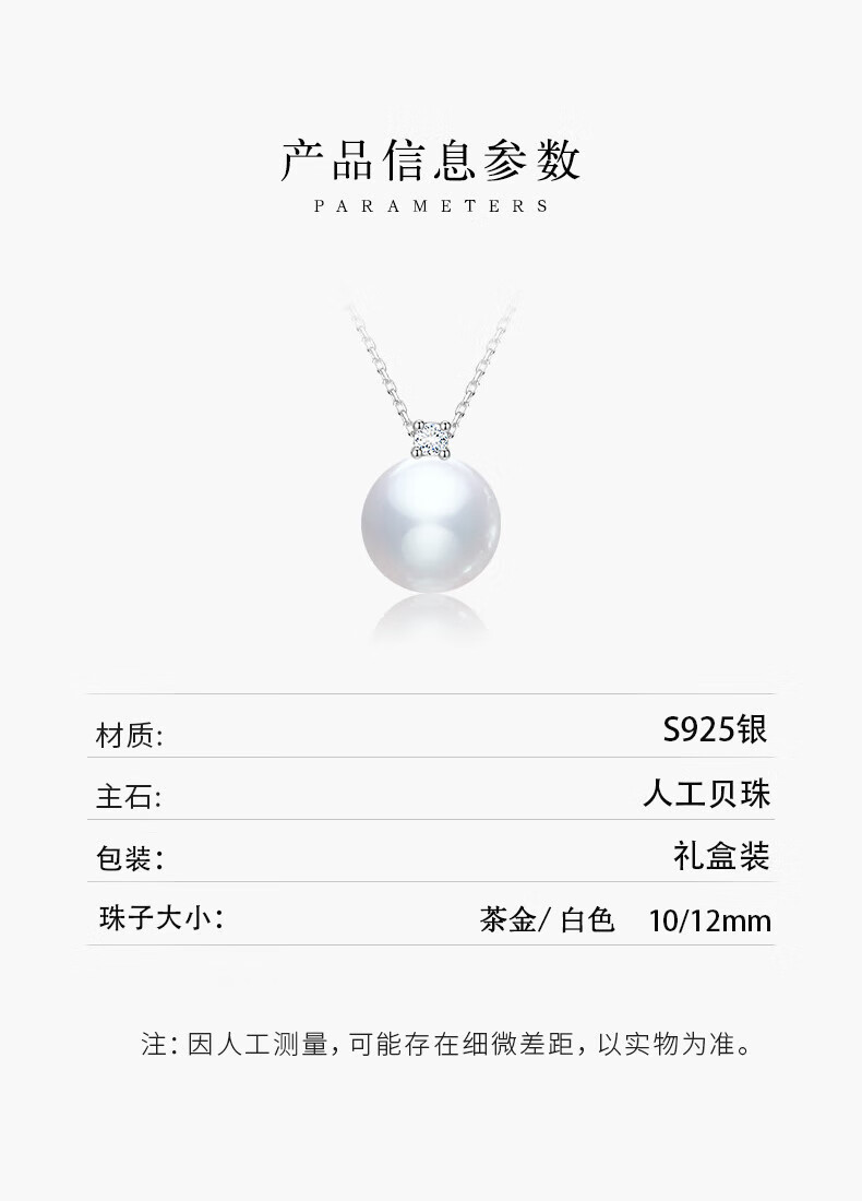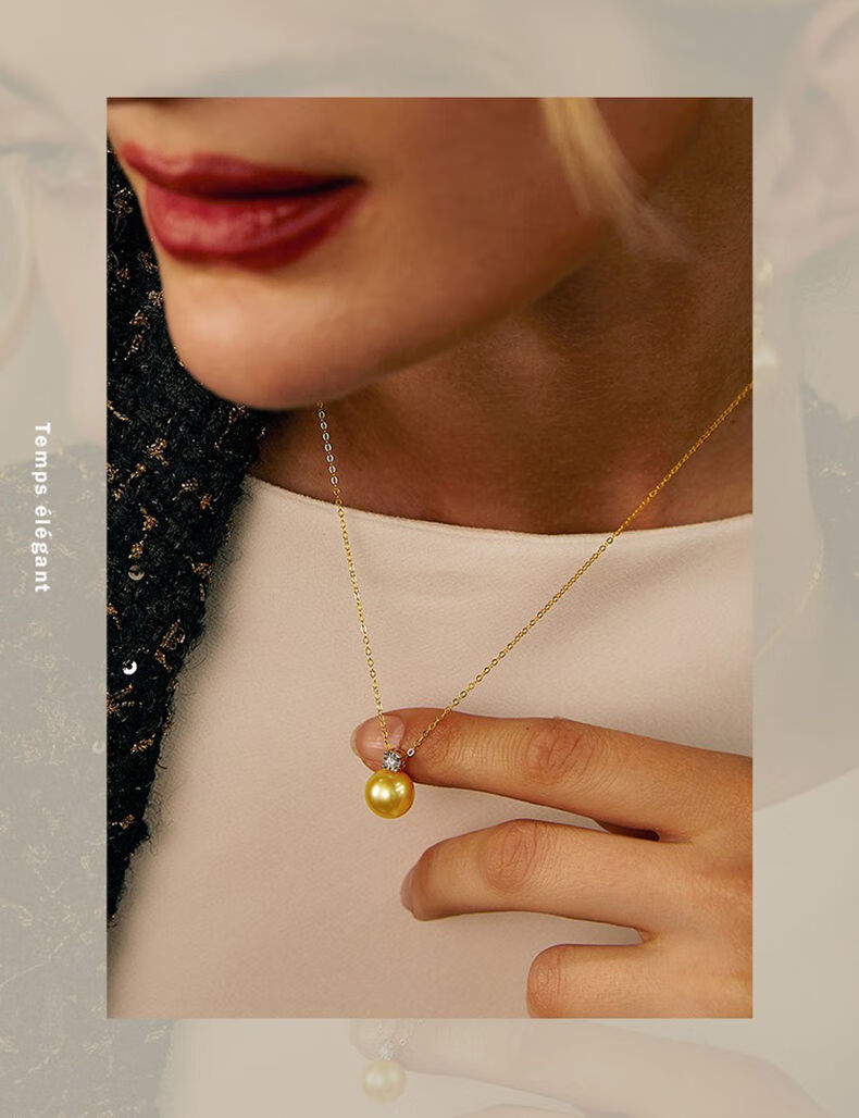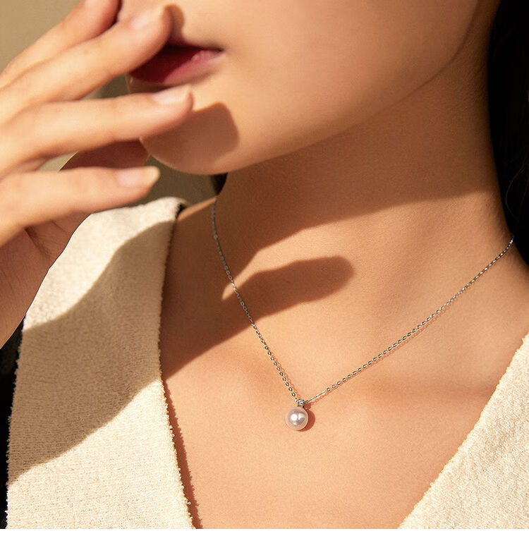Holy glass oyster pearl pendant necklace S925 sterling silver single gold bead princess female model classic versatile collarbone 10mm white bead model