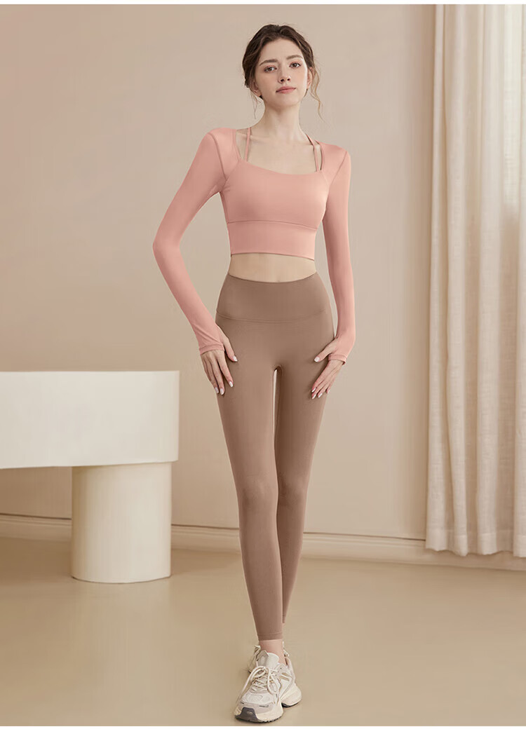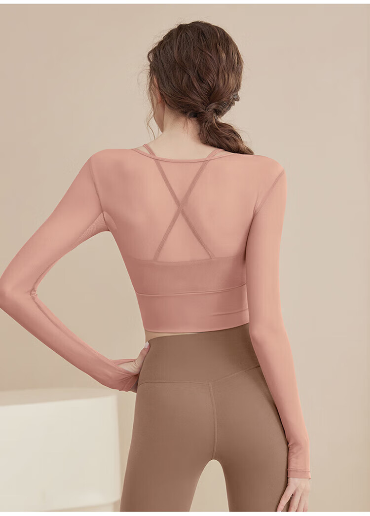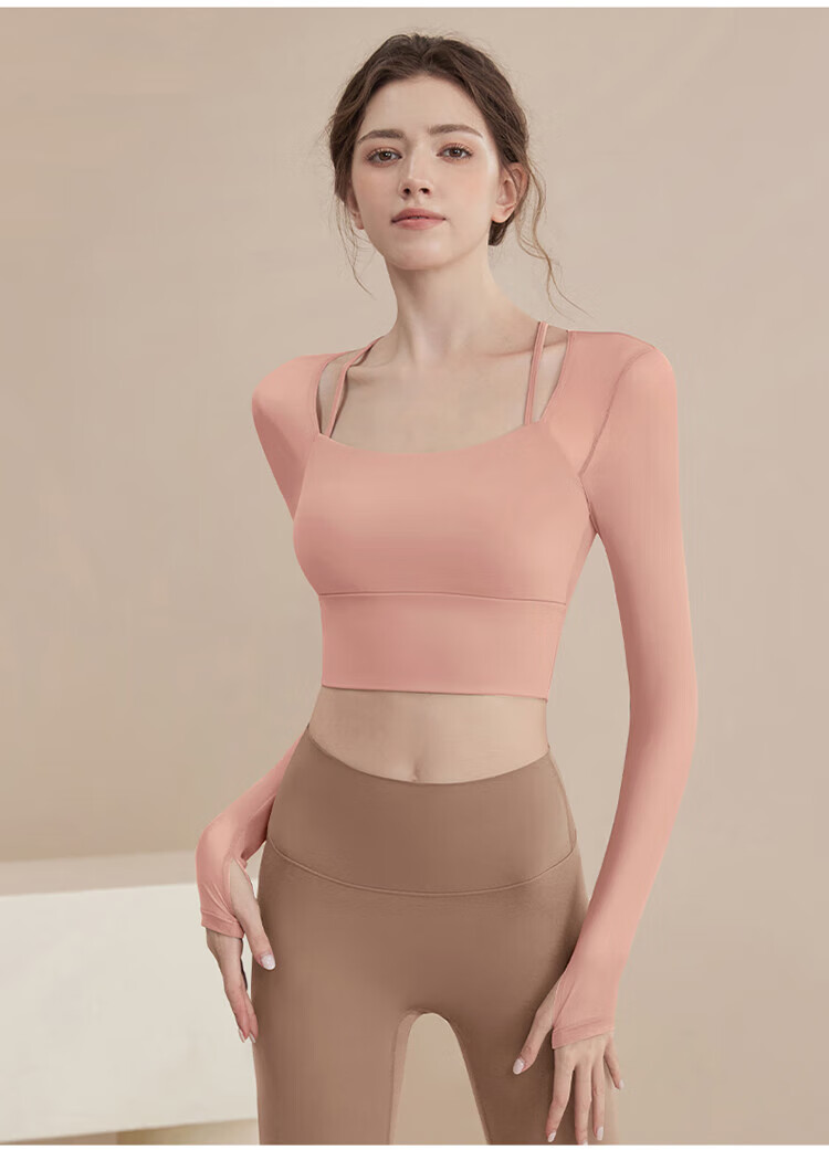 LULUUVTTOH Yoga Wear Suit for Women 2025 New Long Sleeve Padded Top Slim Fit Fitness Pilates Sports Training Wear for Women Pink Top Fixed Cup Breast Pad M Recommended Weight 100-110Jin Jin is equal to 0.5kg
