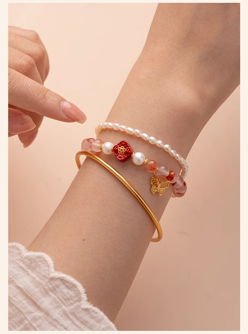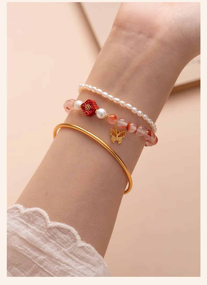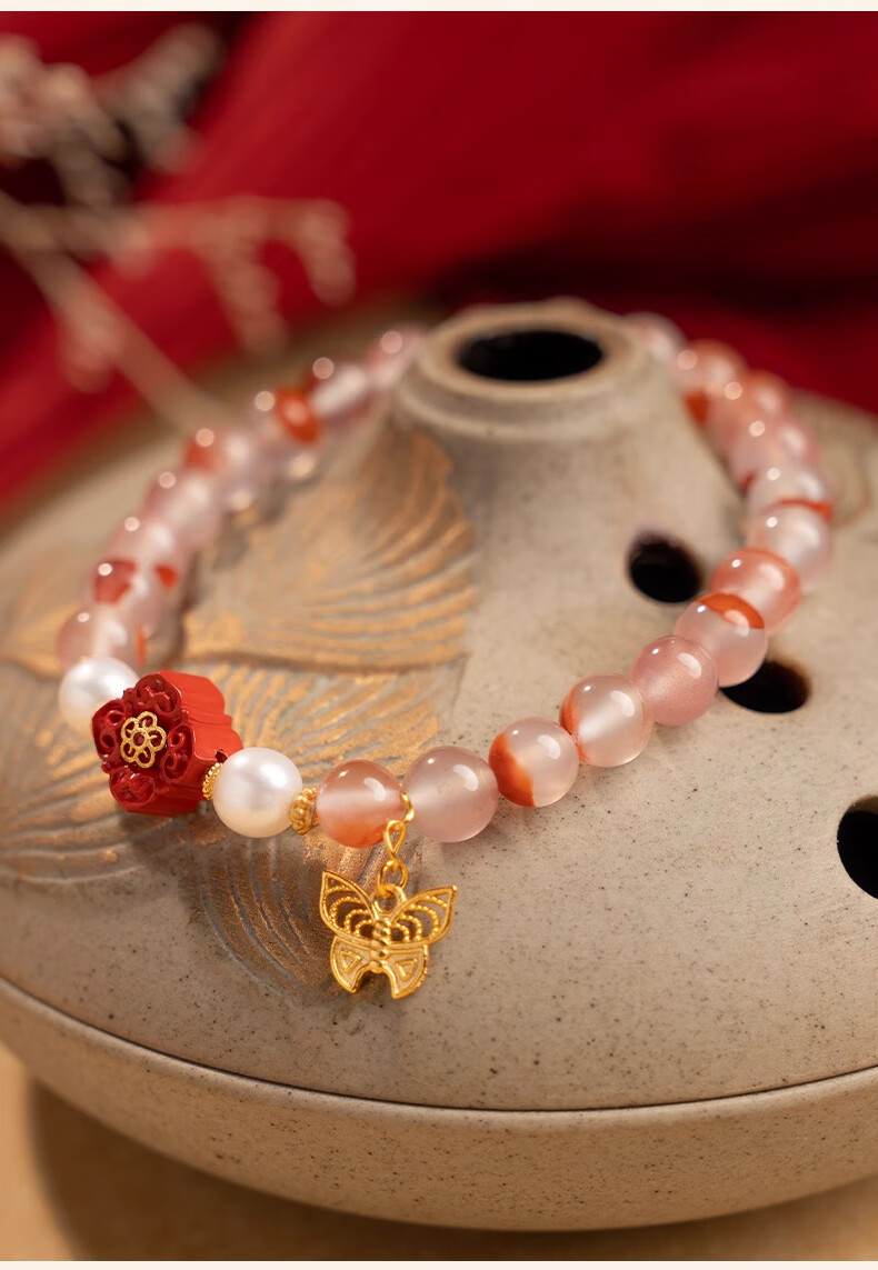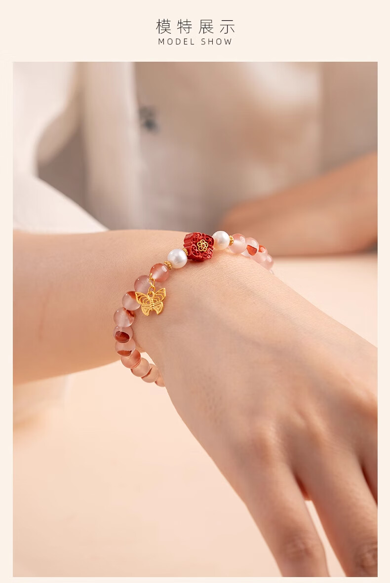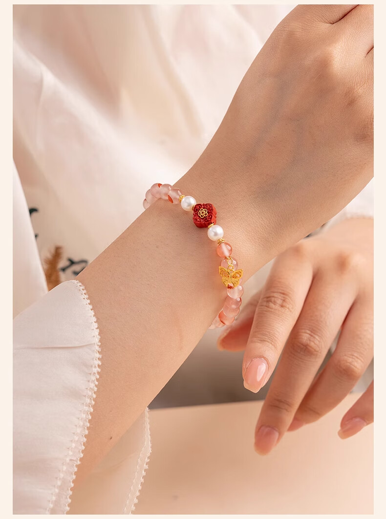Baoxin Fanrui BOSFRU Bingpiaonan Red Bracelet Natural Authentic Women's 18k Gold Cinnabar Ruyi Butterfly Beaded Bracelet Birthday Gift Toy Inlaid with Ruyi Cinnabar Bingpiaonan Red Bracelet Bracelet Length 15cm