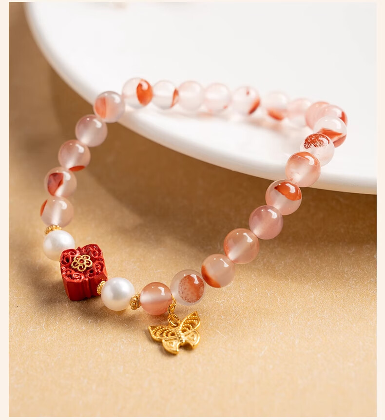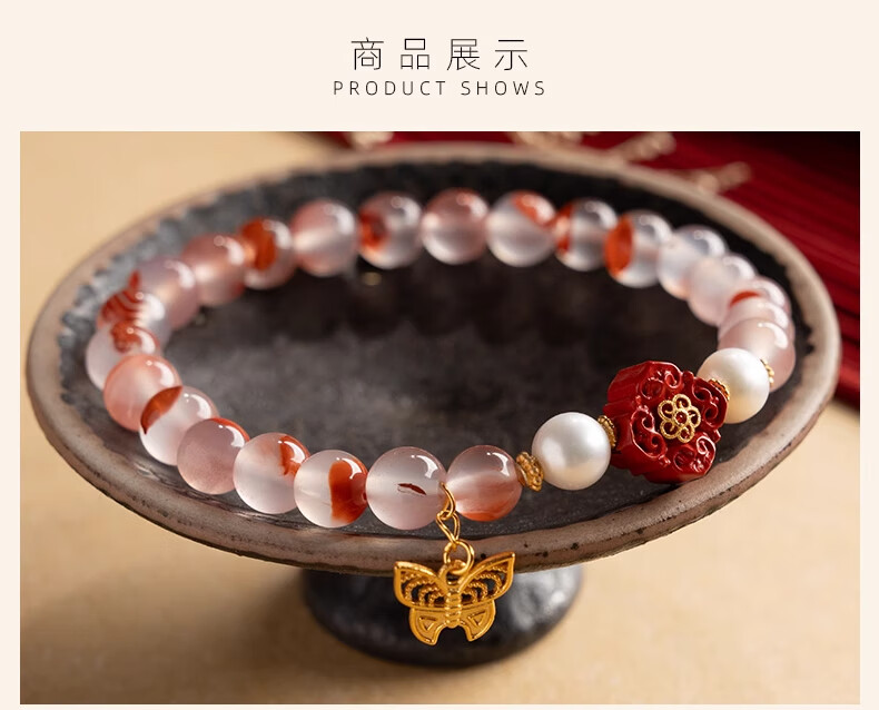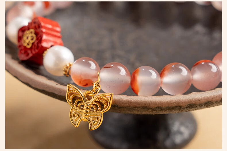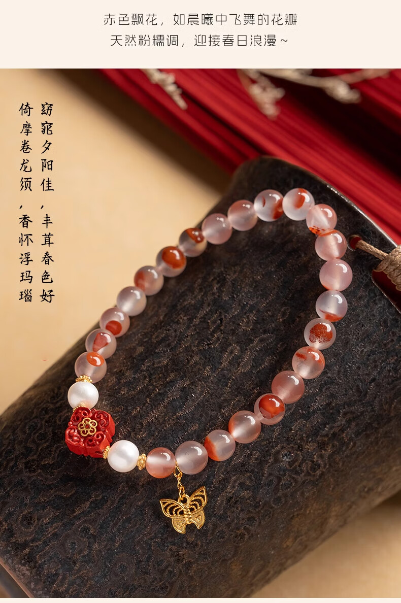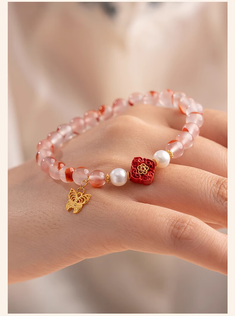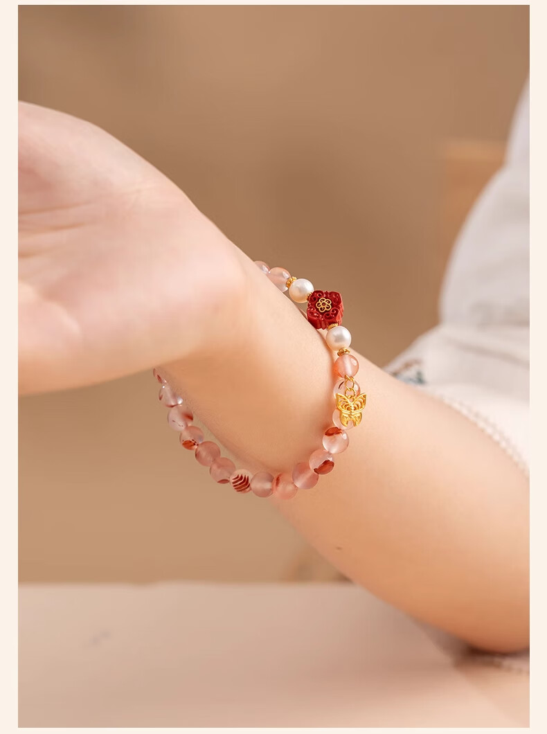 Baoxin Fanrui BOSFRU Bingpiaonan Red Bracelet Natural Authentic Women's 18k Gold Cinnabar Ruyi Butterfly Beaded Bracelet Birthday Gift Toy Inlaid with Ruyi Cinnabar Bingpiaonan Red Bracelet Bracelet Length 15cm