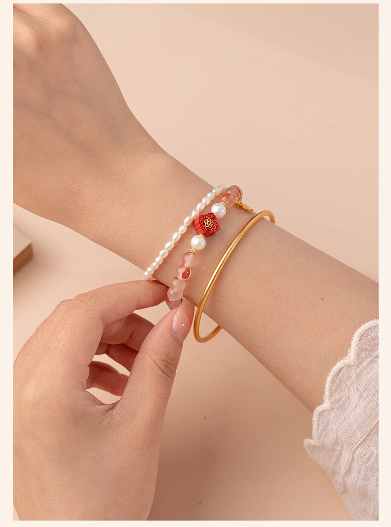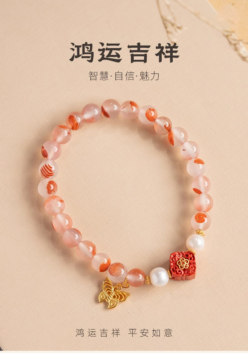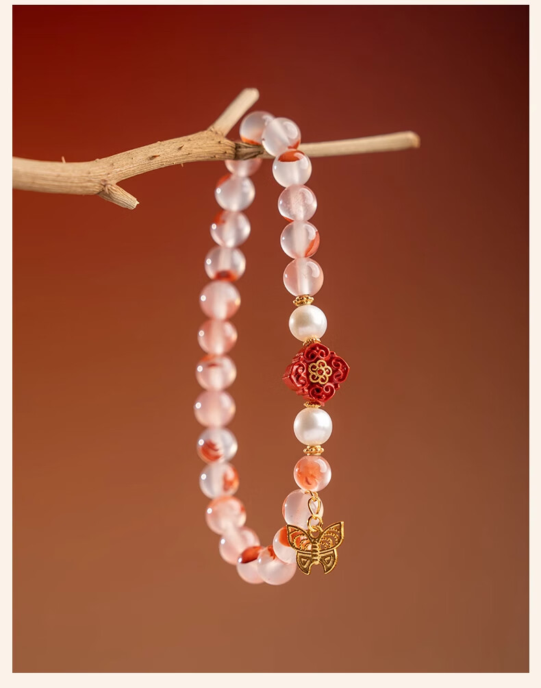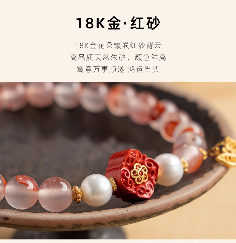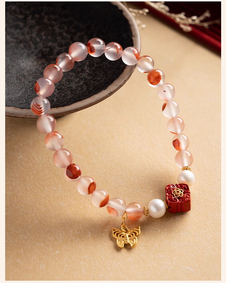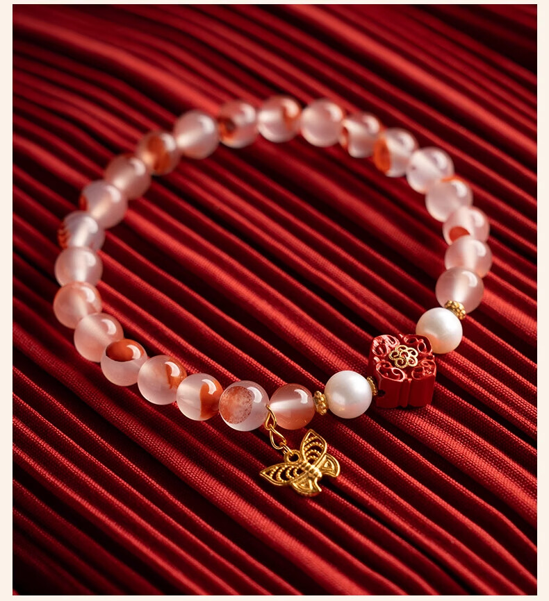 Baoxin Fanrui BOSFRU Bingpiaonan Red Bracelet Natural Authentic Women's 18k Gold Cinnabar Ruyi Butterfly Beaded Bracelet Birthday Gift Toy Inlaid with Ruyi Cinnabar Bingpiaonan Red Bracelet Bracelet Length 15cm