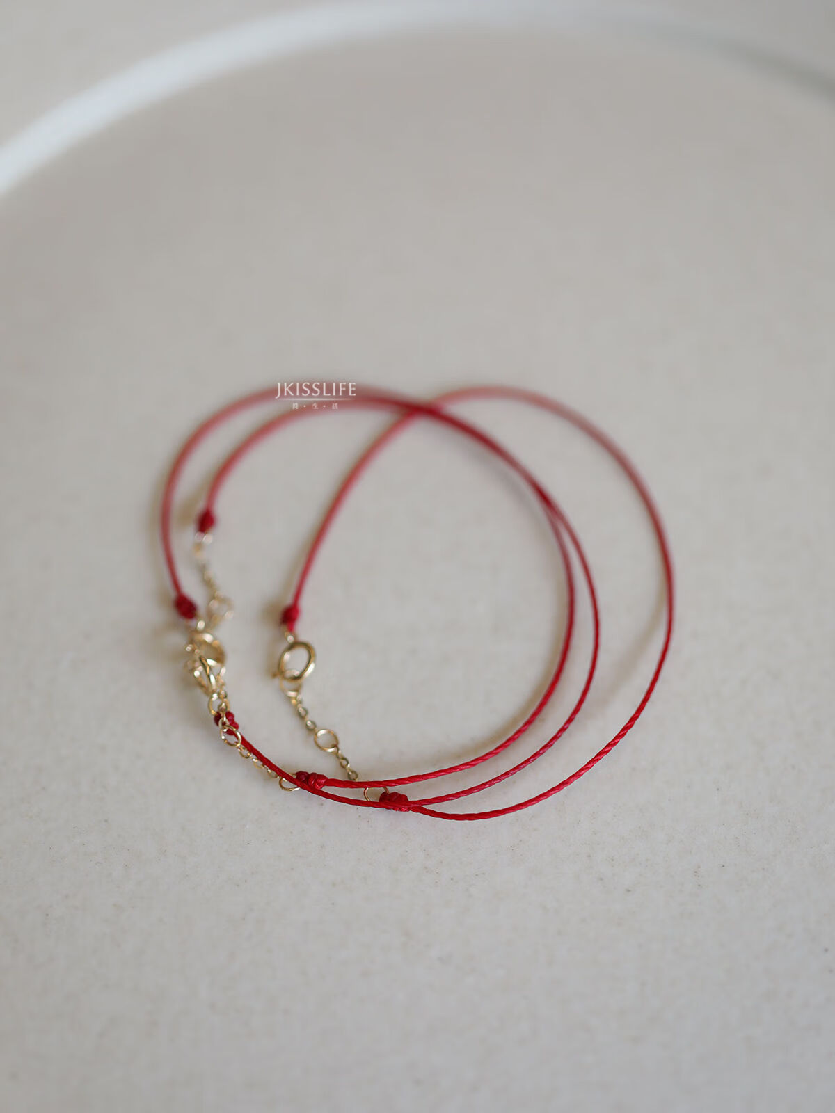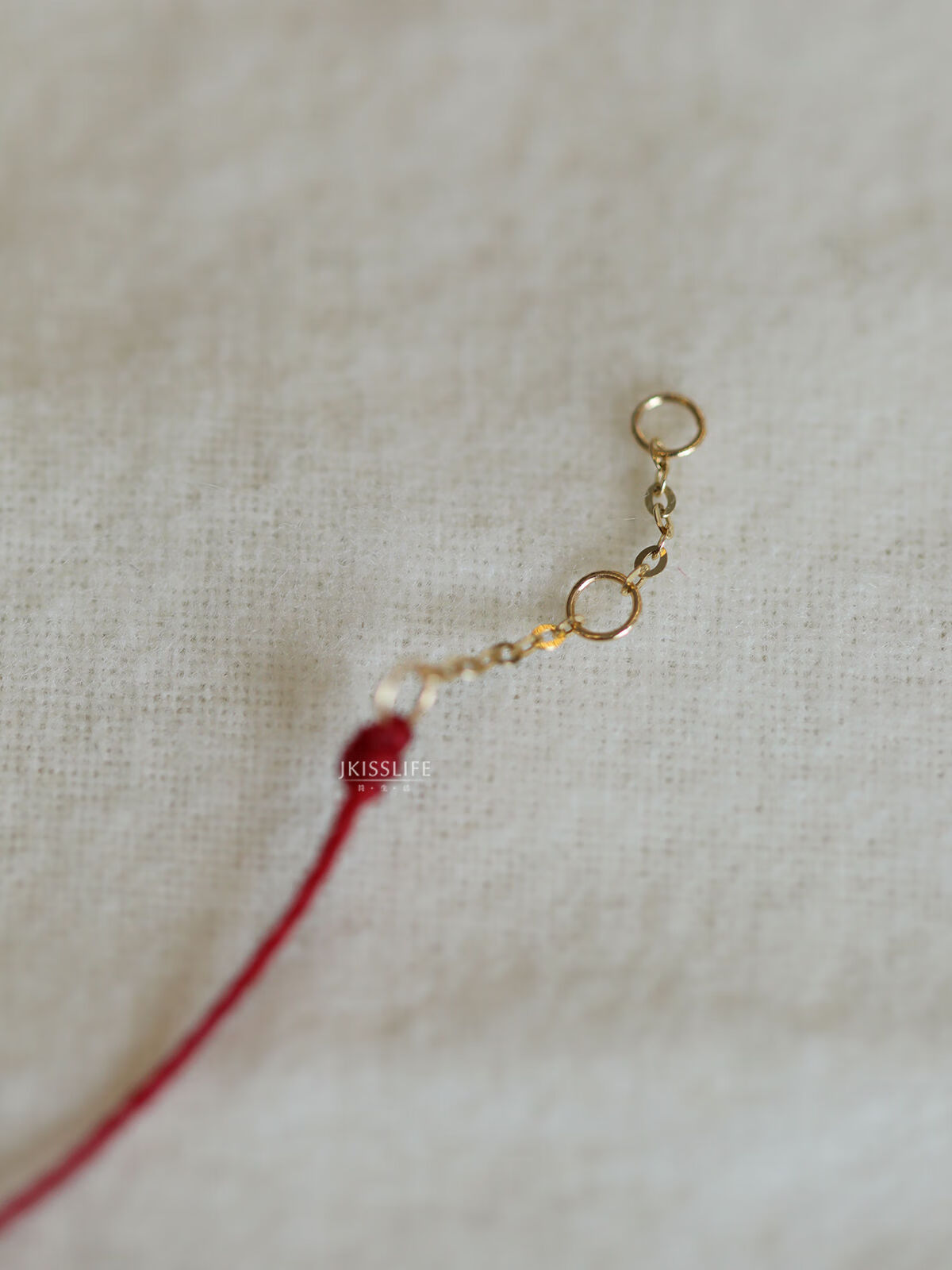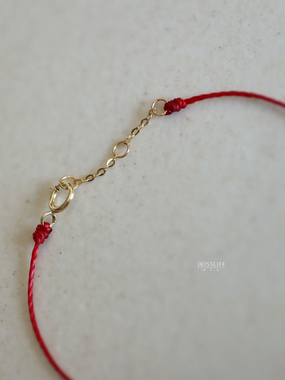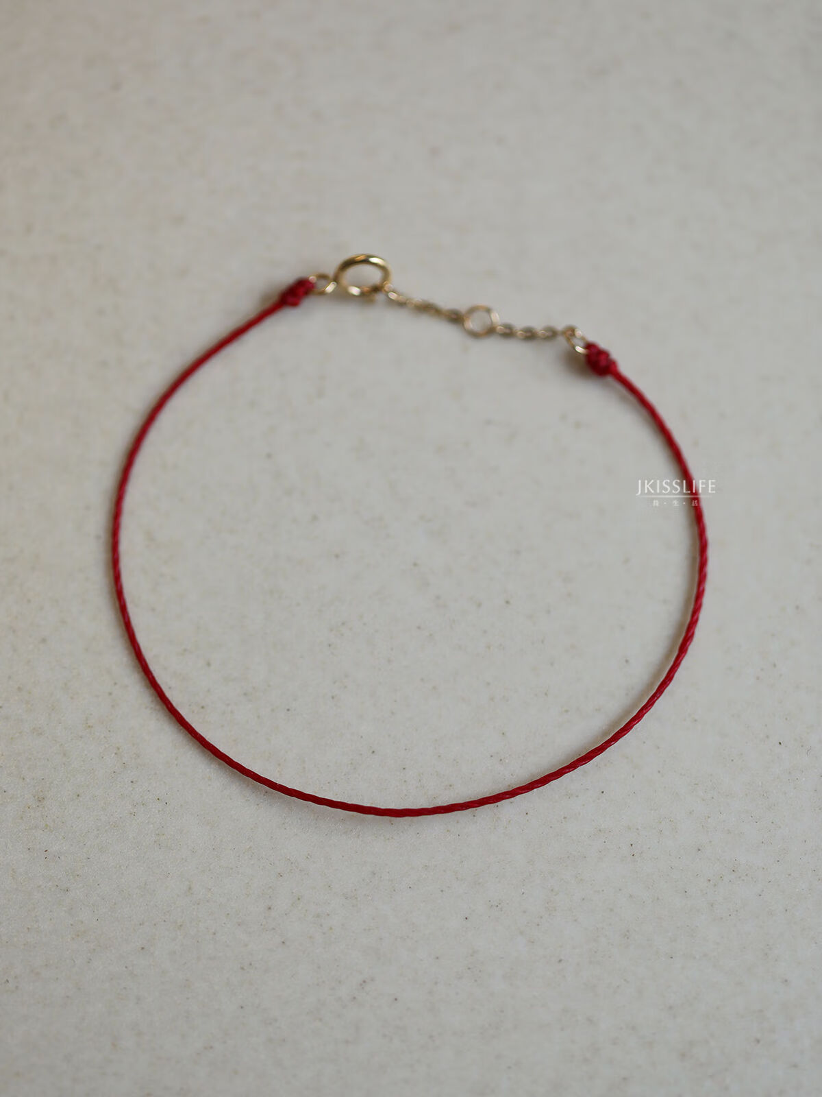 Holy glass 14K gold good luck extremely thin natal red K gold red rope exquisite good meaning transfer bracelet adjustable stacking 15.5cm