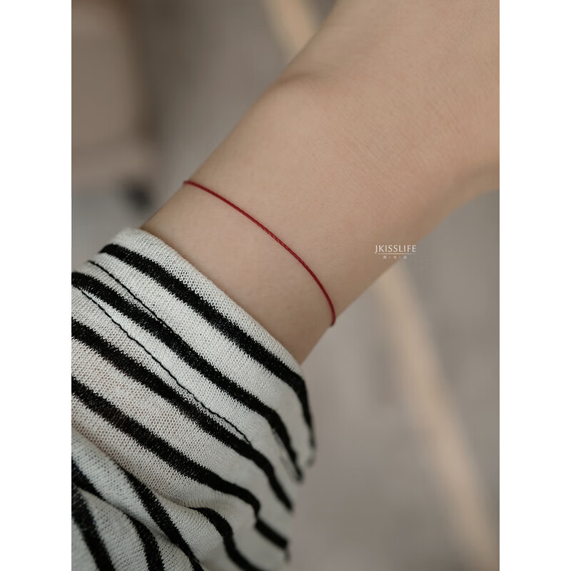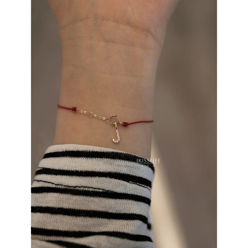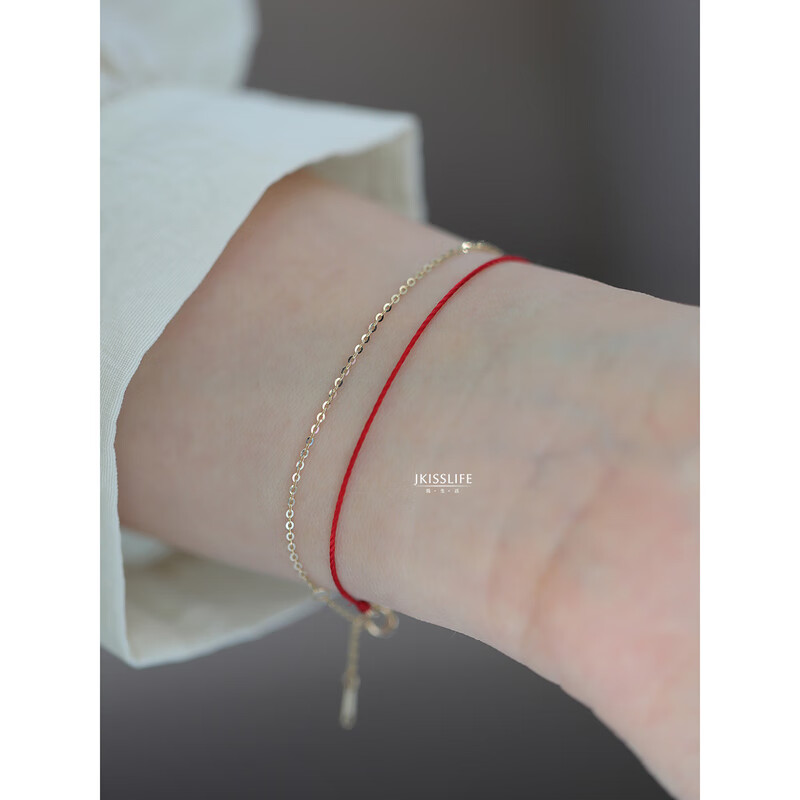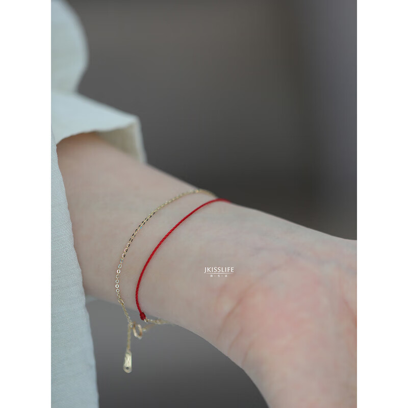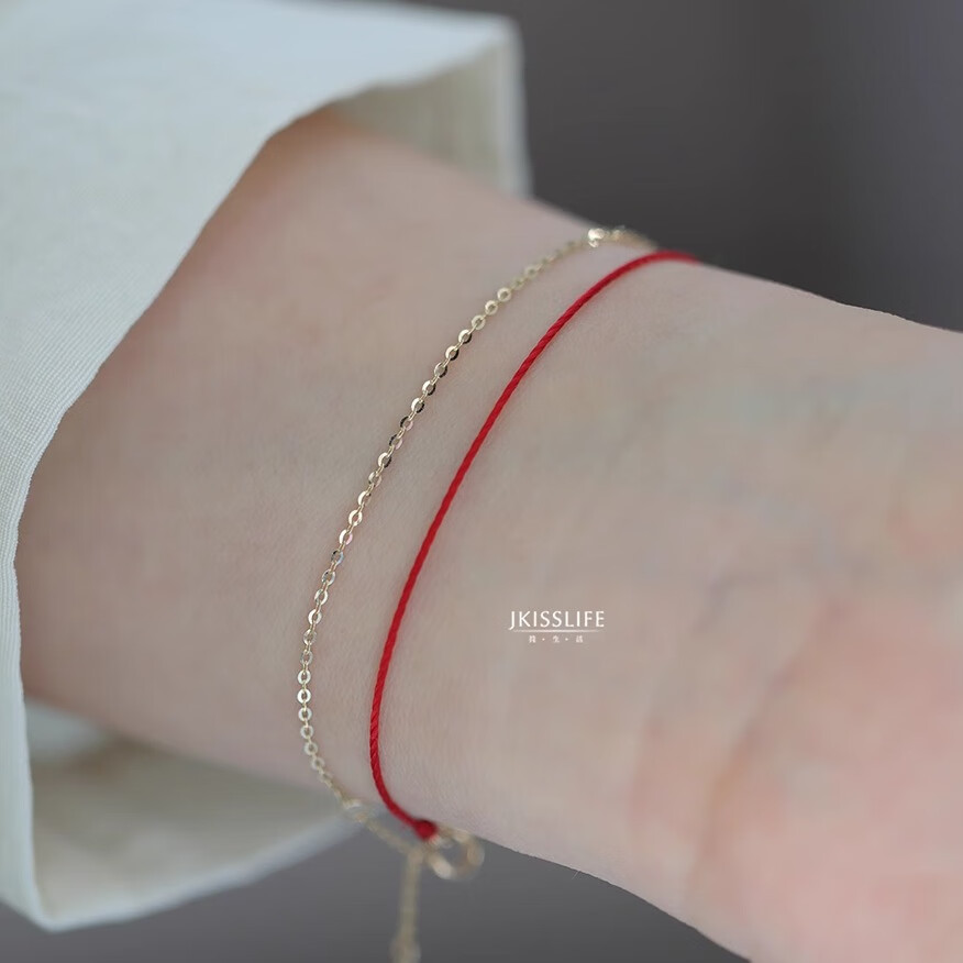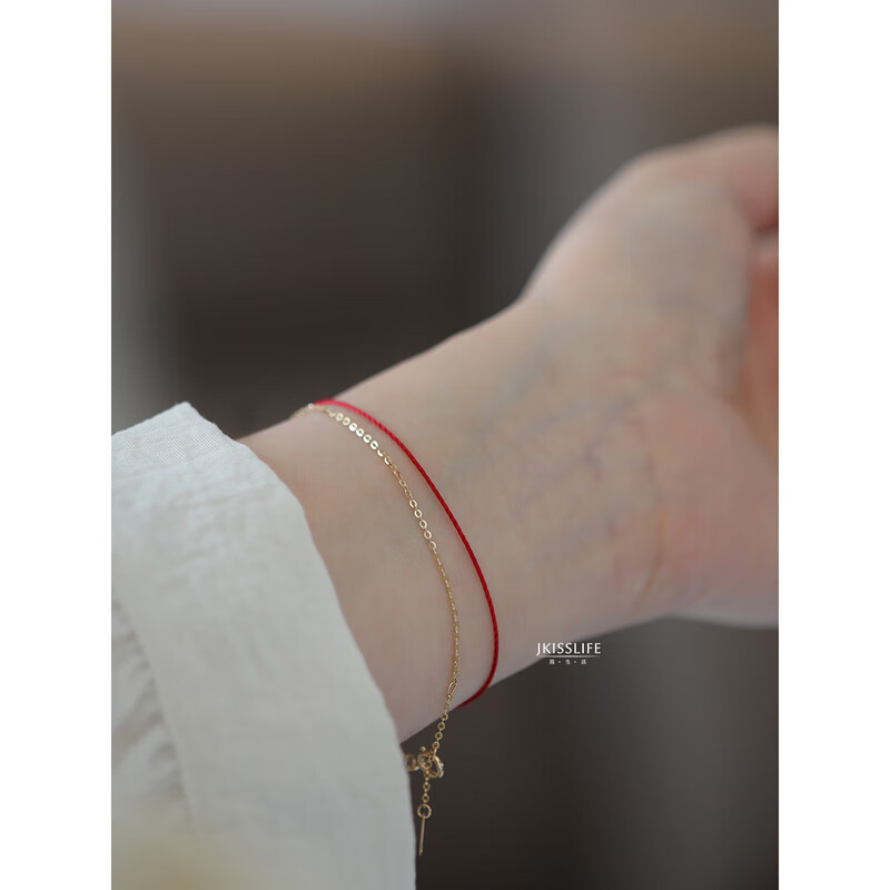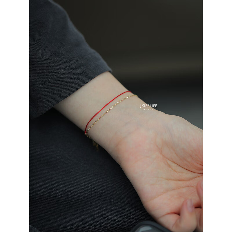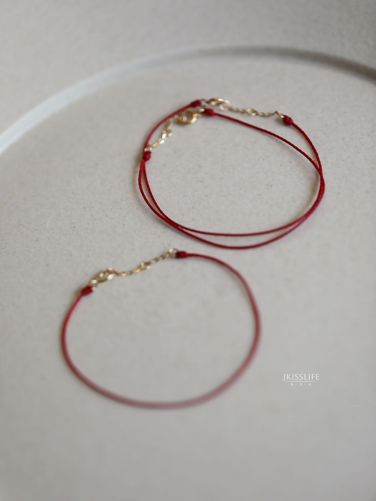 Holy glass 14K gold good luck extremely thin natal red K gold red rope exquisite good meaning transfer bracelet adjustable stacking 15.5cm