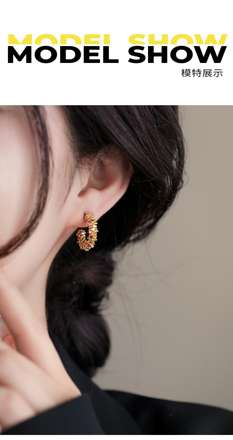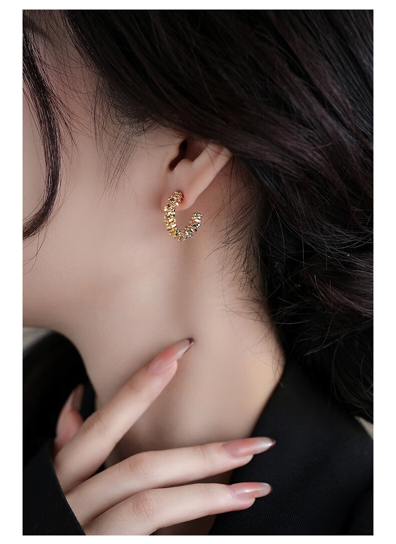 DAISY DREAM925 silver needle broken silver gold earrings for women light luxury niche fashion earrings high-end personalized French earrings gold broken silver earrings 925 silver needle
