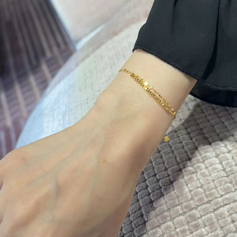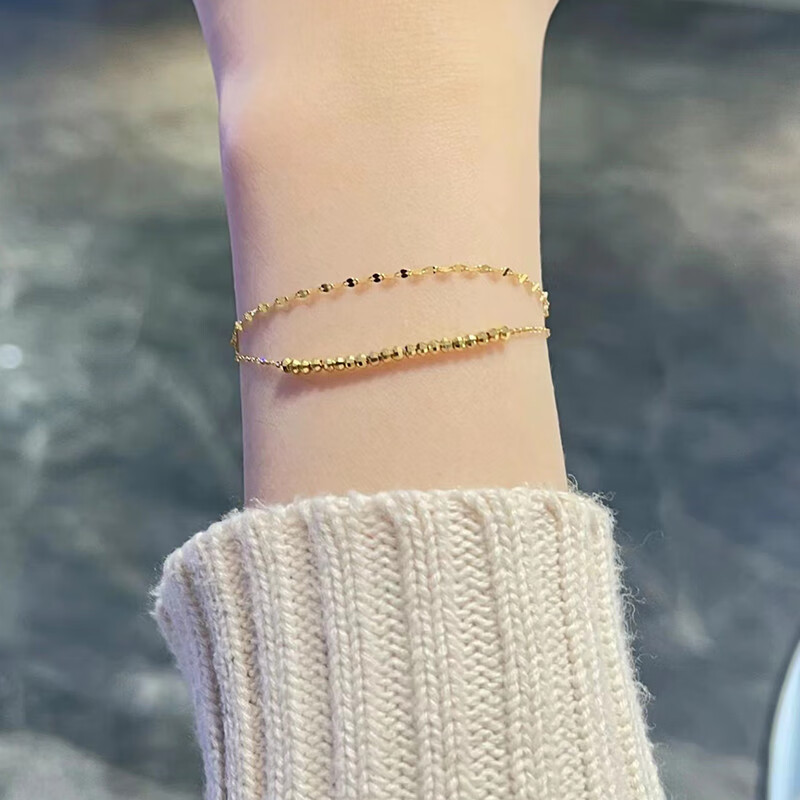 Shengli Aurora Gold Bead Bracelet for Women 18k Gold Double Layer Light Luxurious High-end Design Broken Gold Stacked Versatile Bracelet Trendy Gold