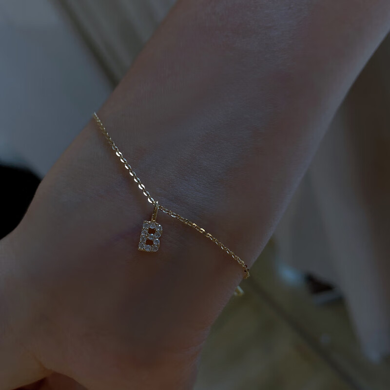Shengli Seoul K gold light luxury jewelry pure 14K gold zircon inlaid letter pendant necklace accessories gift bracelet pendant naked chain 42cm