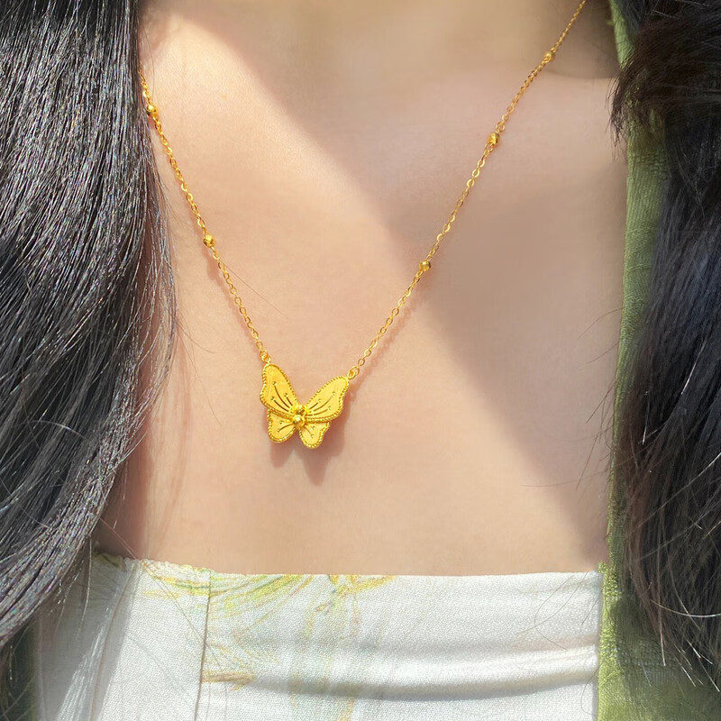 Shengli 18K gold Huayue Jiajie series sparkling bow necklace for women with texture dreamy high-end gold clavicle chain Huayue Jiajie dream butterfly necklace