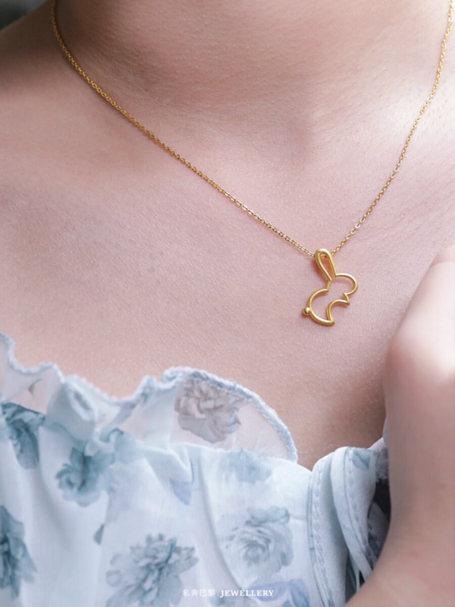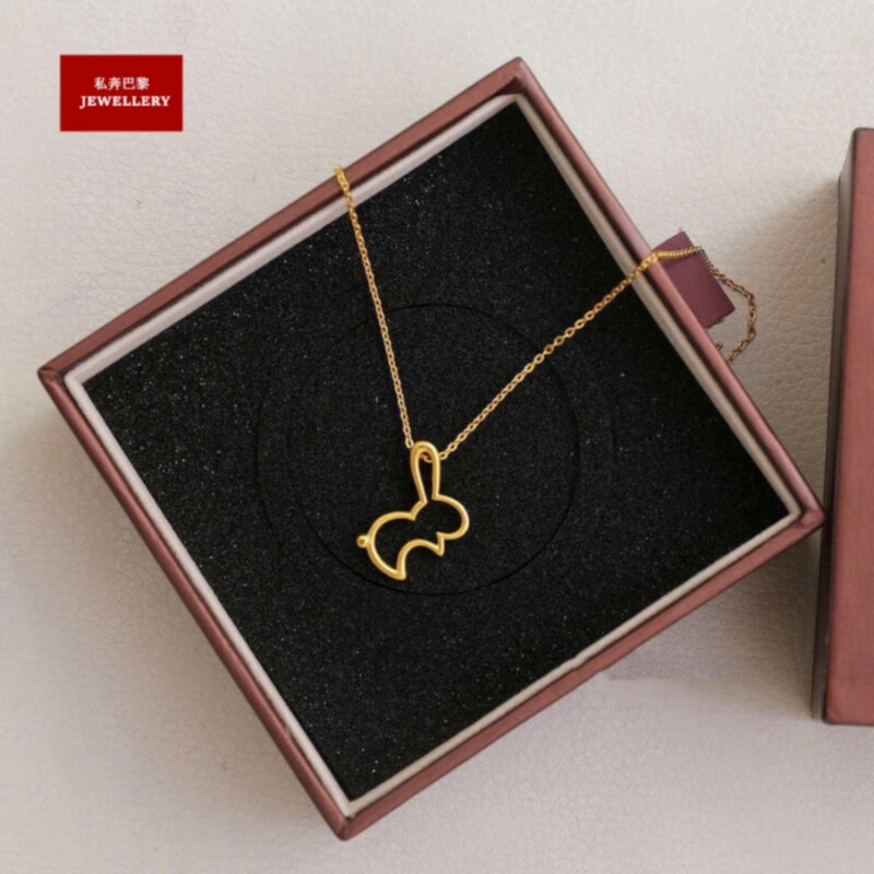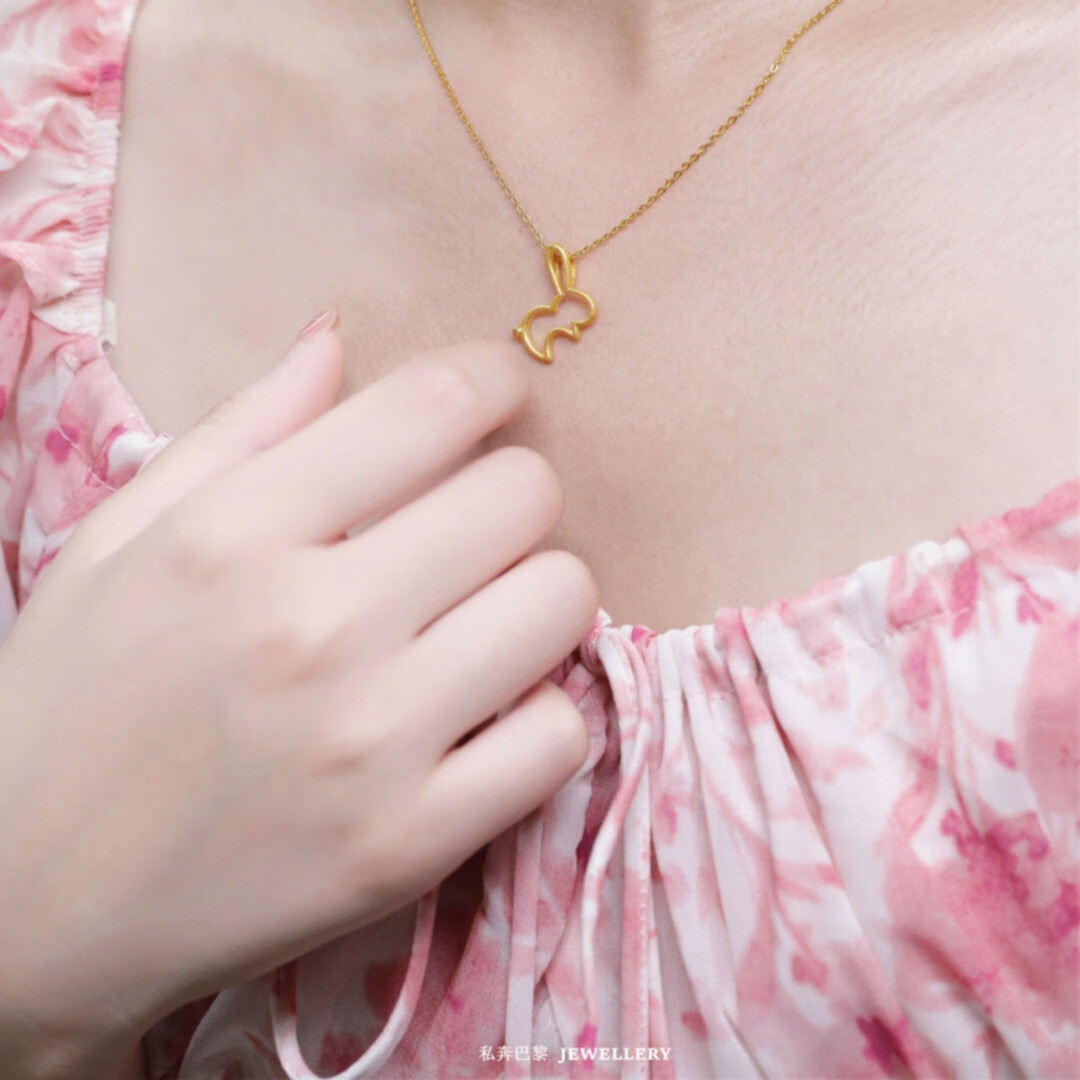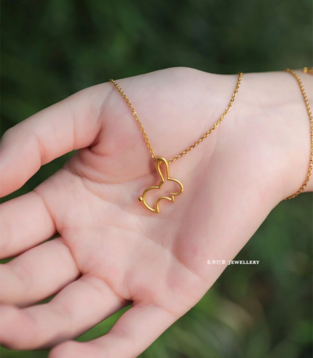 Mr. Shengli Zhou 18K Gold Little Leaping Rabbit Necklace for Women Gold Sterling Silver Zodiac Year Rabbit Hollow Clavicle Chain Zodiac Gift Mr. Zhou Little Leaping Rabbit Necklace