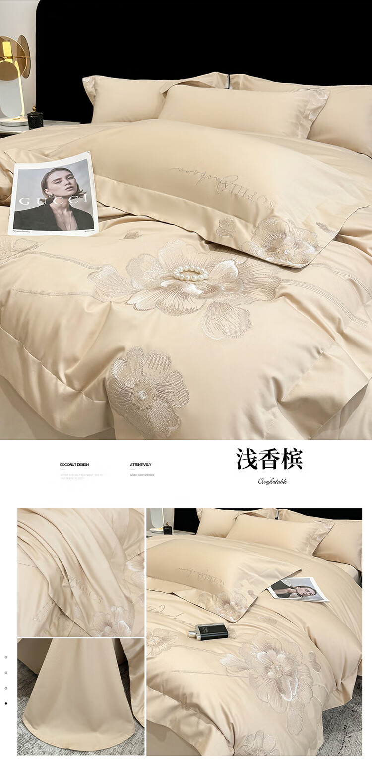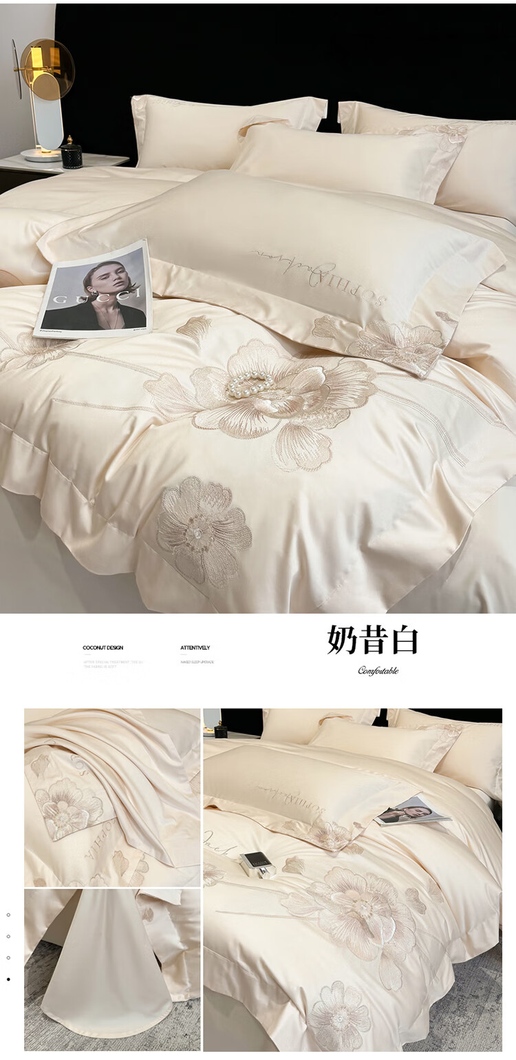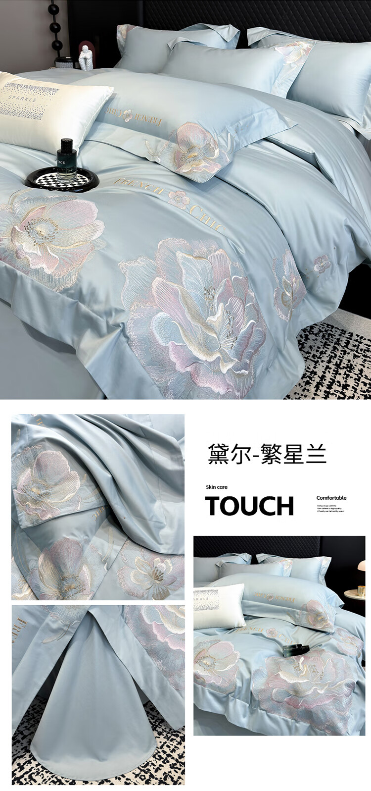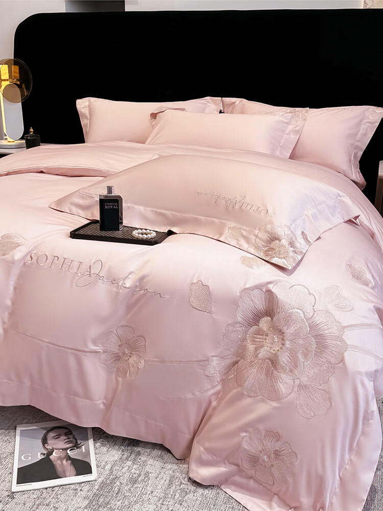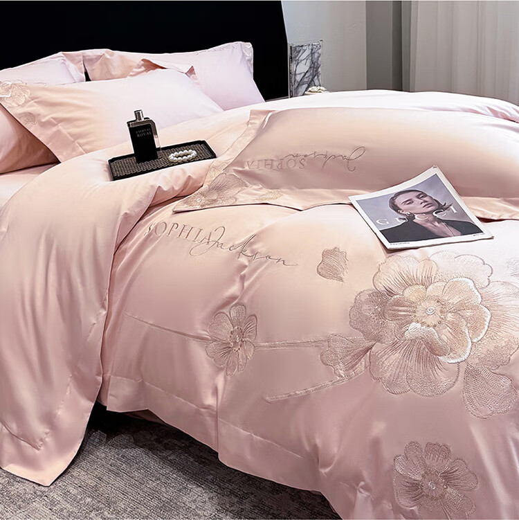 Mercury Series Light Luxury 200 Count Class A Long Staple Cotton Four-piece Set Pure Cotton Skin Friendly Sheets and Quilt Covers European Style Naked Sleeping Cotton Bedding Dell-Starry Blue 1.8 Meter Sheet Style Suitable for Quilt Core 200x230