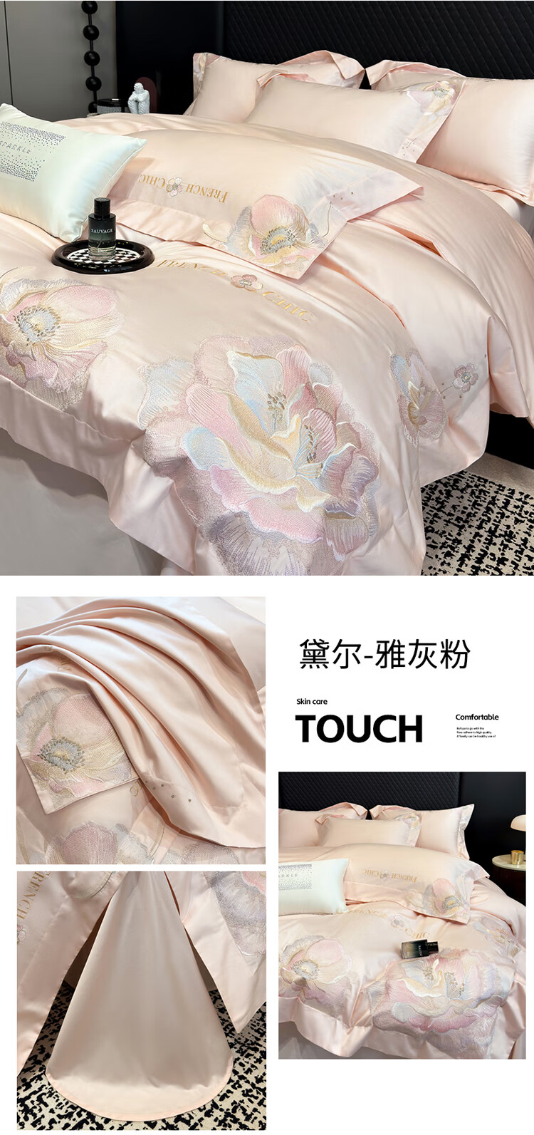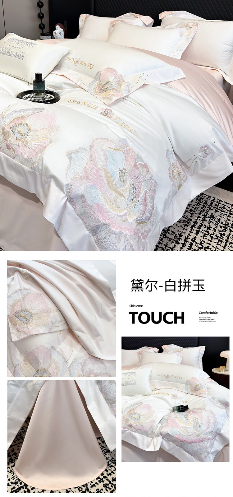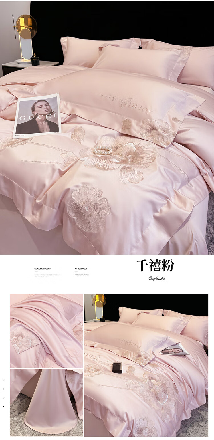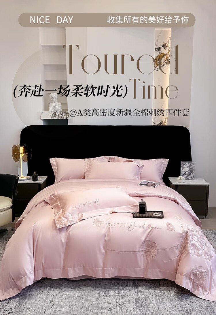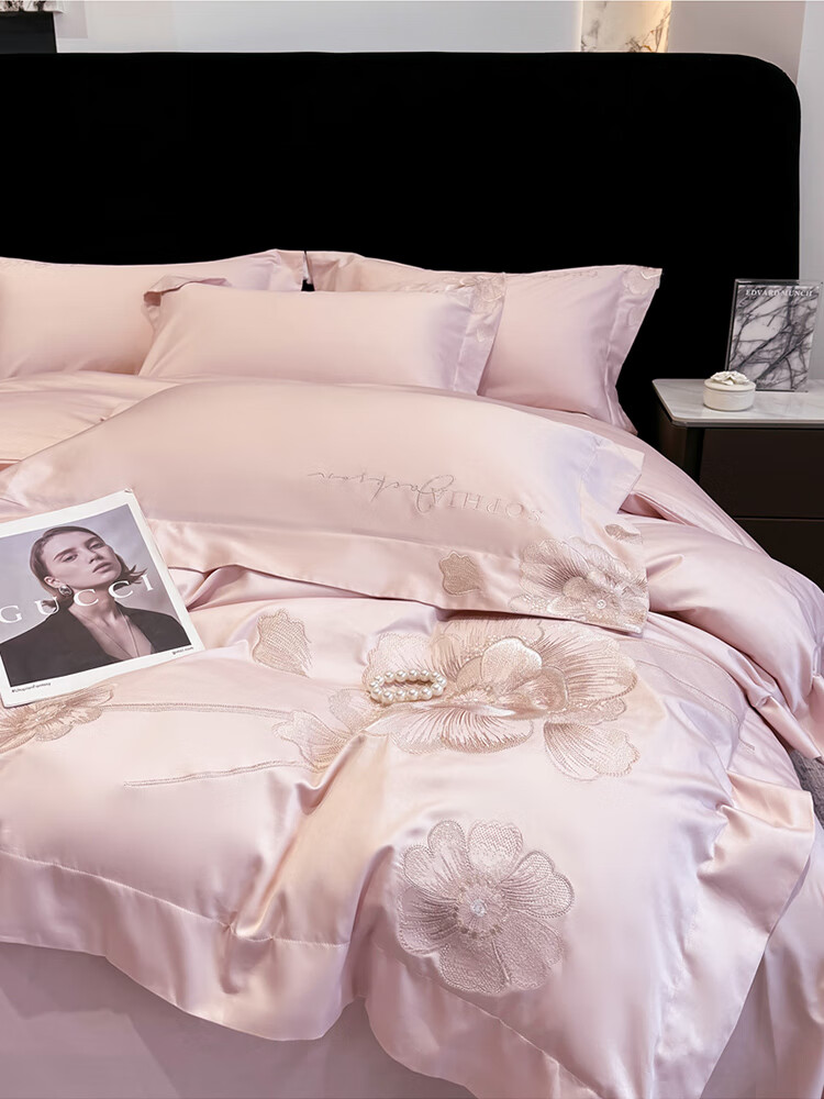 Mercury Series Light Luxury 200 Count Class A Long Staple Cotton Four-piece Set Pure Cotton Skin Friendly Sheets and Quilt Covers European Style Naked Sleeping Cotton Bedding Dell-Starry Blue 1.8 Meter Sheet Style Suitable for Quilt Core 200x230
