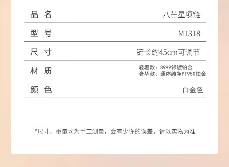 MZMZ Platinum Necklace PT950 Platinum Eight-Pointed Star for Women as a Valentine's Day Birthday Gift for Girlfriend and Wife Eight-Pointed Star Necklace - Light Luxury