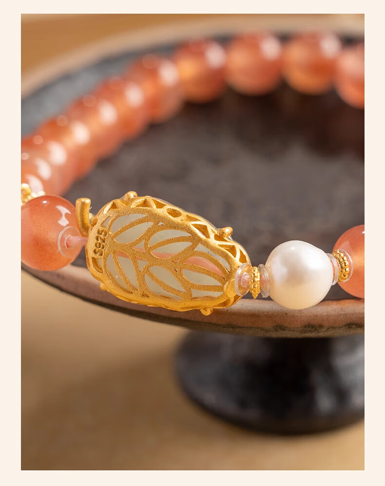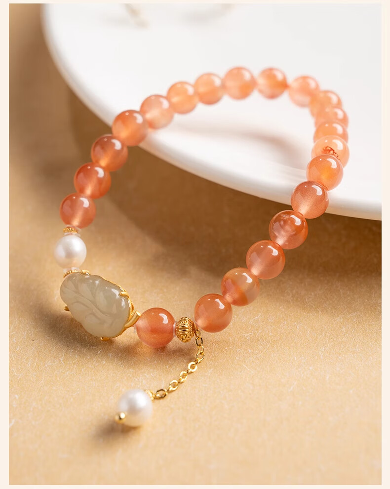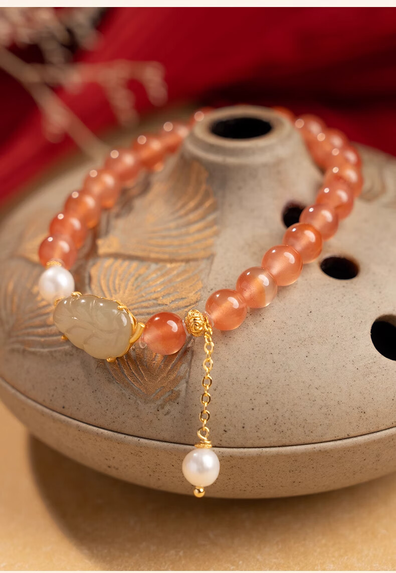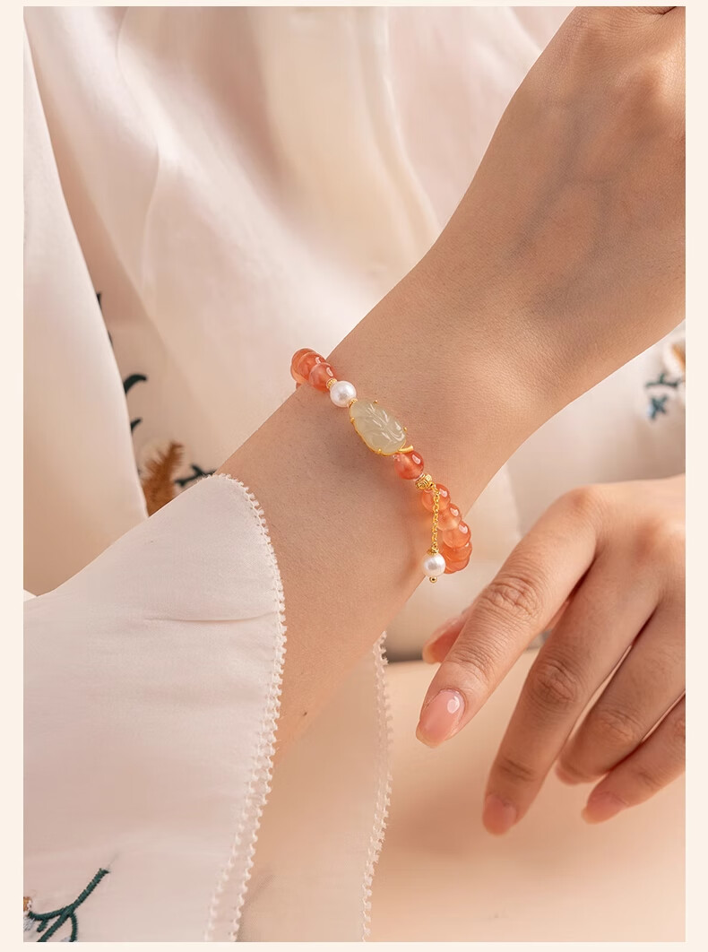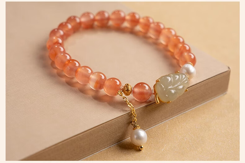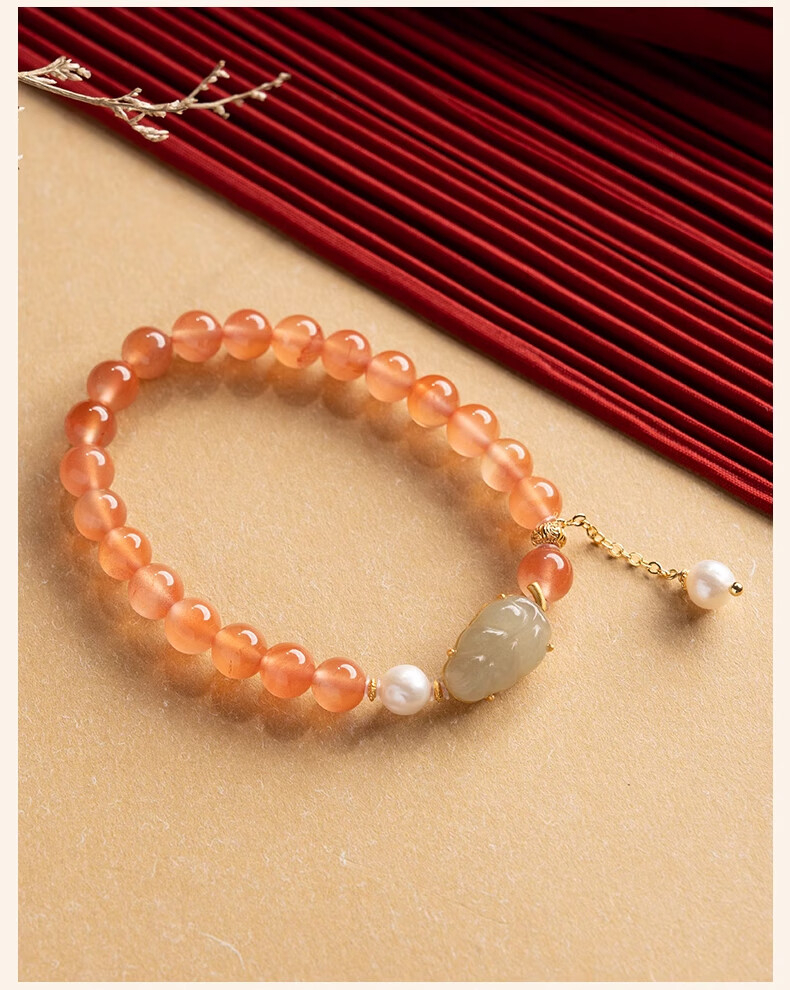 Bao Xin Fanrui BOSFRU Ice-Through Nanhong Bracelet Women's Natural Genuine Hetian Jade Leaf Beaded Bracelet for Mom to Play Light Luxury Jewelry Hotan Jade Leaf Ice-Thru Nanhong Bracelet Bracelet Length 14cm