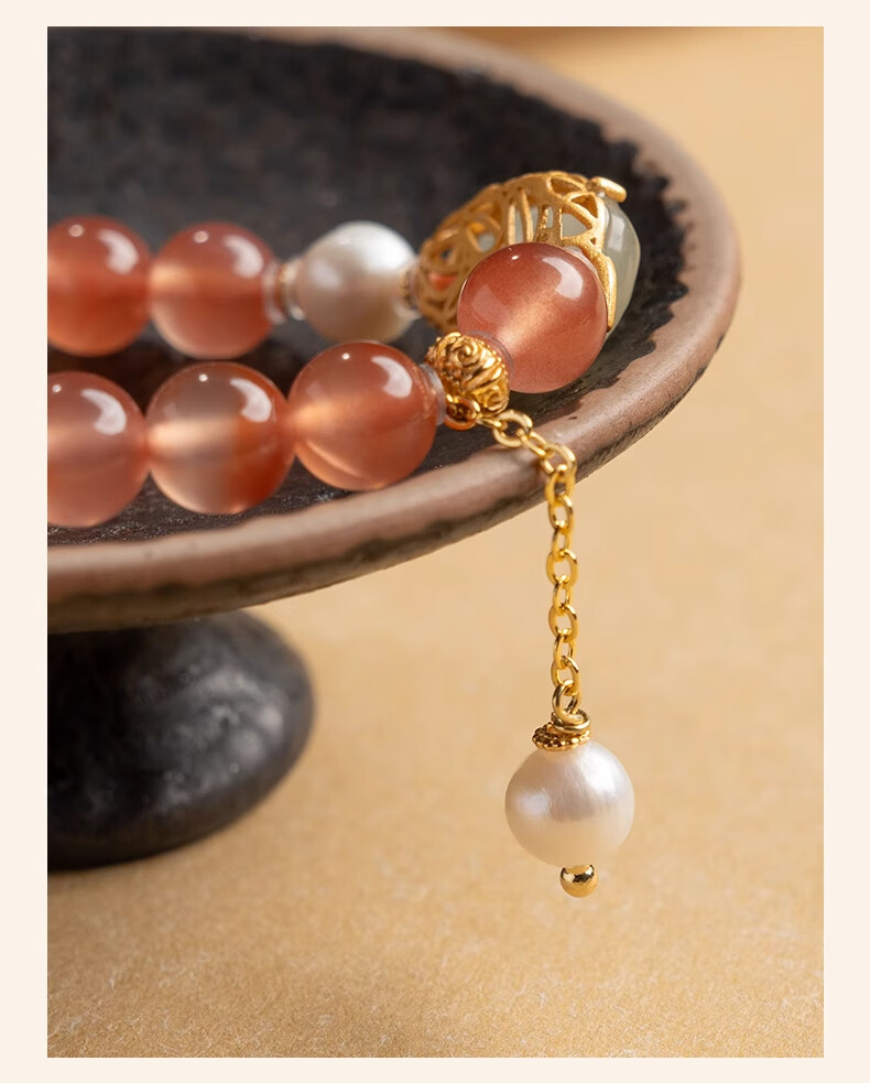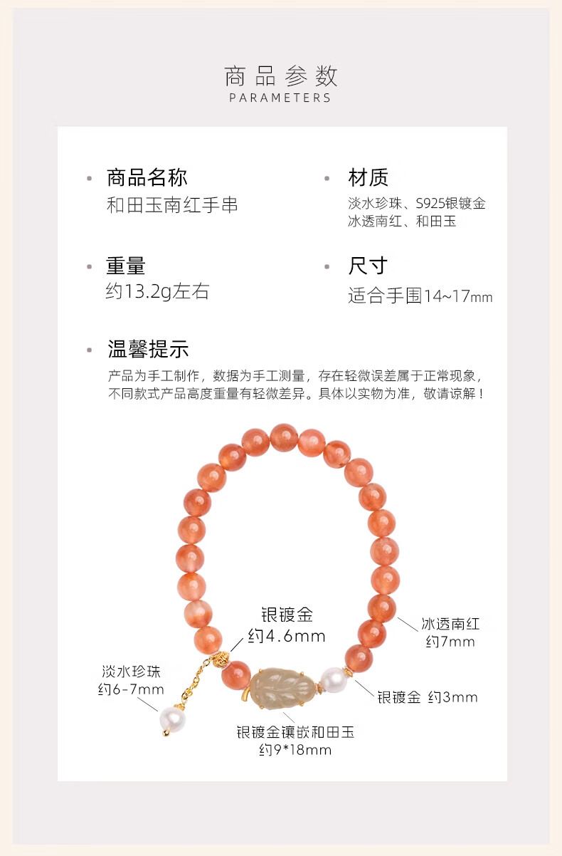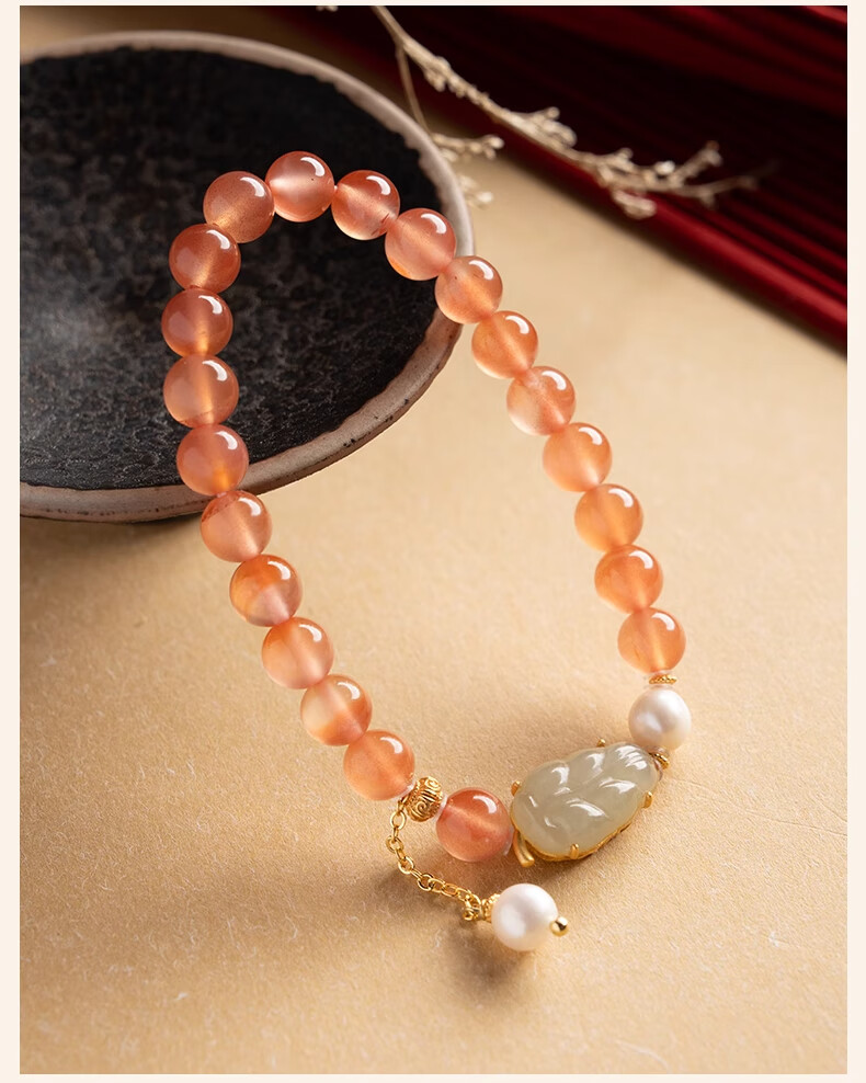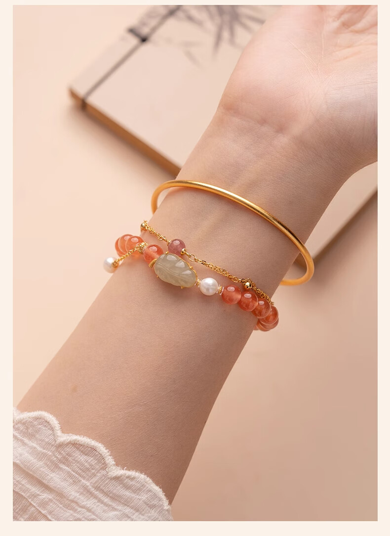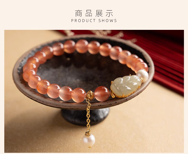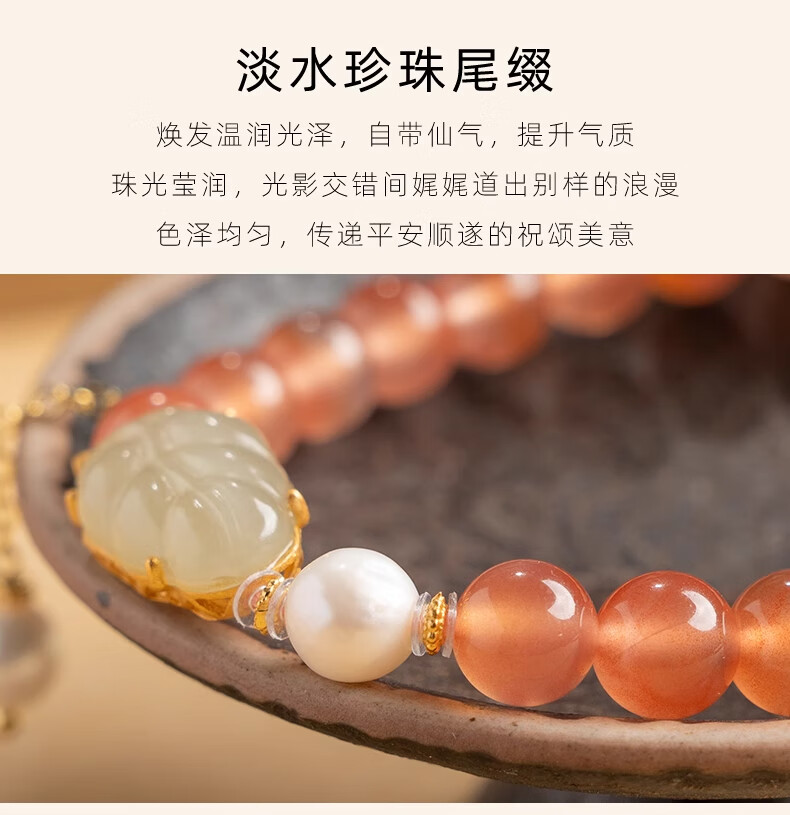 Bao Xin Fanrui BOSFRU Ice-Through Nanhong Bracelet Women's Natural Genuine Hetian Jade Leaf Beaded Bracelet for Mom to Play Light Luxury Jewelry Hotan Jade Leaf Ice-Thru Nanhong Bracelet Bracelet Length 14cm
