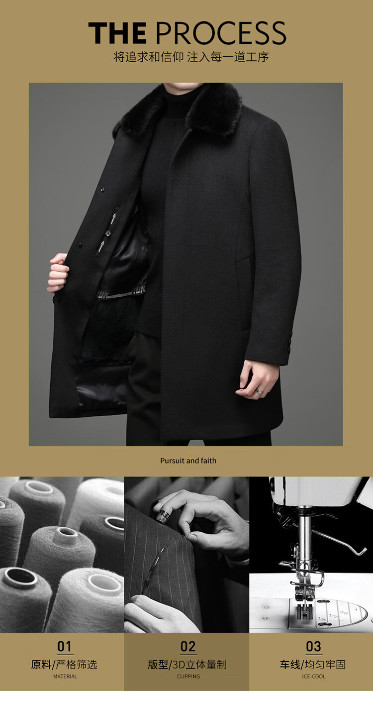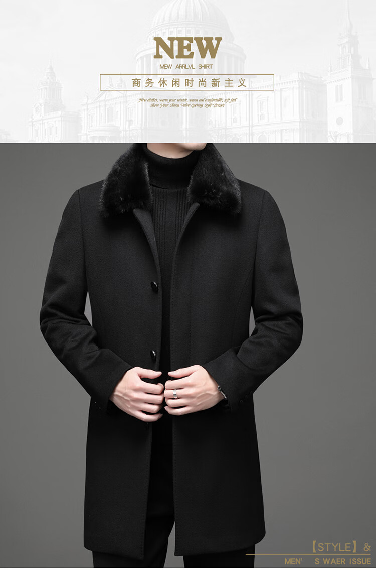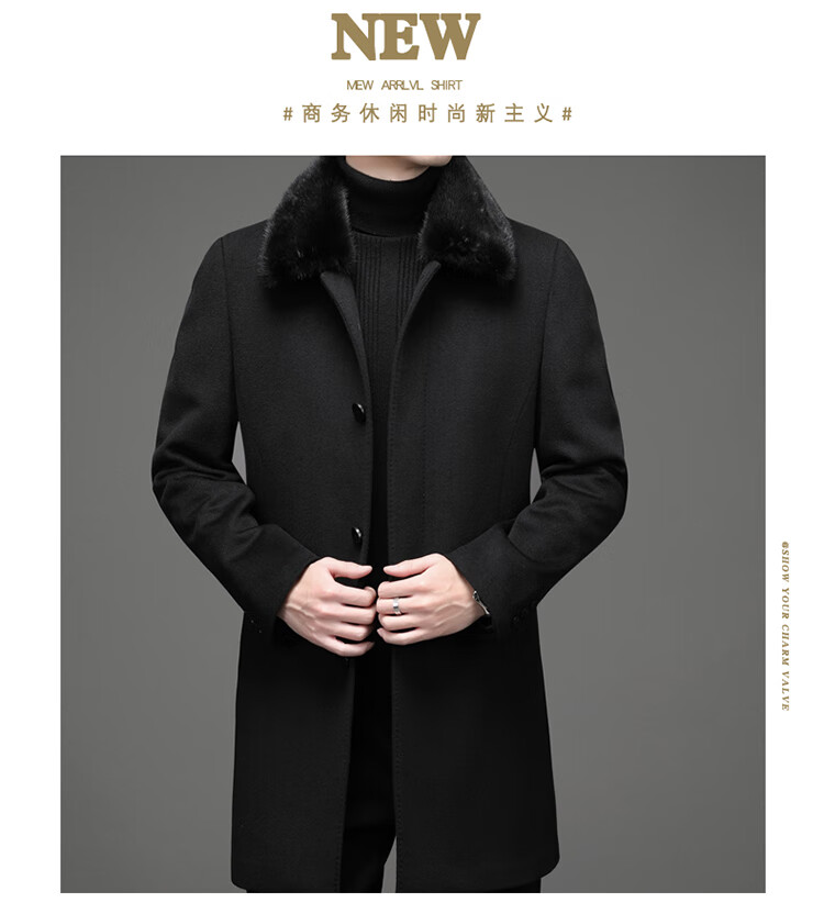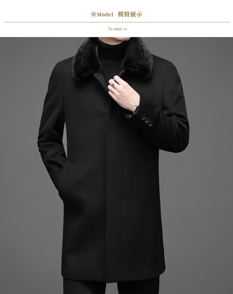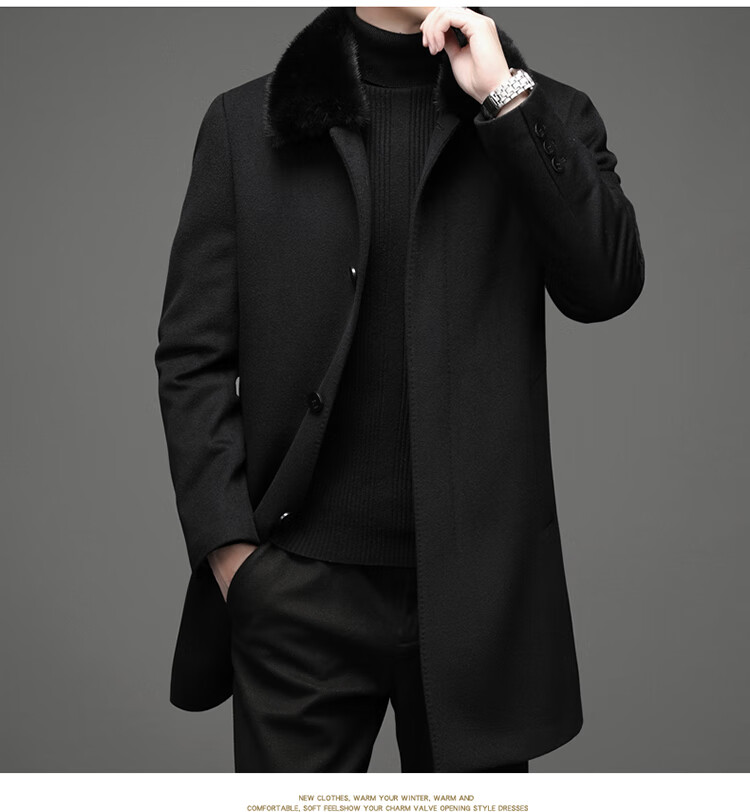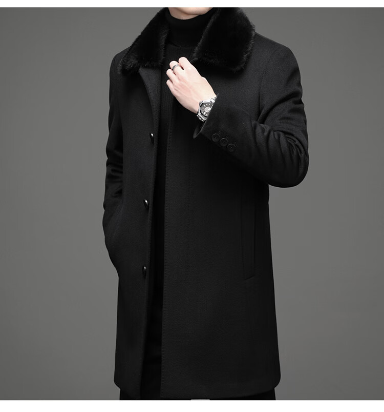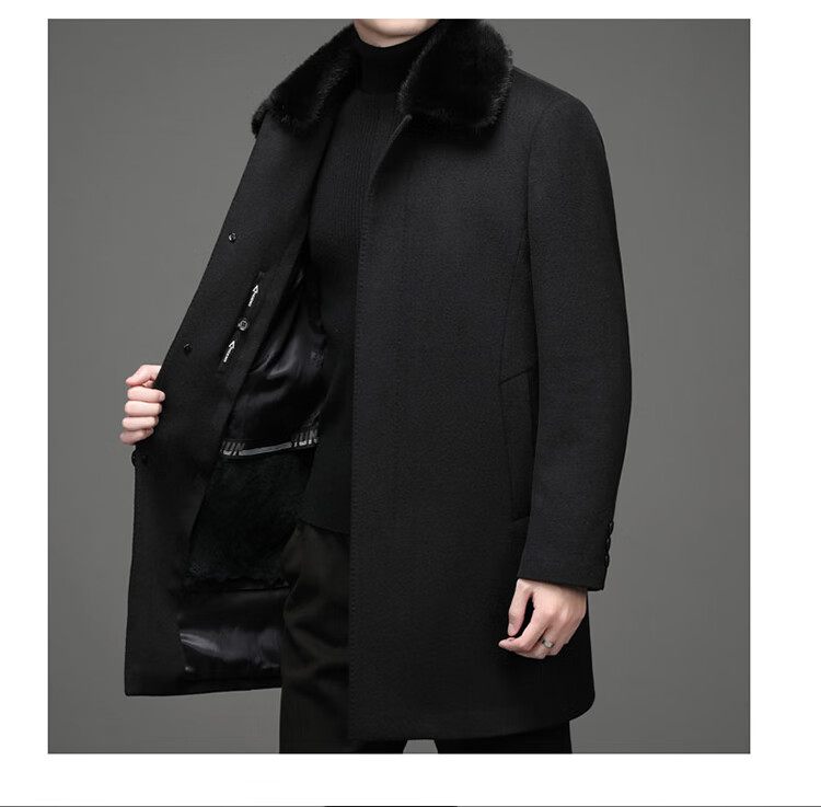 KBXNG Rimula high-end woolen coat winter men's wool coat mink fur collar nikon rabbit fur lining pie jacket black L 175 recommended 125Jin Jin equals 0.5kg -145Jin Jin equals 0.5kg