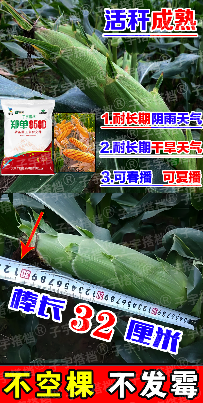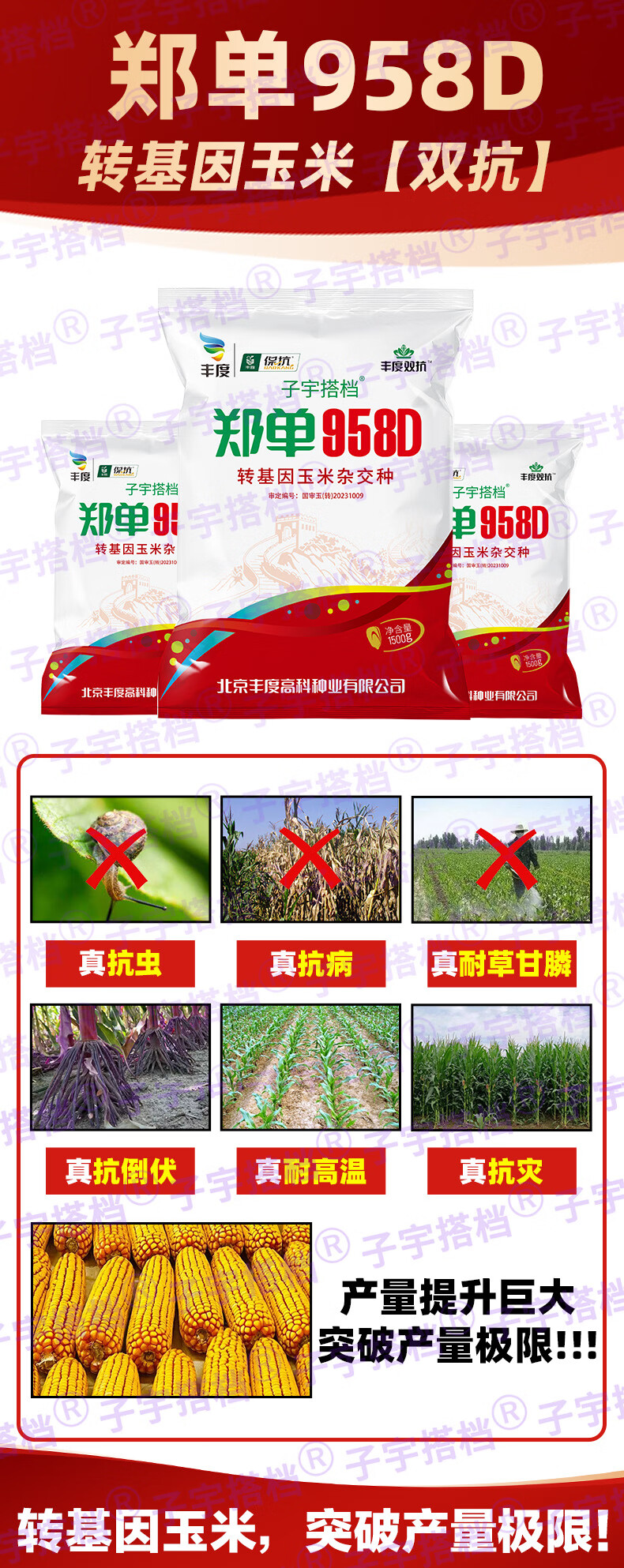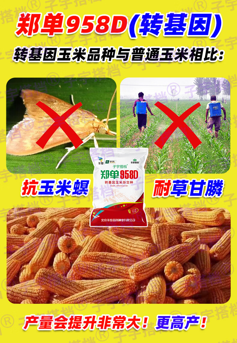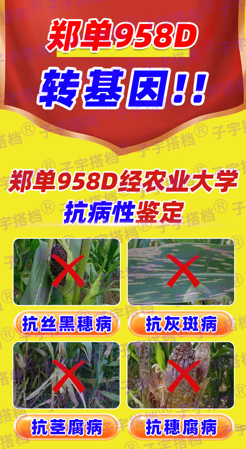 Strong man Zheng Dan 958D genetically modified corn seed collection, short stem, lodging resistance, disease resistance, hard horse tooth stick standard, genetically modified, about 3 Jin Jin is equal to 0.5 kilograms