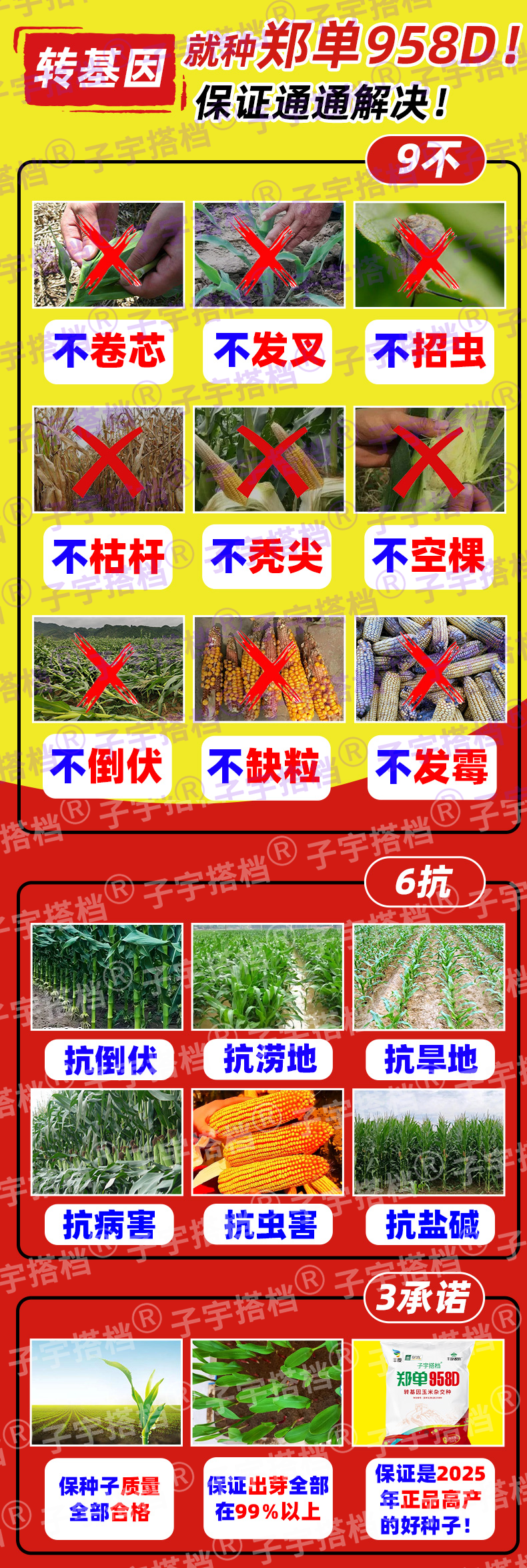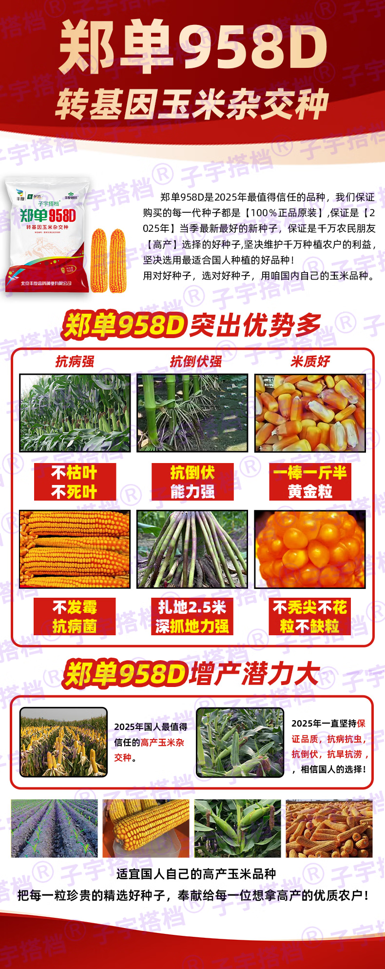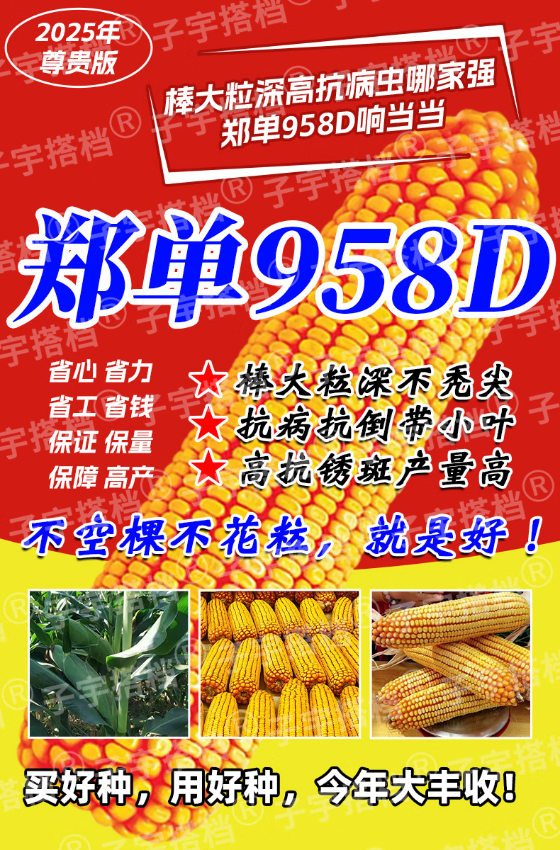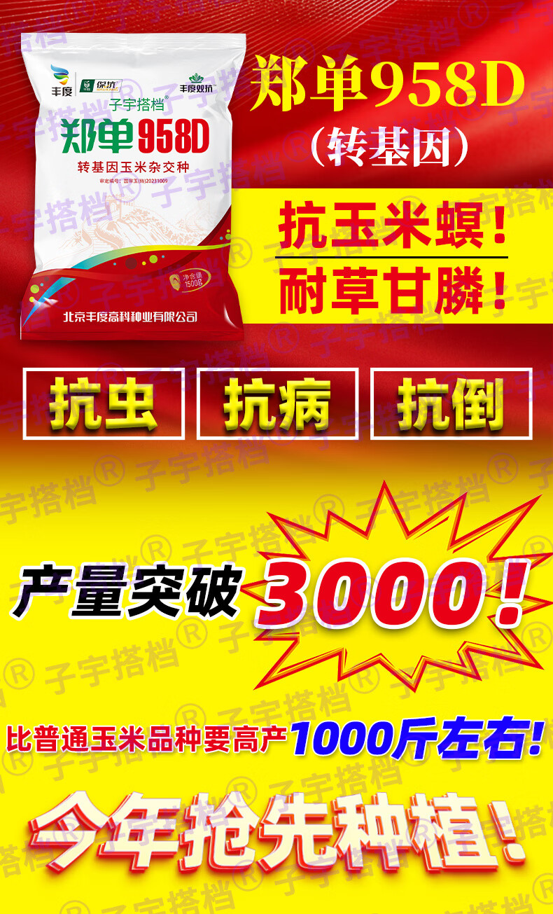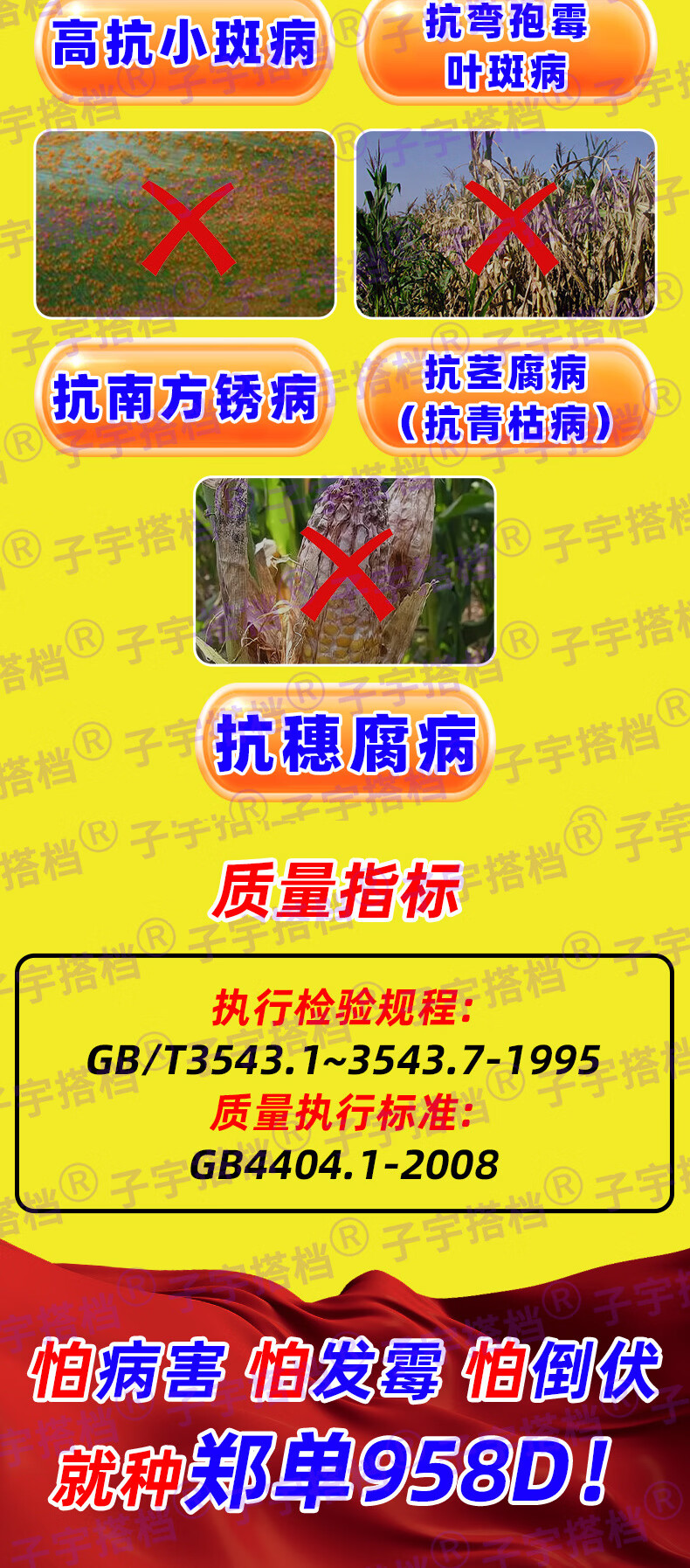 Strong man Zheng Dan 958D genetically modified corn seed collection, short stem, lodging resistance, disease resistance, hard horse tooth stick standard, genetically modified, about 3 Jin Jin is equal to 0.5 kilograms