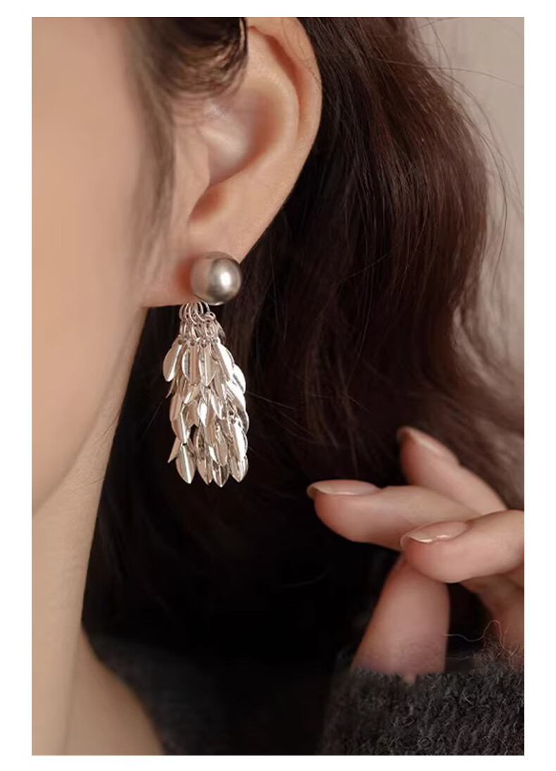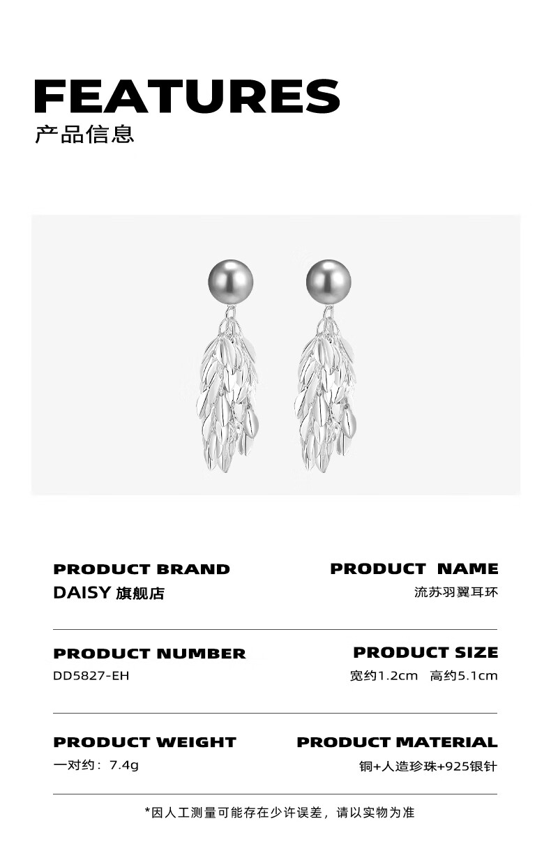 DAISY DREAM 925 Silver Needle Long Feather Pearl Earrings for Women 2025 New Hot Style Earrings Light Luxurious High-end Ear Jewelry 925 Silver Needle Tassel Feather Pearl Earrings