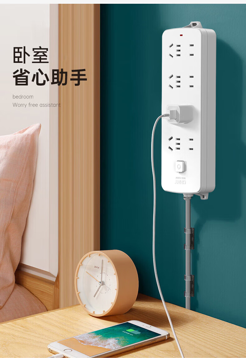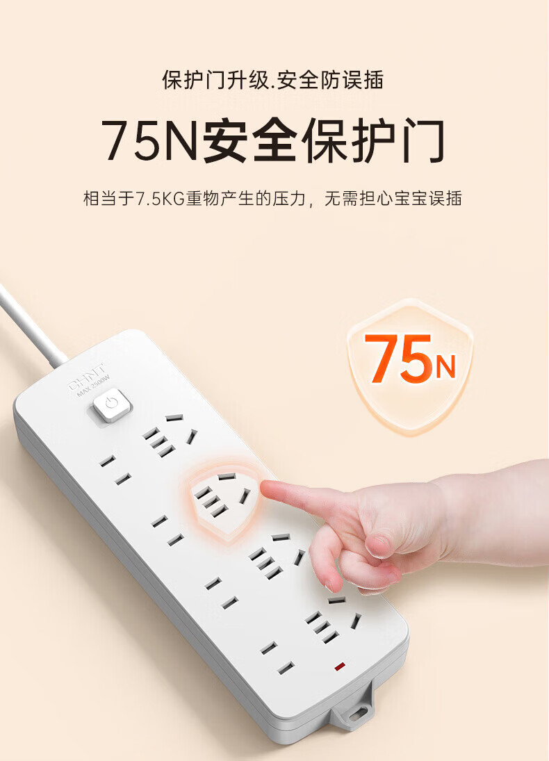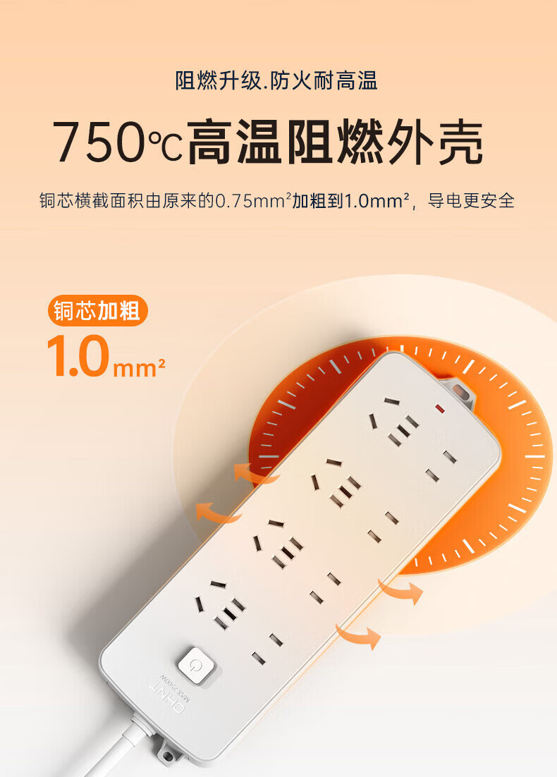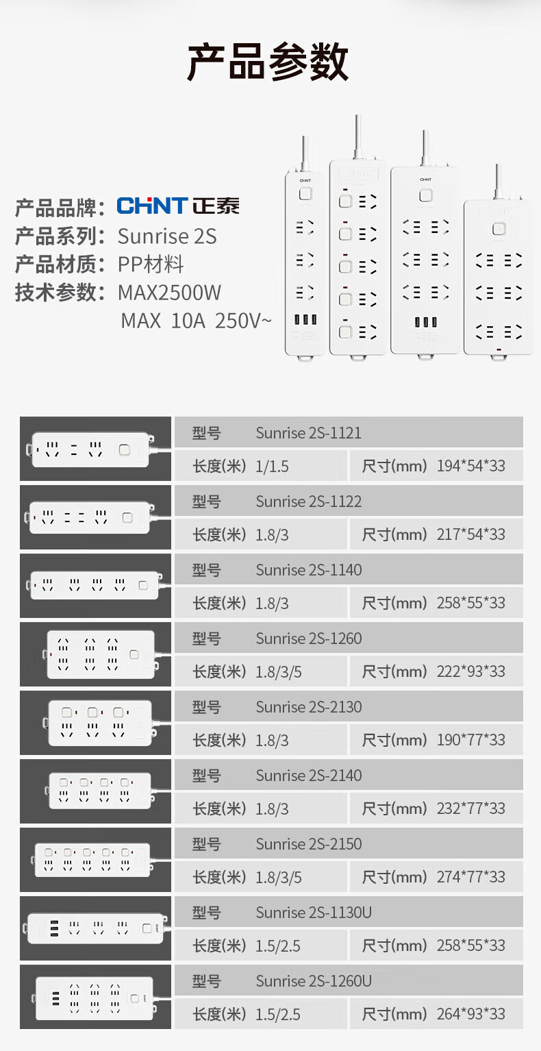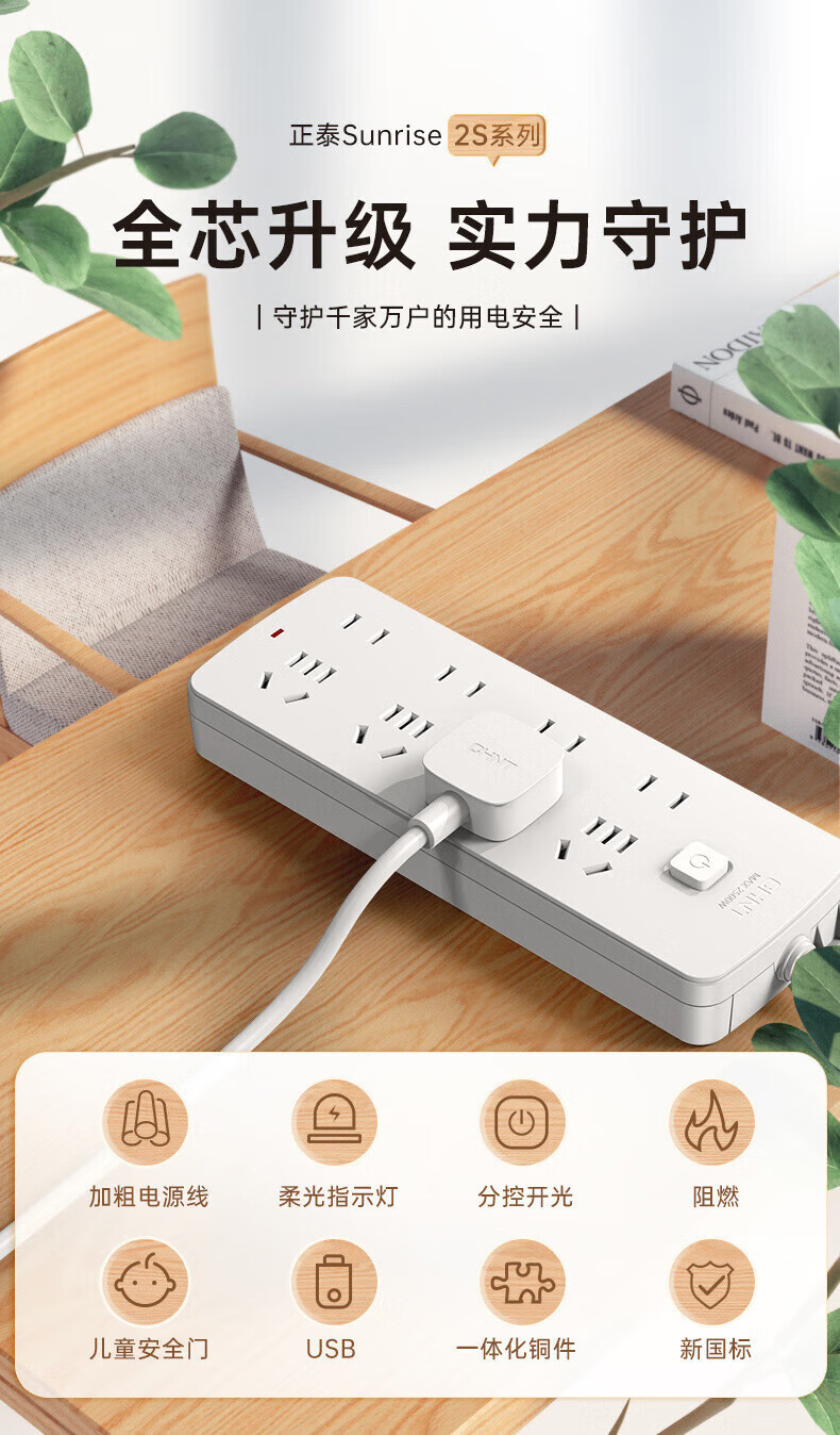 Chint (CHNT) new national standard socket with switch, power strip, power strip, power strip, household socket panel, student dormitory power strip, multi-hole power strip, Sunrise-2T-0130 wireless power strip