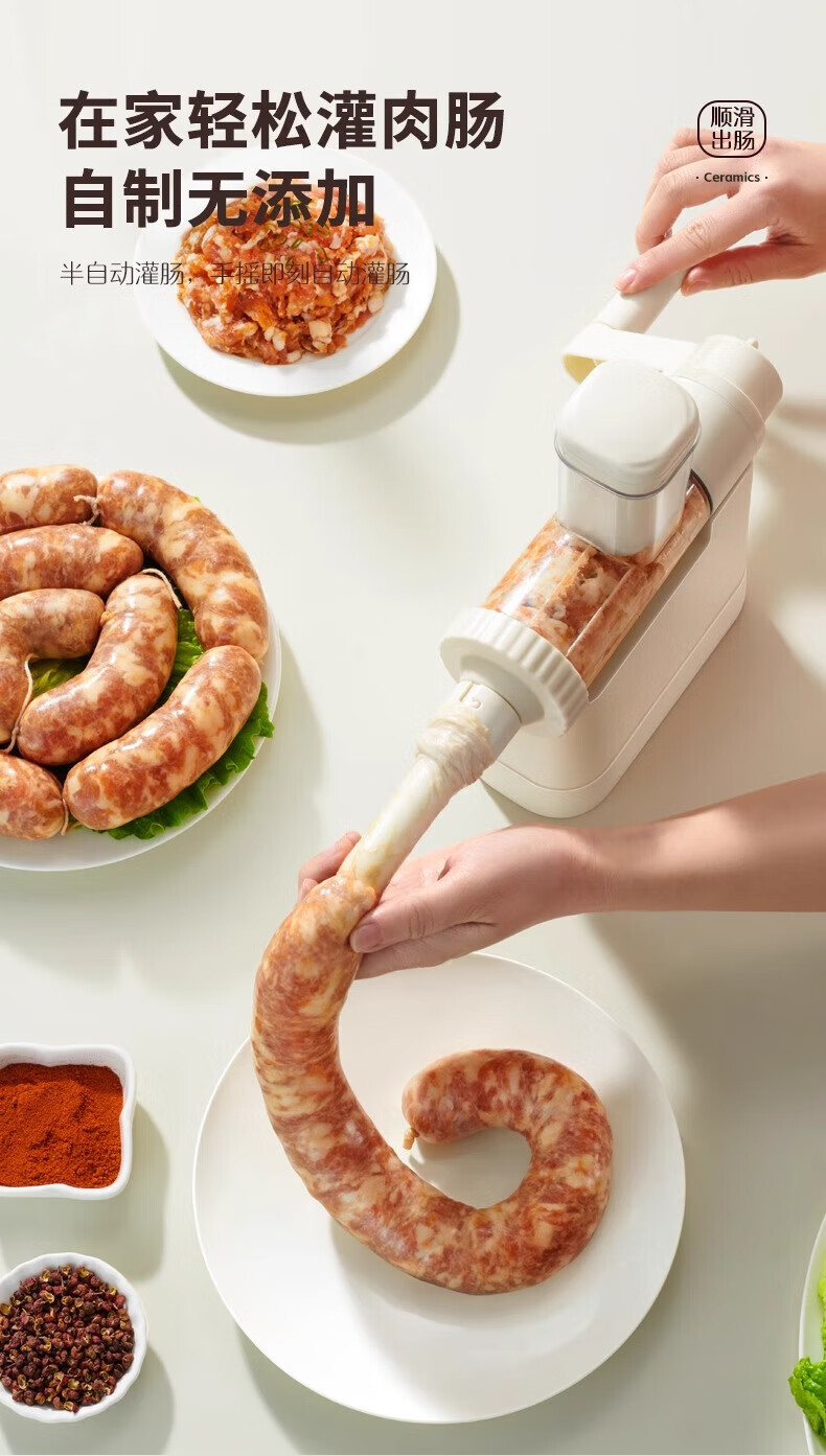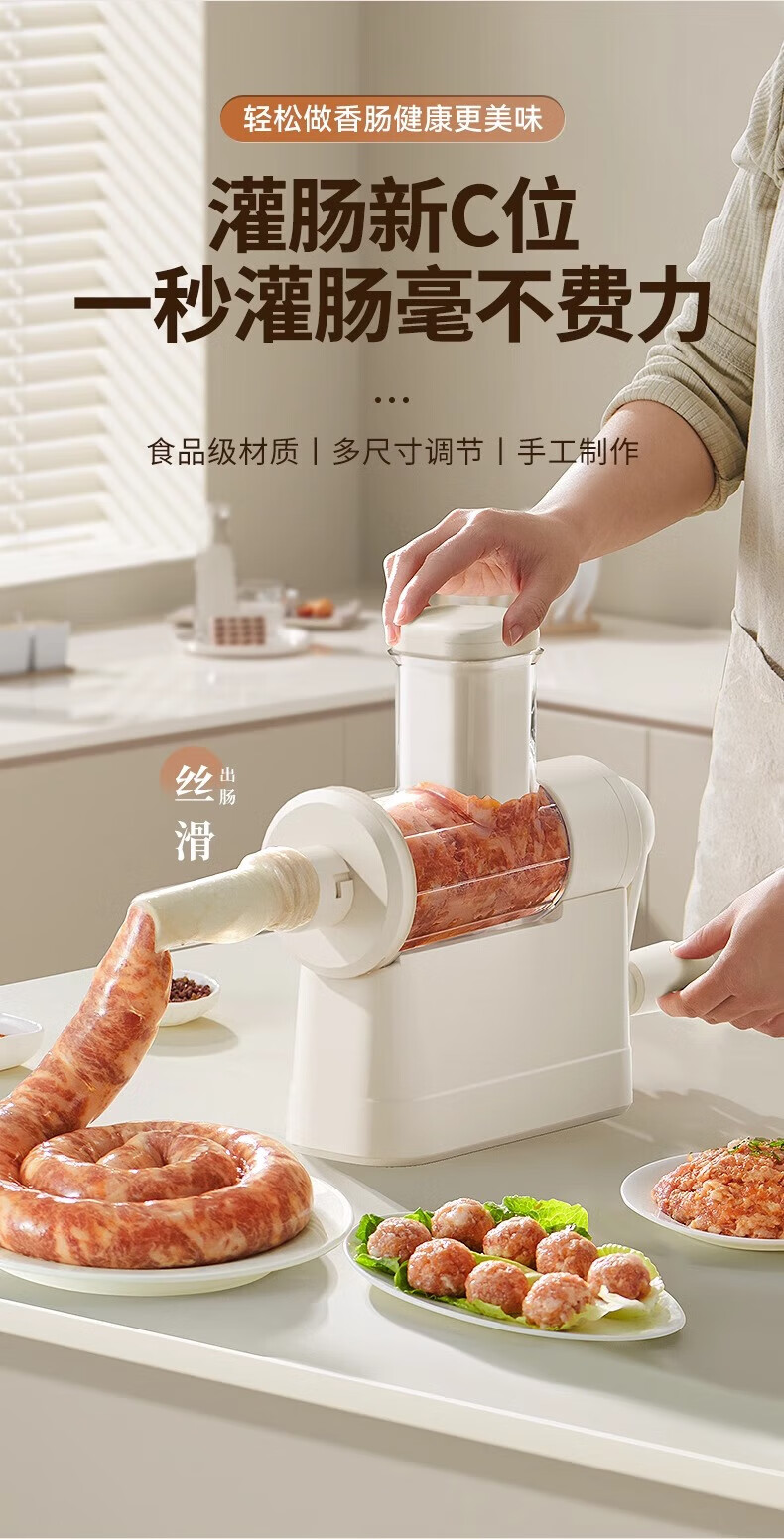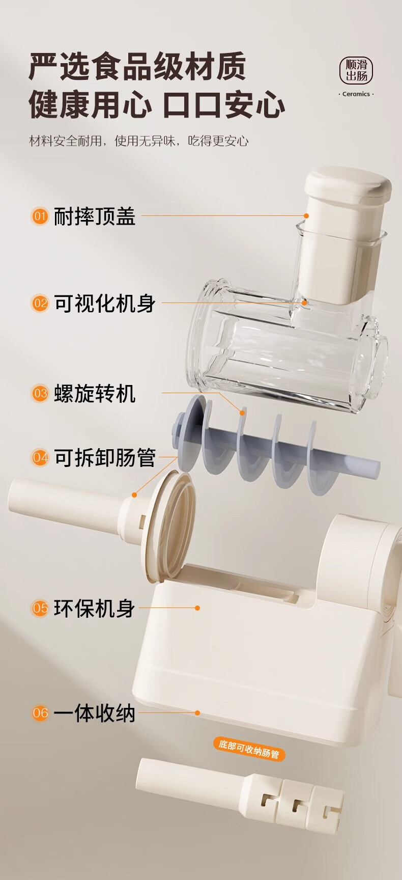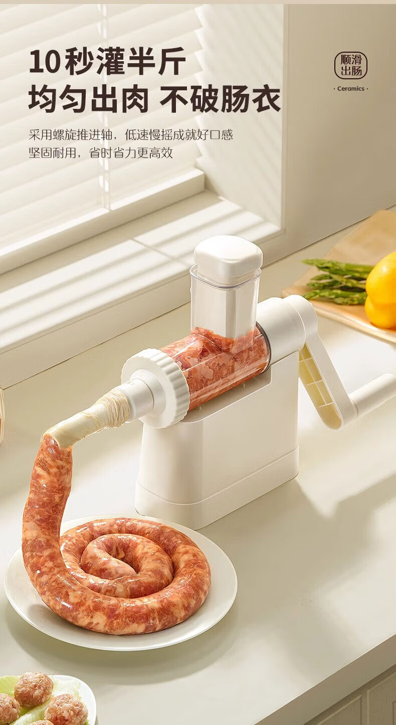 Jingyan Enema Machine Home Manual Sausage Filling Artifact Sausage Machine Manual Casing Enema Machine Enema Tool Mold White Enema Tube + Casing + Cotton Thread + Gloves Upgraded Rotary | Convenient and Labor-saving