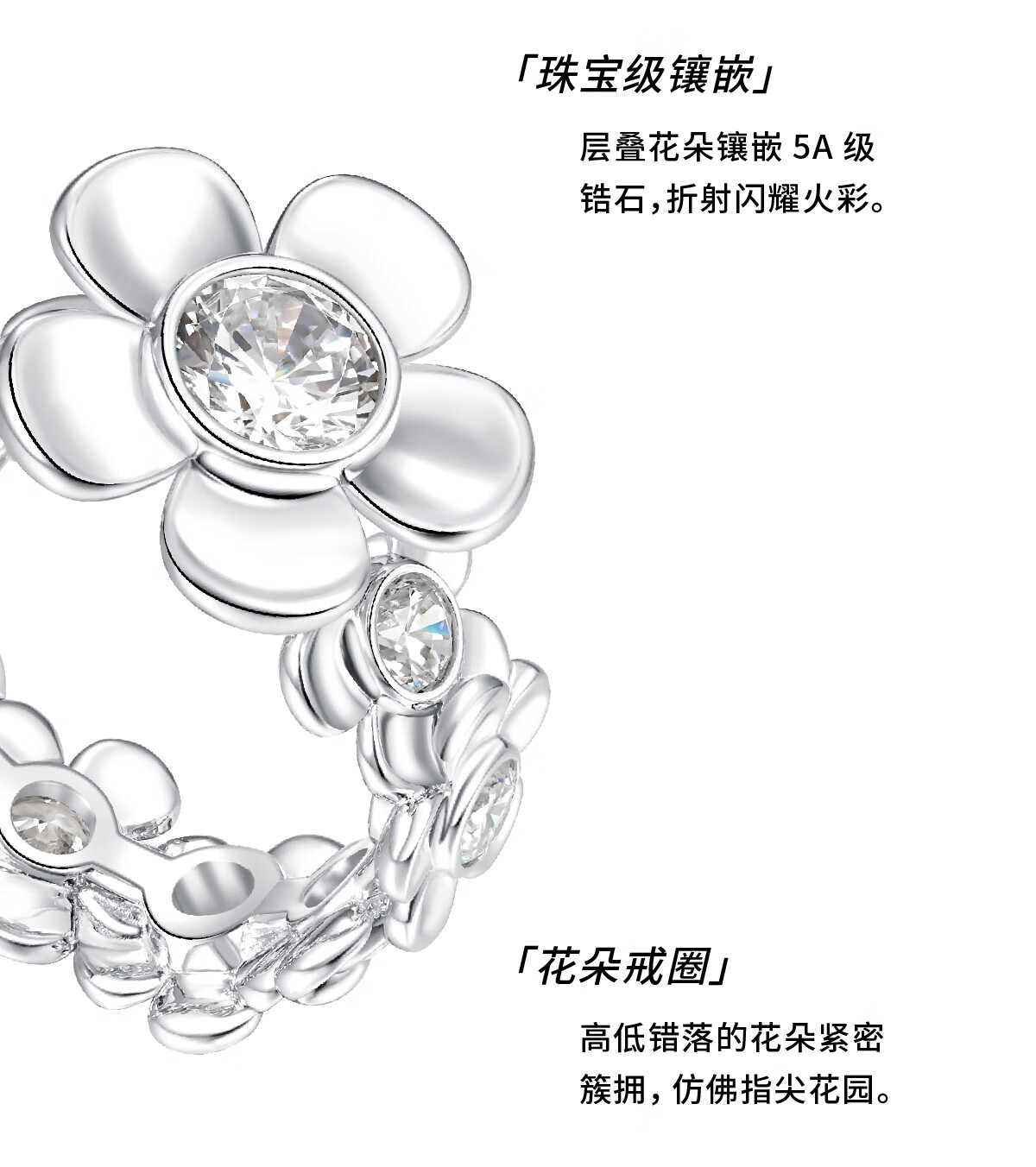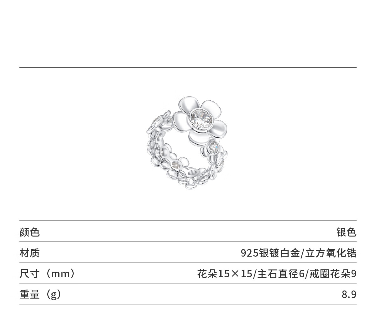 Unique rotating garden ring with flower ring, designer style, new product, designer style birthday gift for girlfriend, silver 11#
