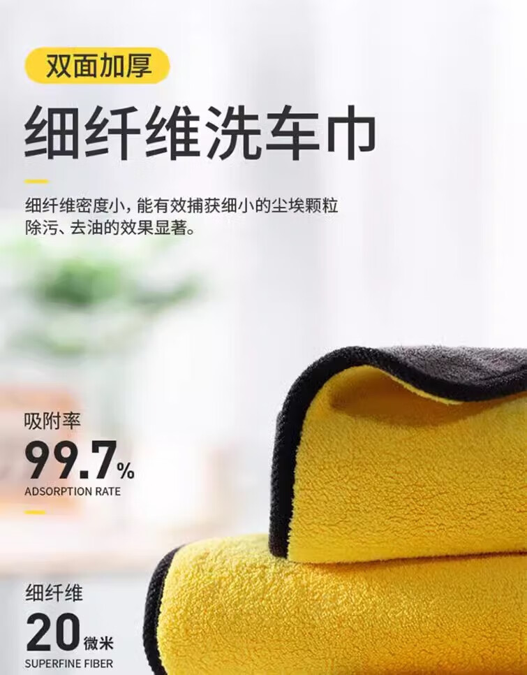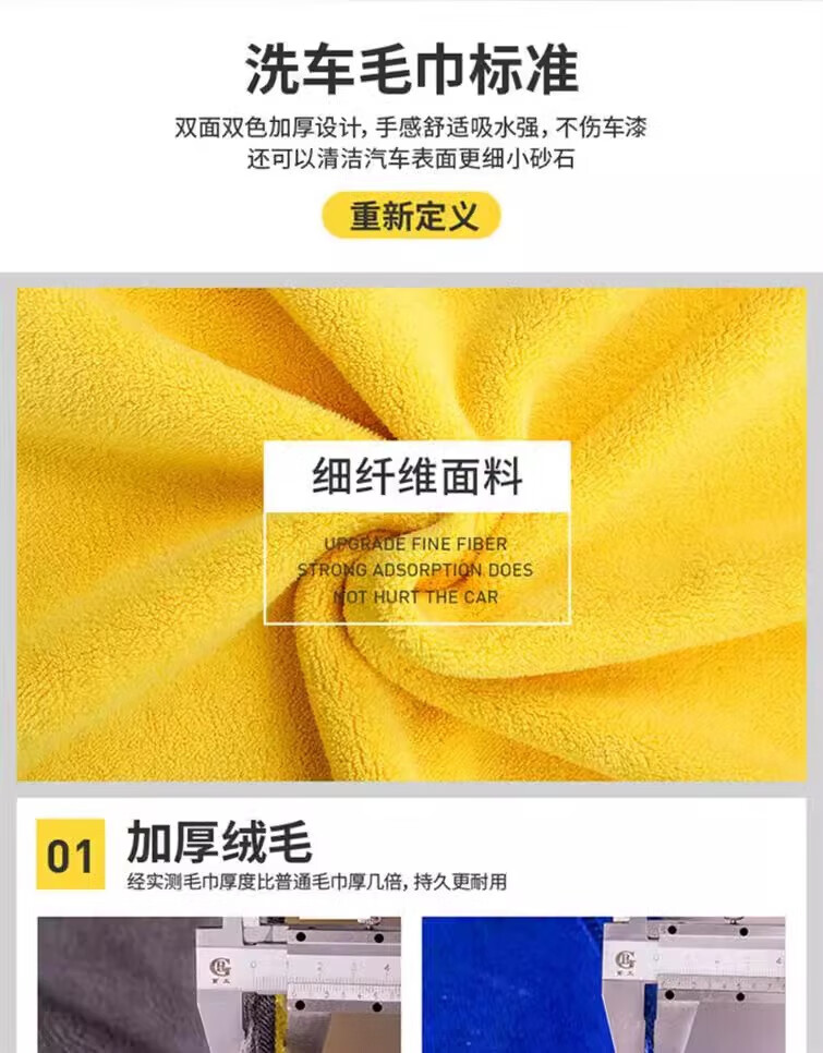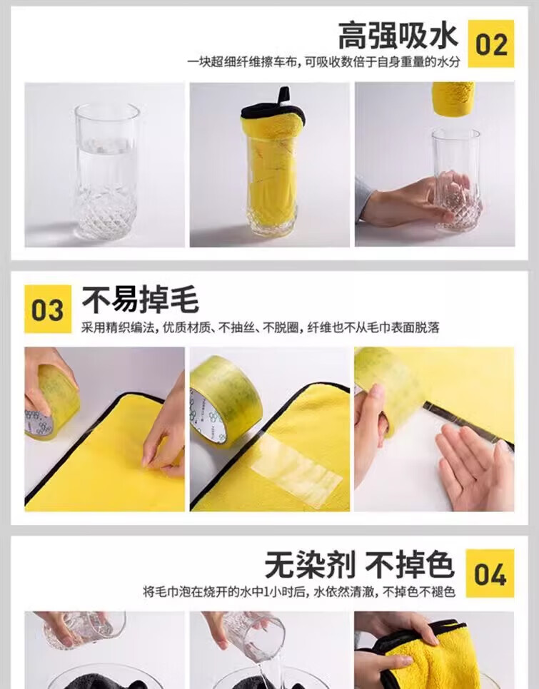 Motorcycle, car and car wash towels, special household products for bathing, absorbent and thickened daily rags, 30*30cm, 3 pieces, yellow and gray, enlarged and thickened