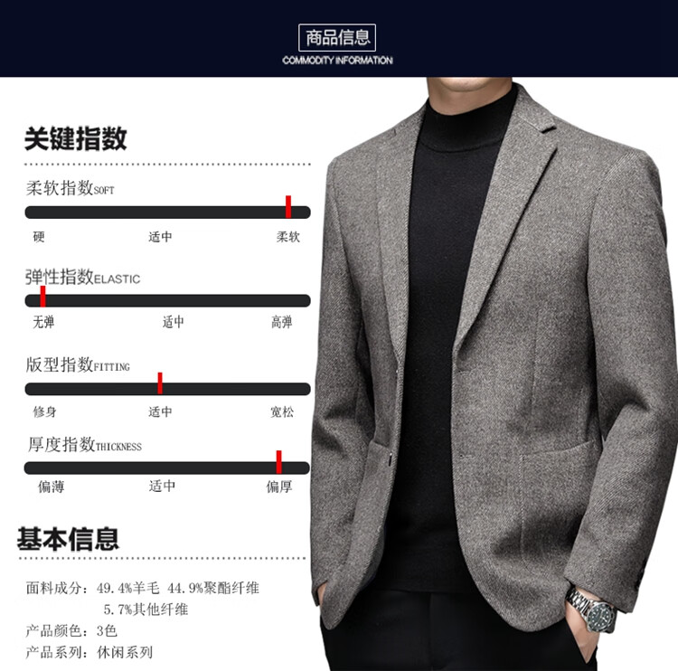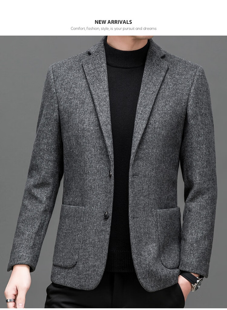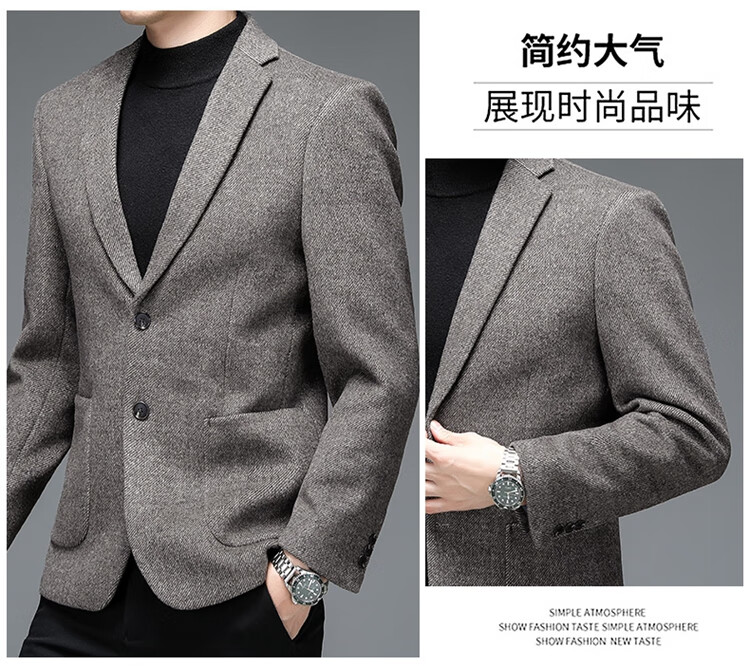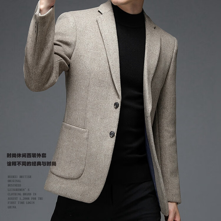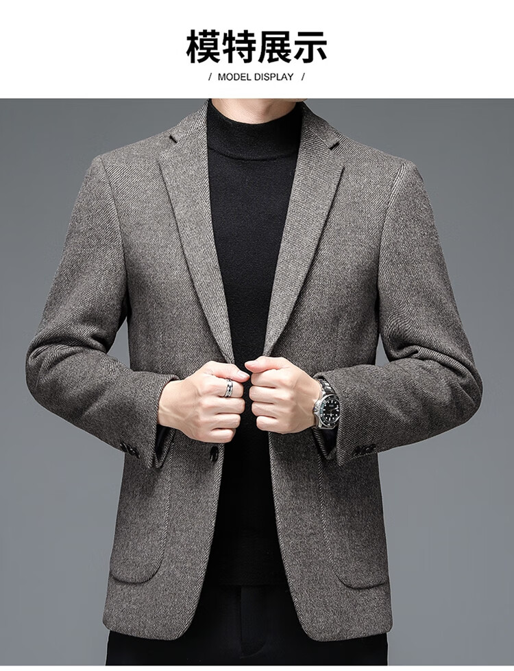 Weikeduo easy care and no pilling double-sided woolen coat men's autumn and winter business casual suit collar thickened coat short gray brown thickened wool warmer L weight 128-145Jin Jin equals 0.5 kg