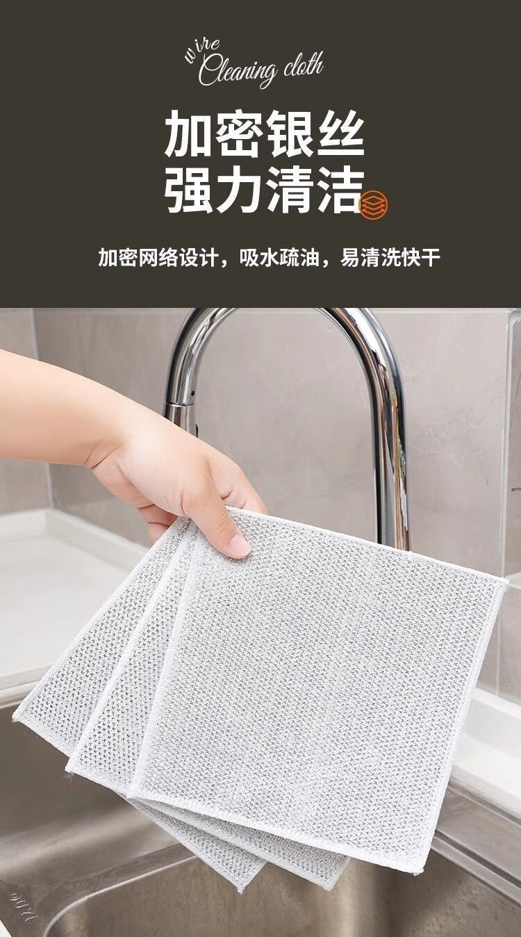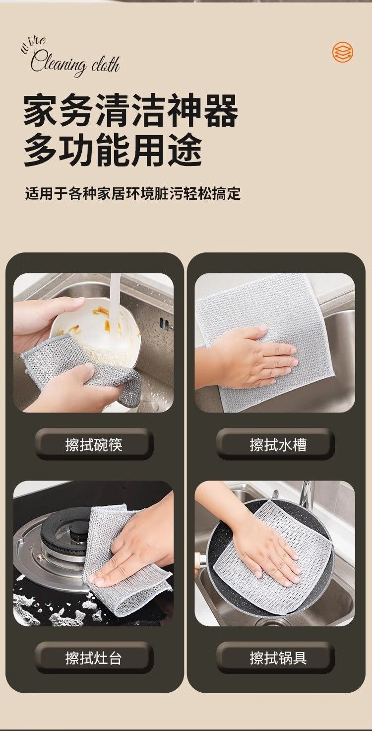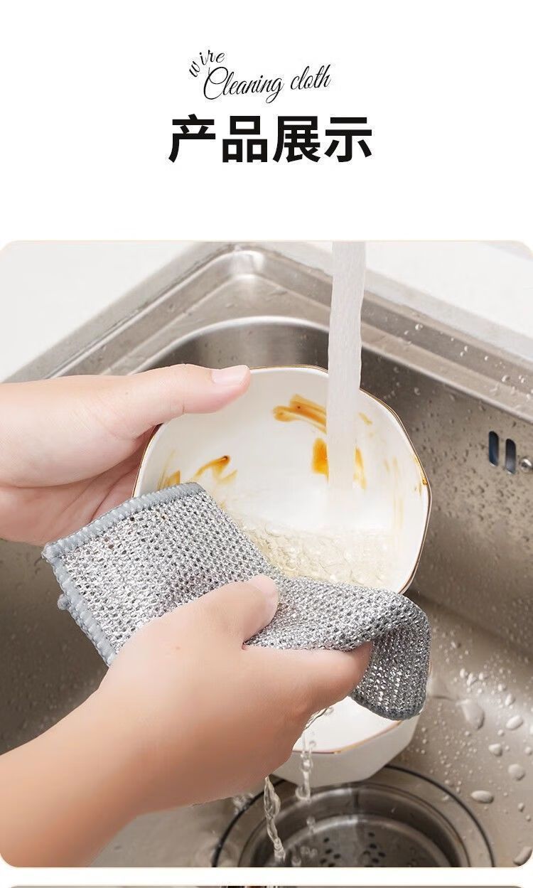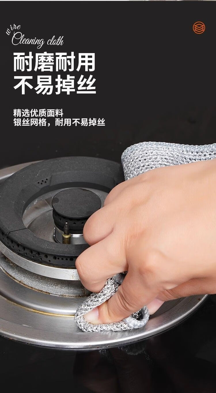 Steel ball dishcloth, non-stick oil kitchen stove cleaning cloth, steel ball dishwashing cloth, silver wire rag, 10 pieces