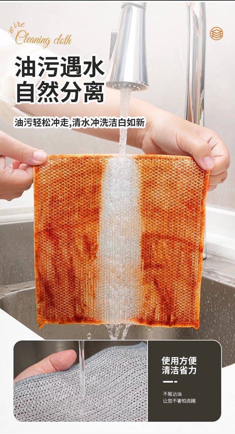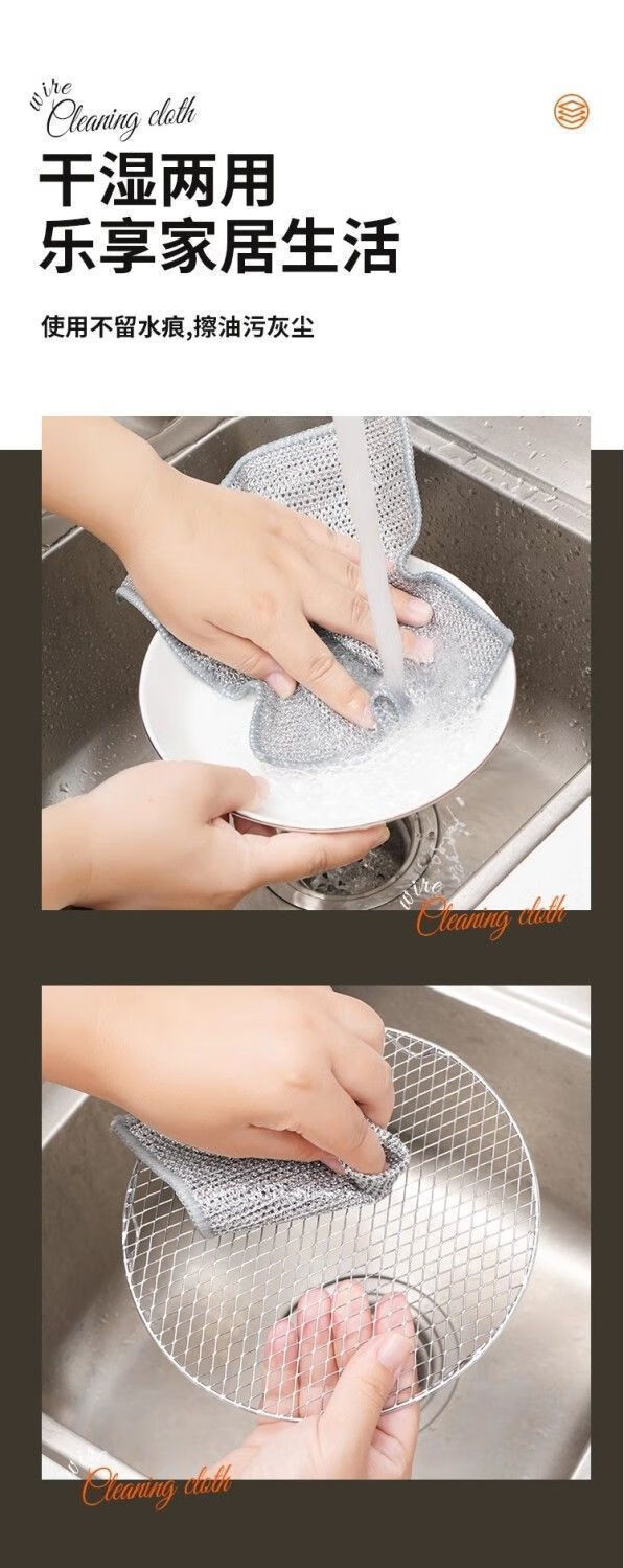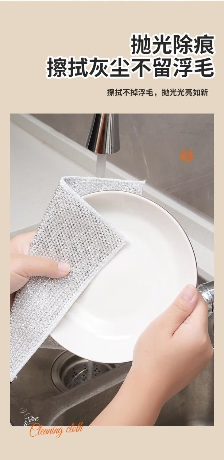 Steel ball dishcloth, non-stick oil kitchen stove cleaning cloth, steel ball dishwashing cloth, silver wire rag, 10 pieces