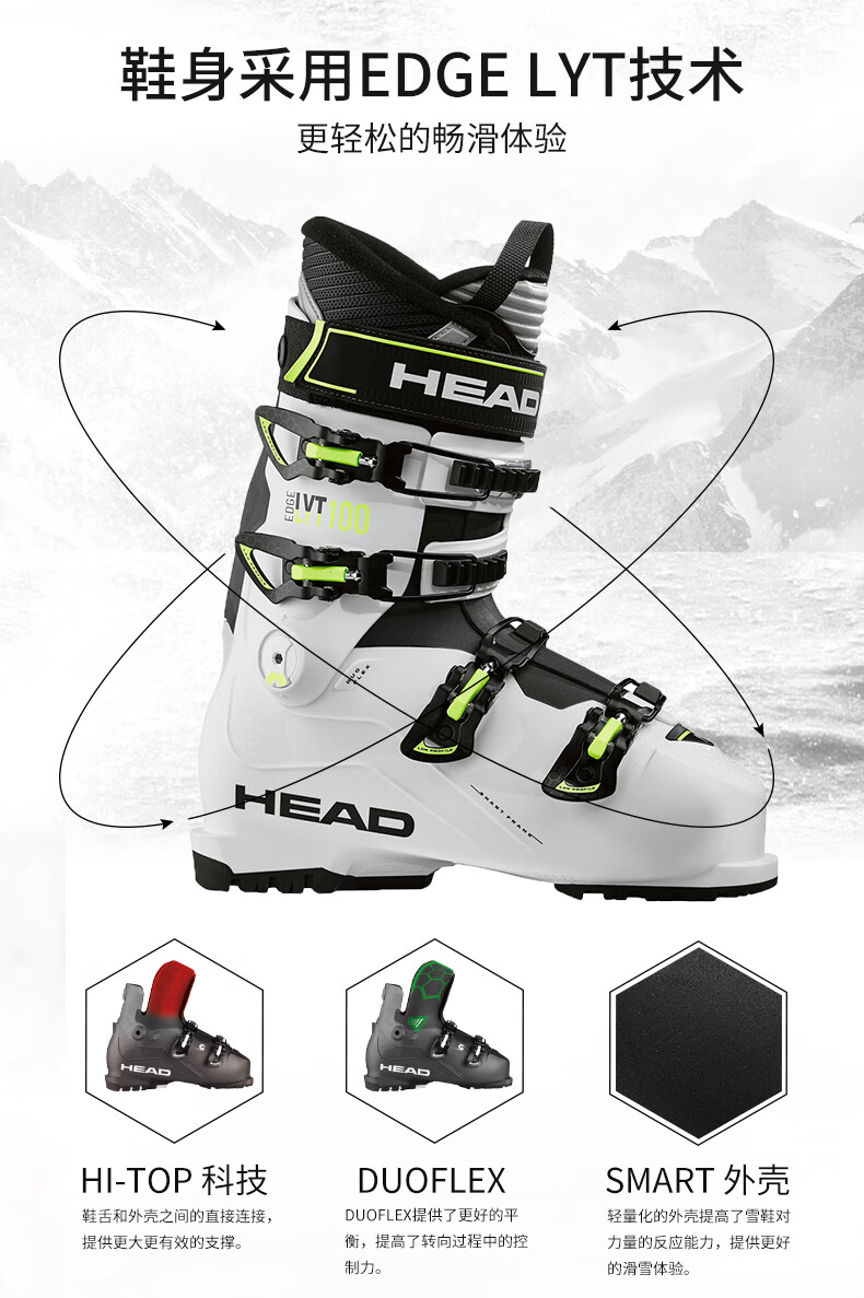 海德(HEAD)24款双板滑雪鞋男宽版鞋楦全地域雪鞋舒适型EDGE LYT 100/90/80 黑/黄/280-硬度80 28.5 /43.5