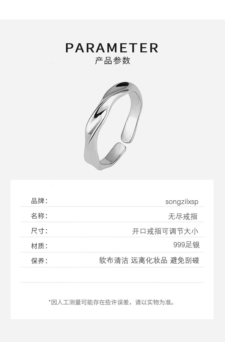 ROSENA SAMMI self-discipline S999 pure silver Möbius ring sterling silver ring boys trendy 2024 new men's single ring 999 pure silver/endless ring men's style