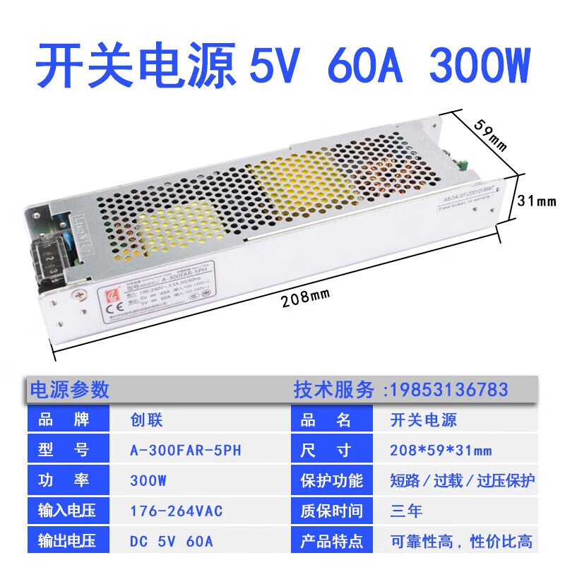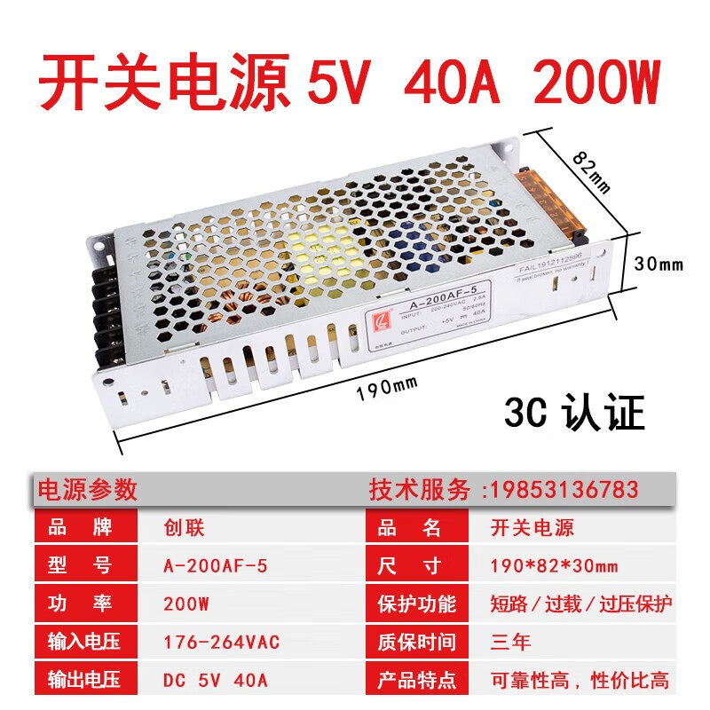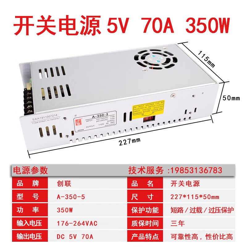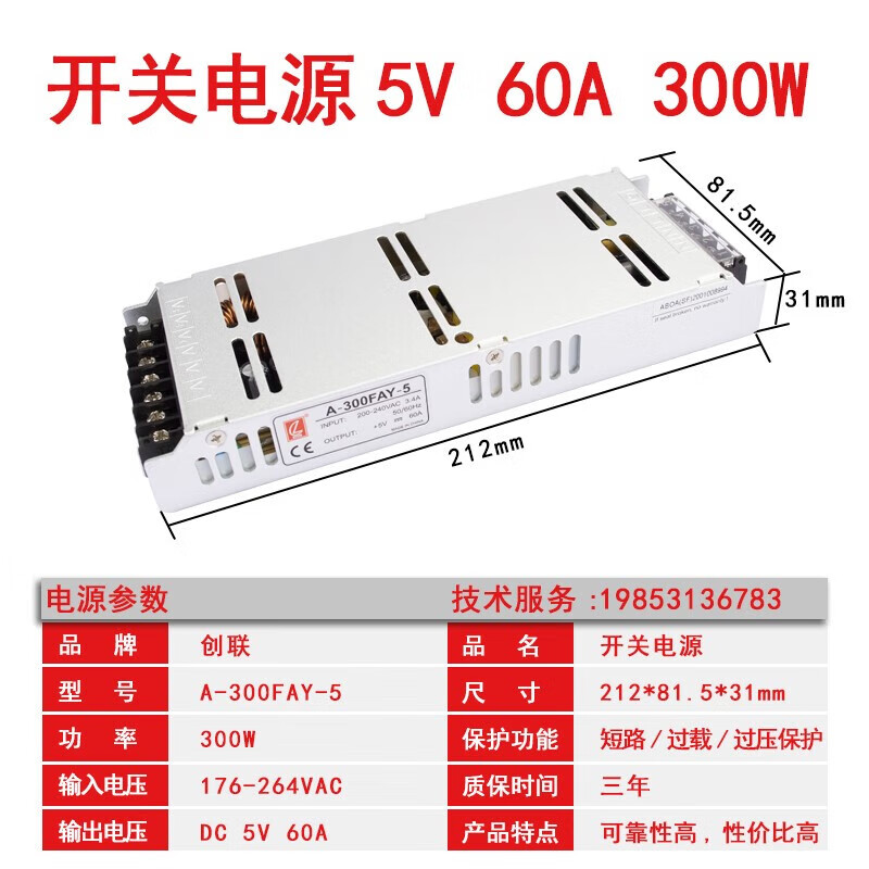 Chuanglian LED display switching power supply Chuanglian 5v40a/60A 200w 300W single and double color full color transformer A-350-5/5V60A350W thick section