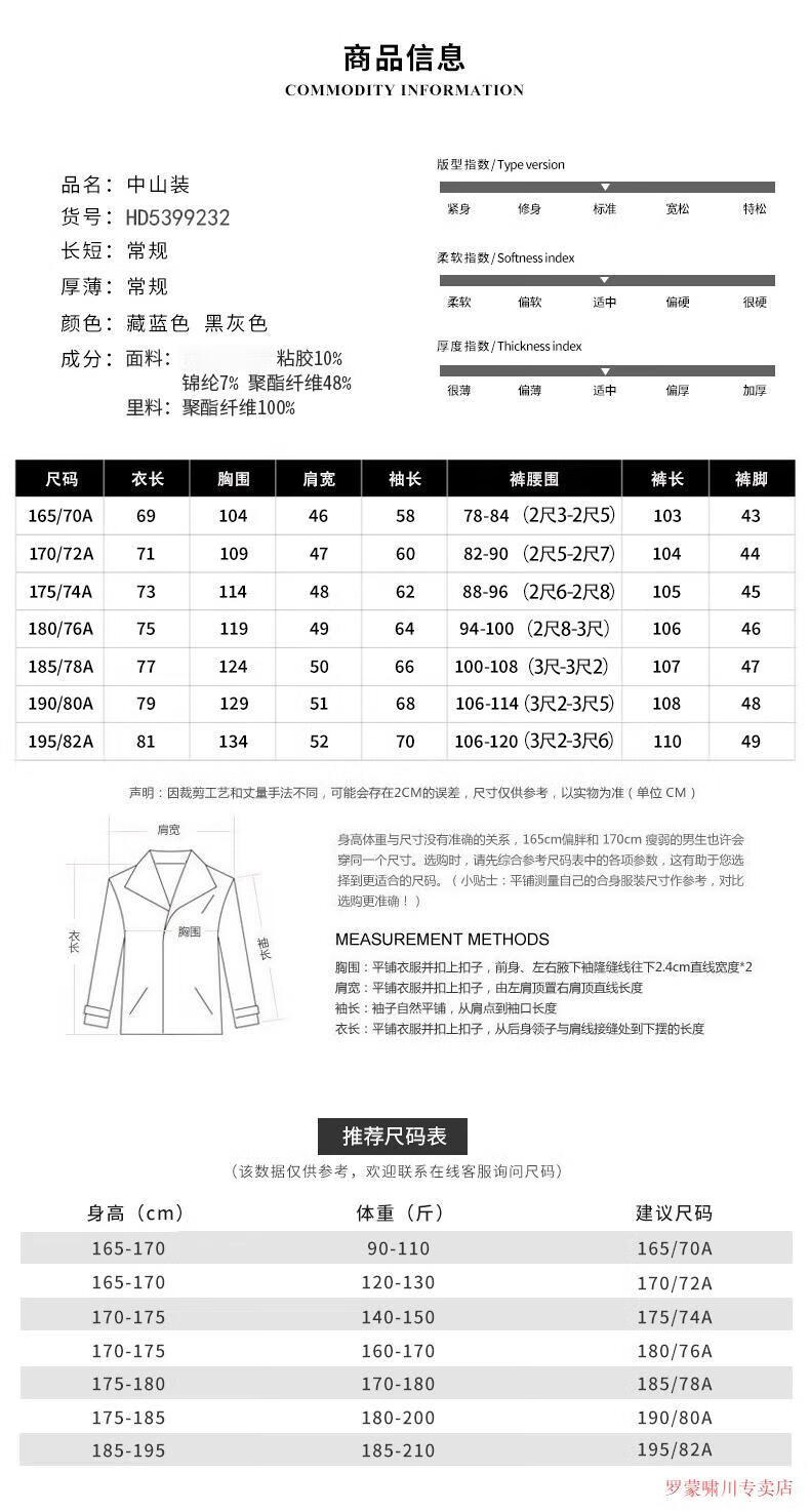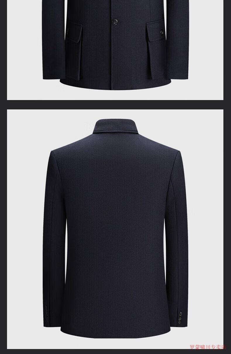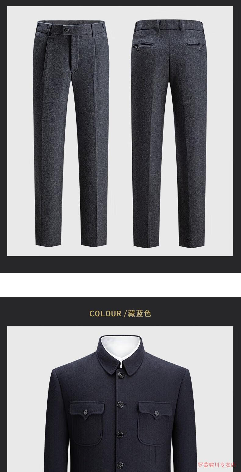 Luo Meng autumn and winter woolen tunic suit for middle-aged and elderly men, loose tunic suit, Chinese style Chinese dress, navy blue XL 180/76a
