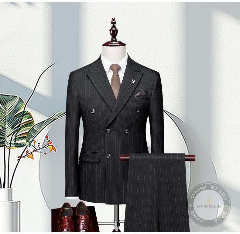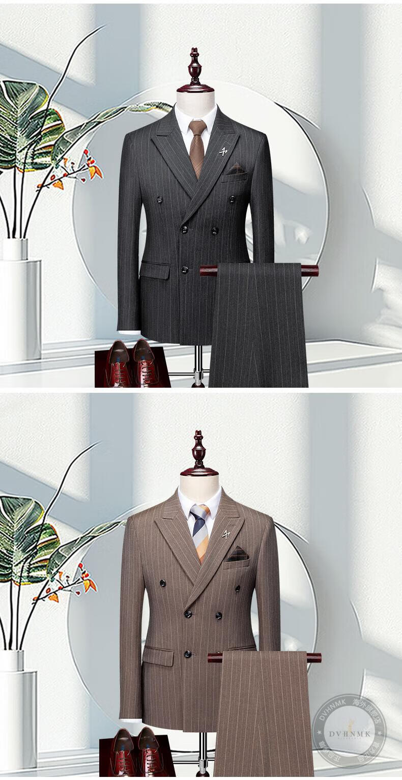 DVHNMK luxury brand men's suit suit men's formal business casual wedding dress double-breasted striped suit dark gray (suit + trousers) ready for delivery M (recommended 95-110 Jin Jin equals 0.5 kg) ready for delivery