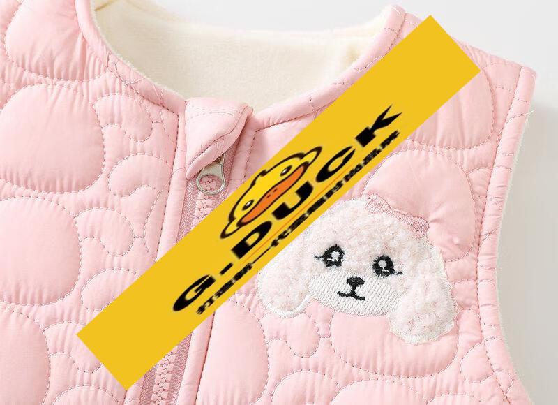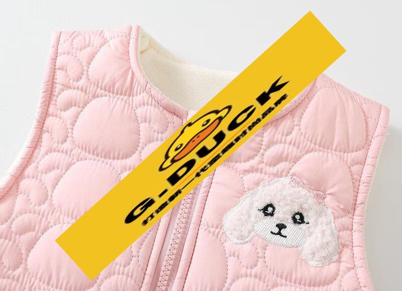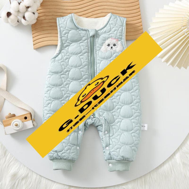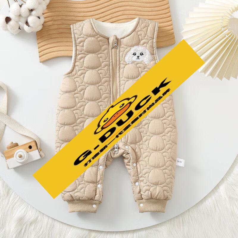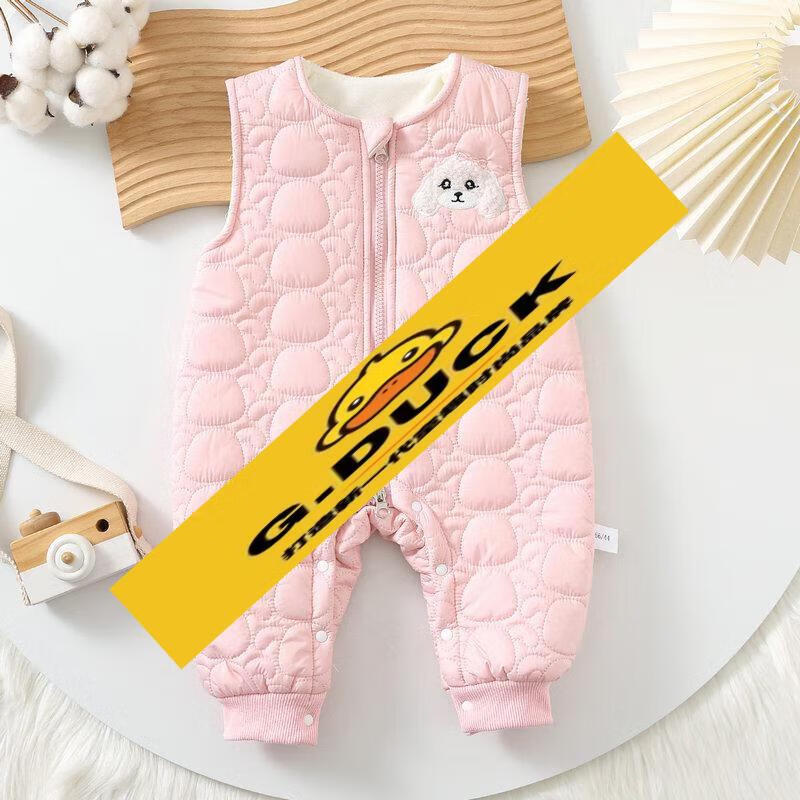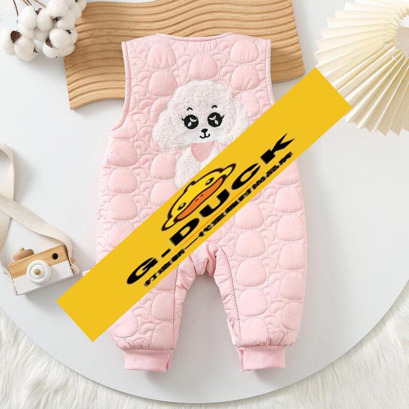G.DUCKKIDS Newborn Baby Autumn Vest Set 0-6 Months Male and Female Baby One-piece Clothes Cartoon Sleeveless Overalls Winter 7 Pink-Teddy Dog Quilted Wide Shoulder Padded Pants 80cm