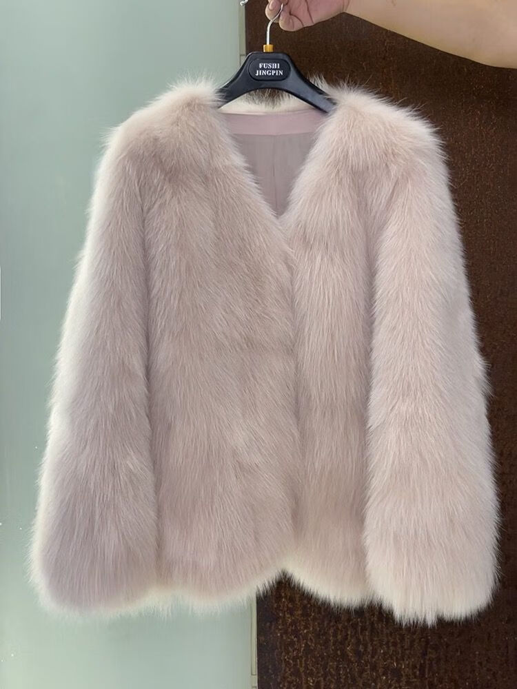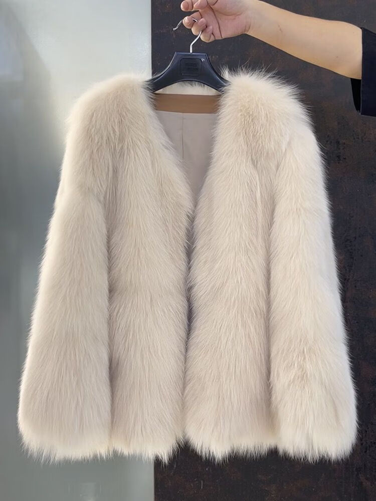 Tafu brand women's fur coat for women 2025 winter new style fox fur thickened young style small fragrance fur coat milk tea color S 85-110Jin Jin is equal to 0.5 kg