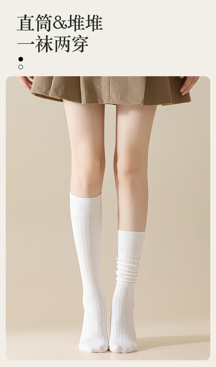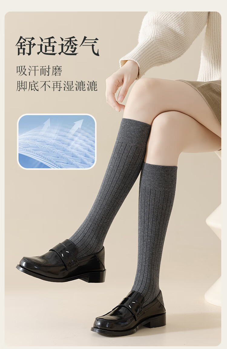 95% cotton vertical calf socks autumn and winter women's socks solid color boneless pile socks combed cotton Japanese JK stockings 1 dark gray + 1 black one size fits all (35-41)