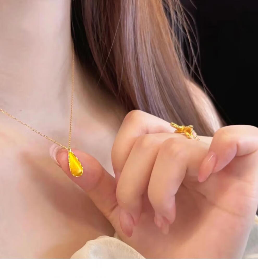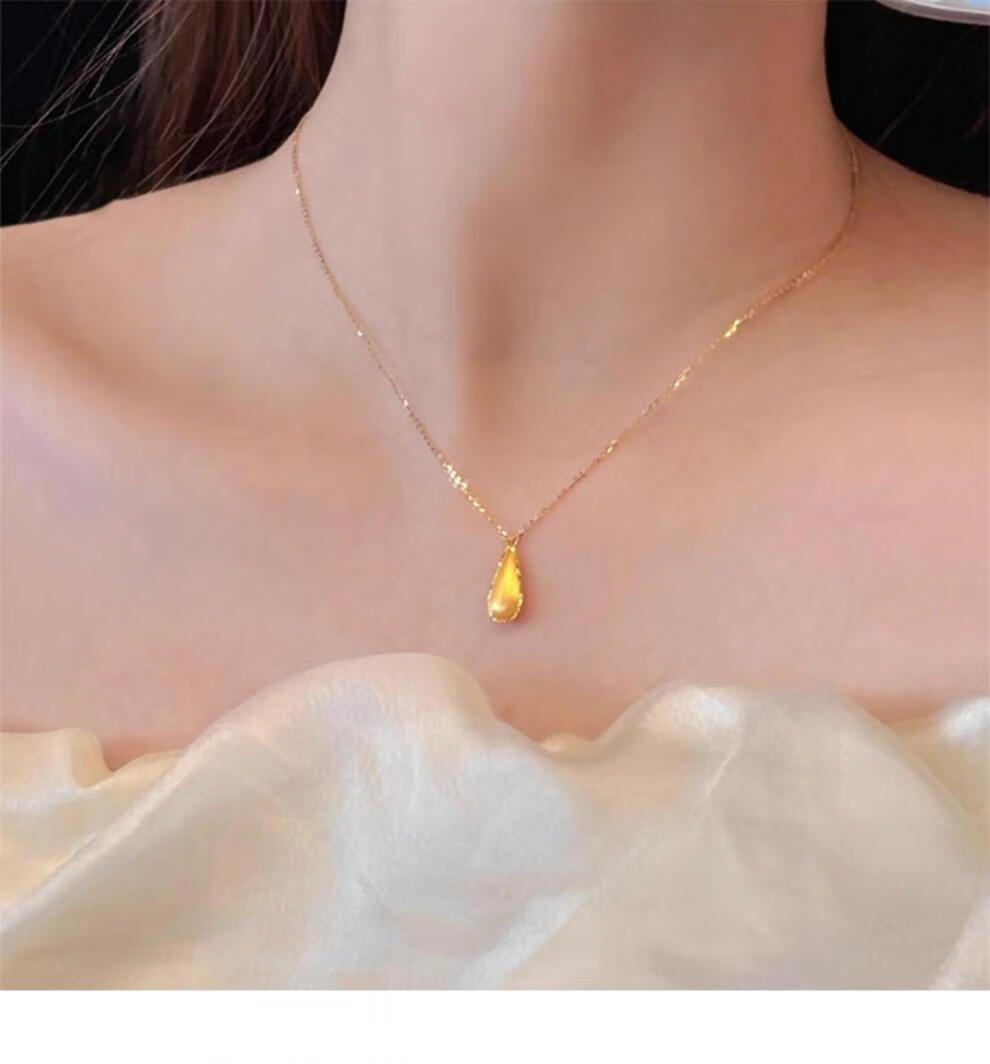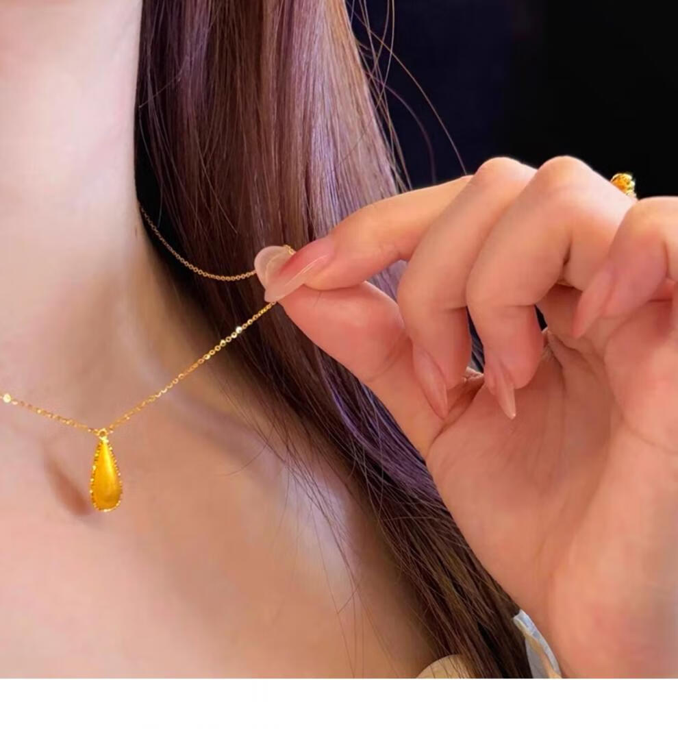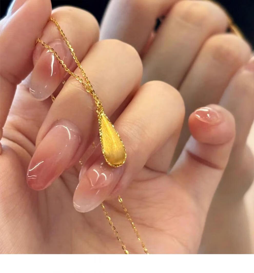 Tris sand gold brushed water drop necklace women's new Chinese style retro pendant clavicle chain trend flat replacement gold set chain brushed brushed water drop necklace