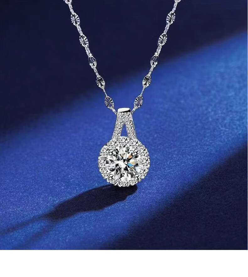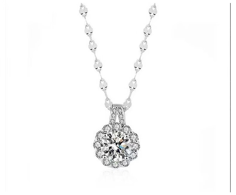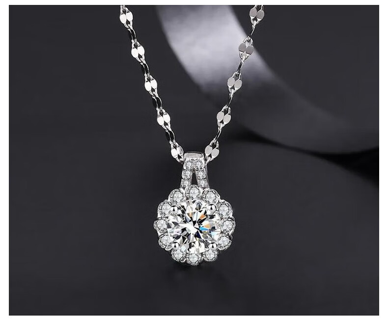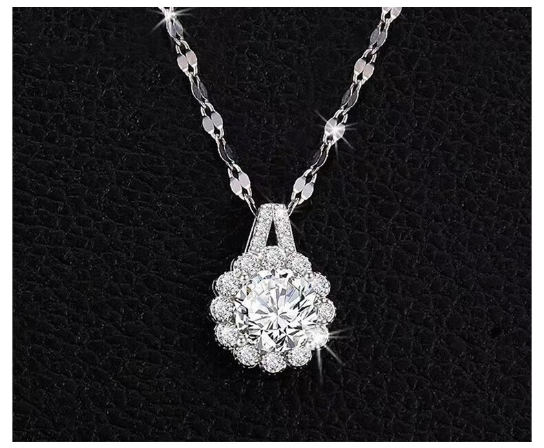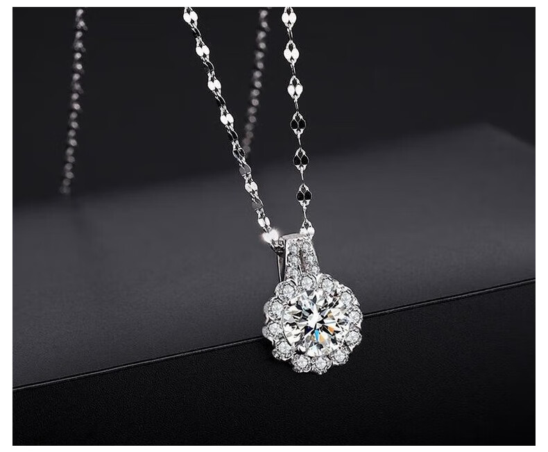 Shaofan pt950 platinum sunflower necklace for women sparkling moissanite necklace imitation platinum clavicle chain Valentine's Day gift sunflower necklace (platinum wrapped in sterling silver) 40+5CM